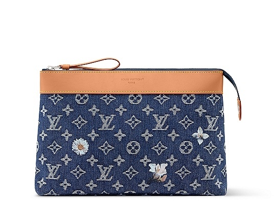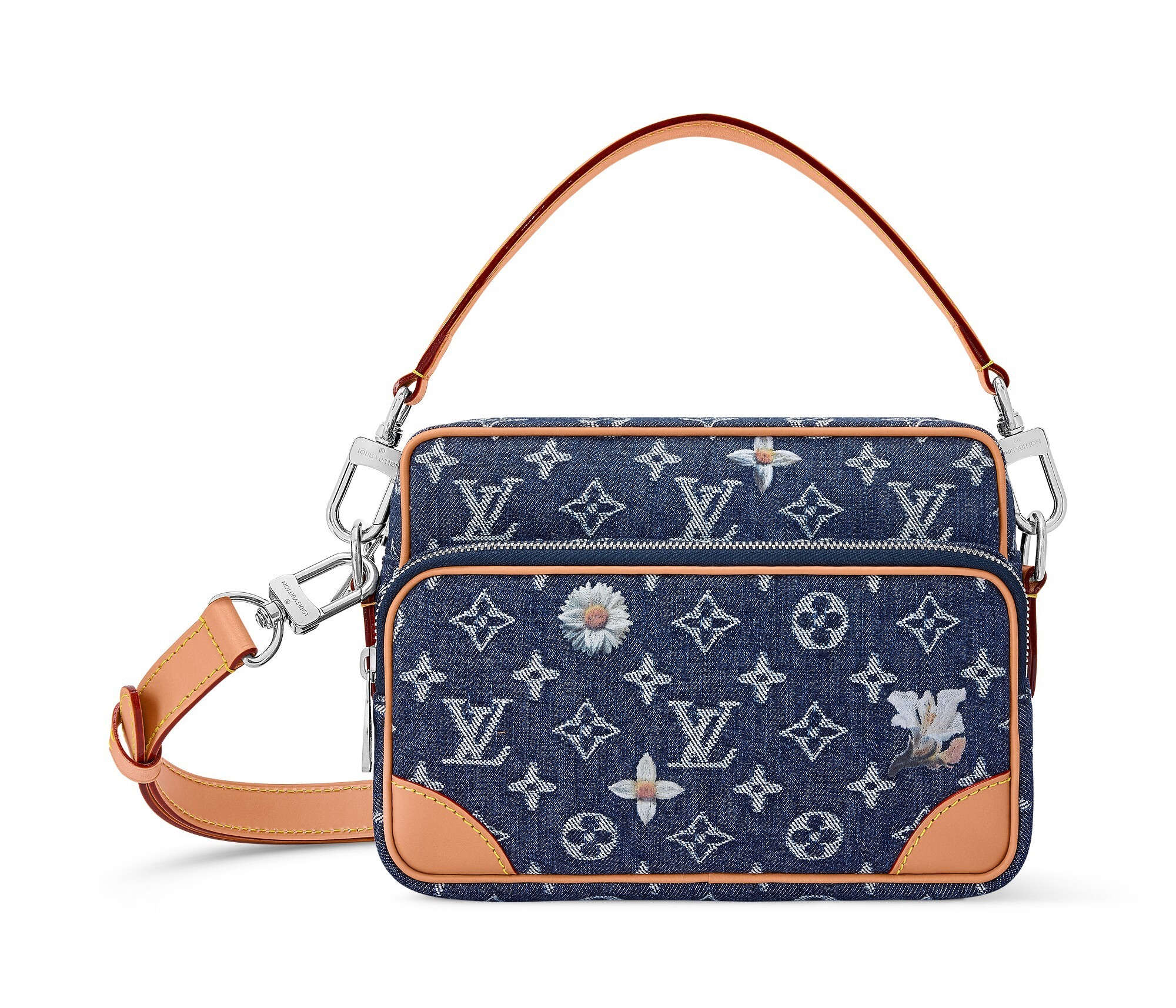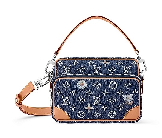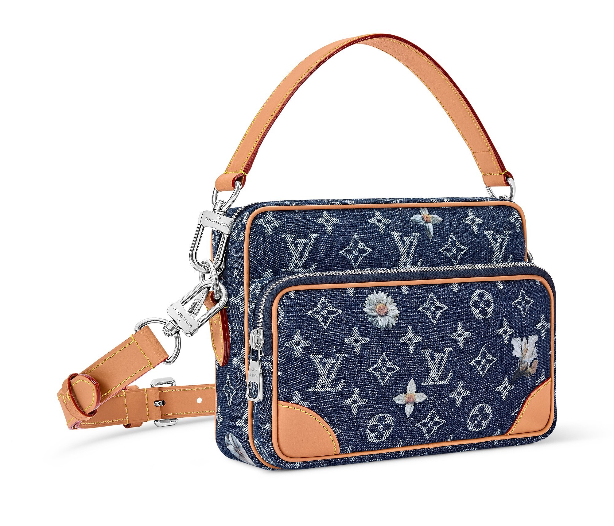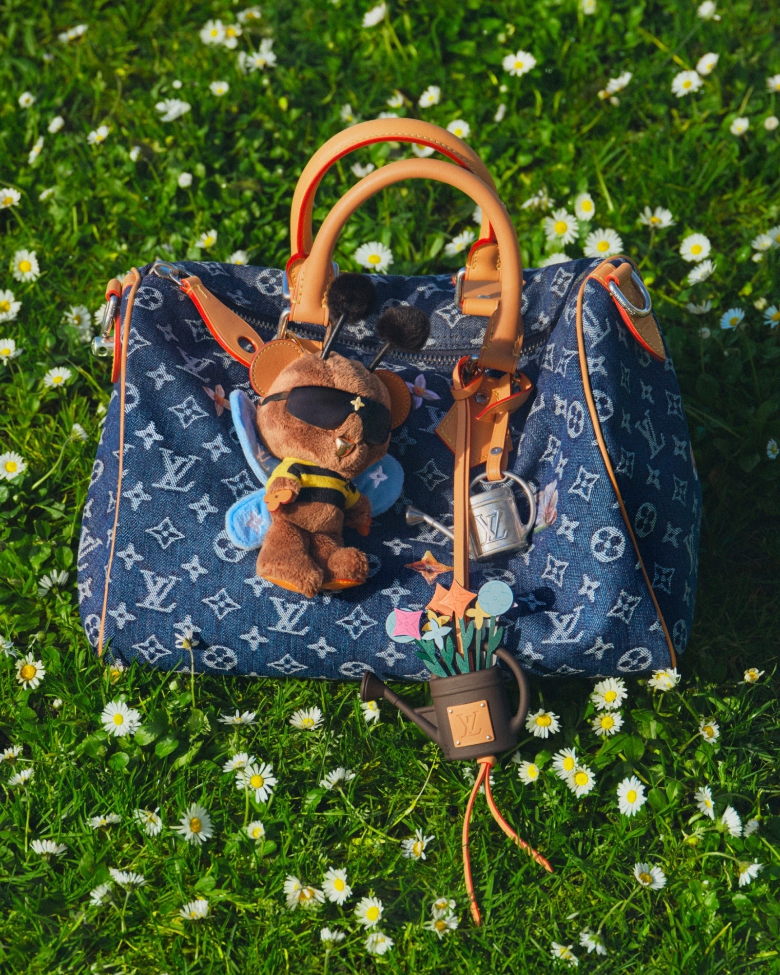 新季 Speedy 手袋推出30和18两种尺寸,采用深蓝色 Monogram 丹宁布为背景,通过刺绣工艺在 Monogram 图案中融入四照花、雏菊、龙胆等精致花卉刺绣,还有专属的浇水壶挂饰用来「浇灌」包包上的花花草草,诙谐设计展露闲逸情致。