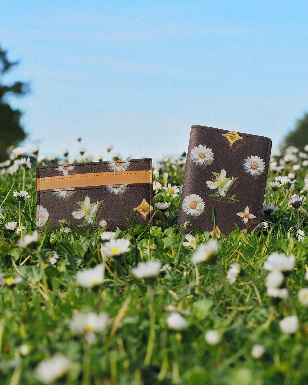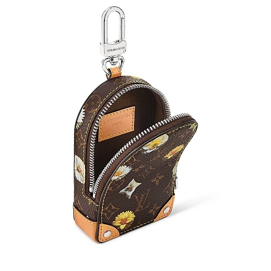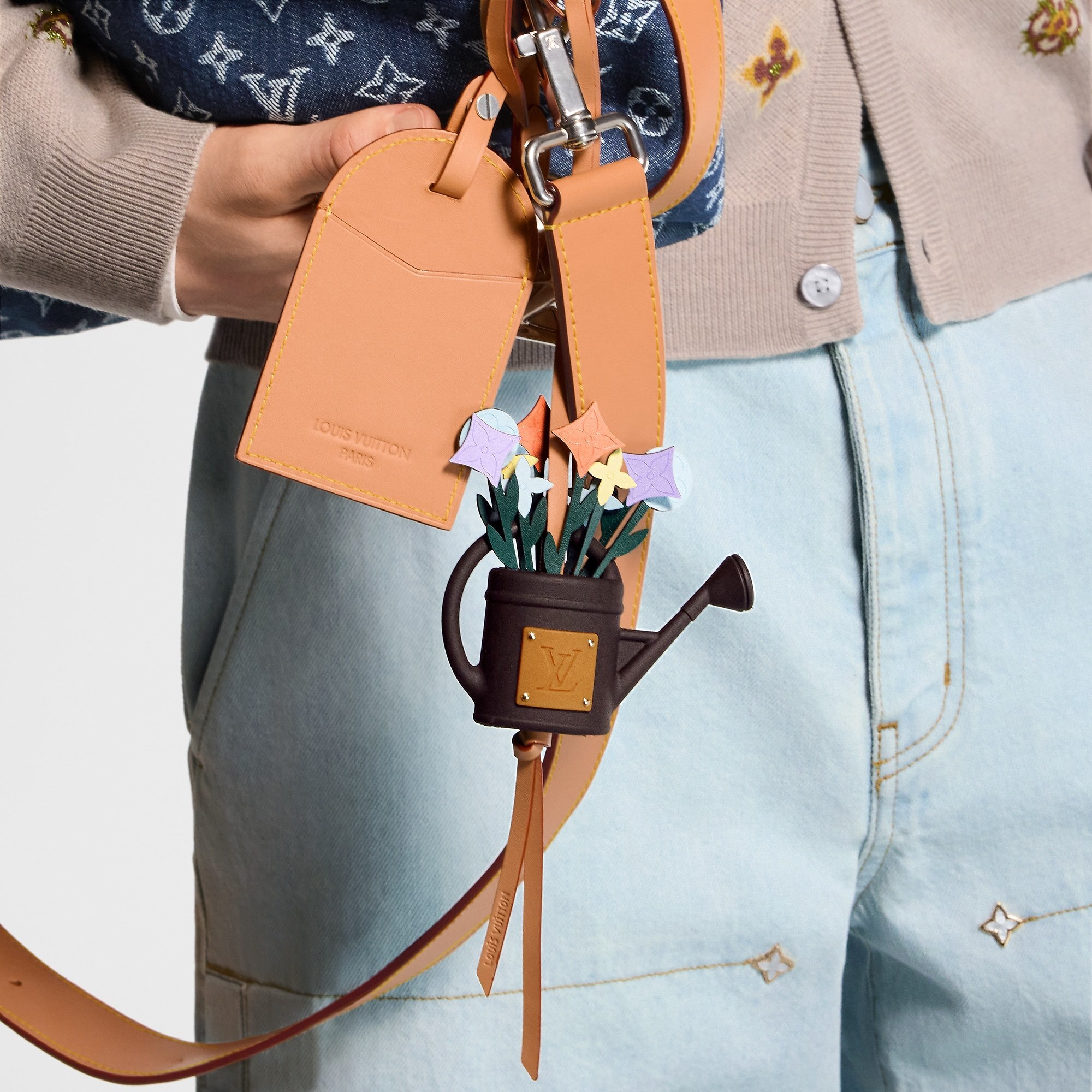 新款小皮具以 Monogram 涂层帆布为基底,通过丝印工艺在 Monogram 图案中融入绚烂繁。迷你吊饰包边角饰有金属铆钉,巧妙呼应品牌硬箱传统。护照套、钱夹和卡夹配有牛皮革内衬和浇水壶烫印图案,精致细节传递春日意趣。