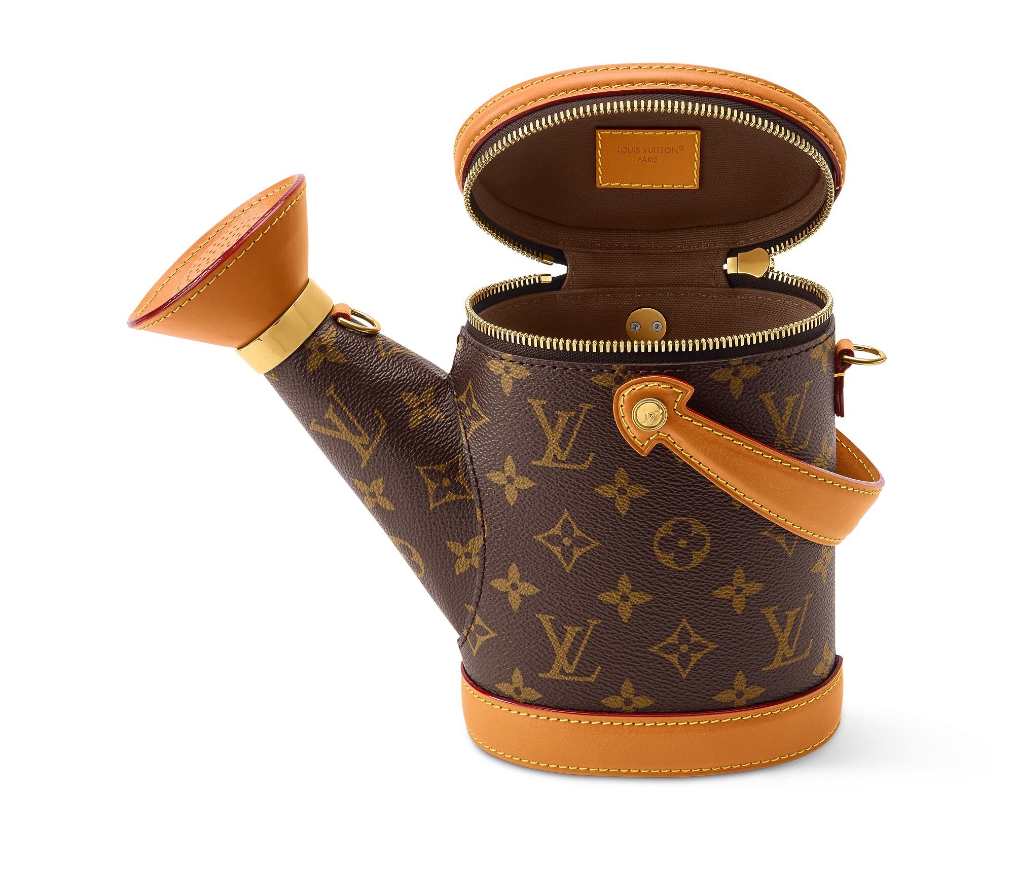 本系列还特别推出一只 Watering Can 浇水壶手袋,采用经典 Monogram 帆布和棕色皮革构筑别致轮廓,顶部拉链开合,内部可收纳钱包、手机、钥匙等日常必需品,顶部手柄和可拆卸肩带实现多种背携方式,巧妙融合功能考量和玩趣格调,显得童趣十足。