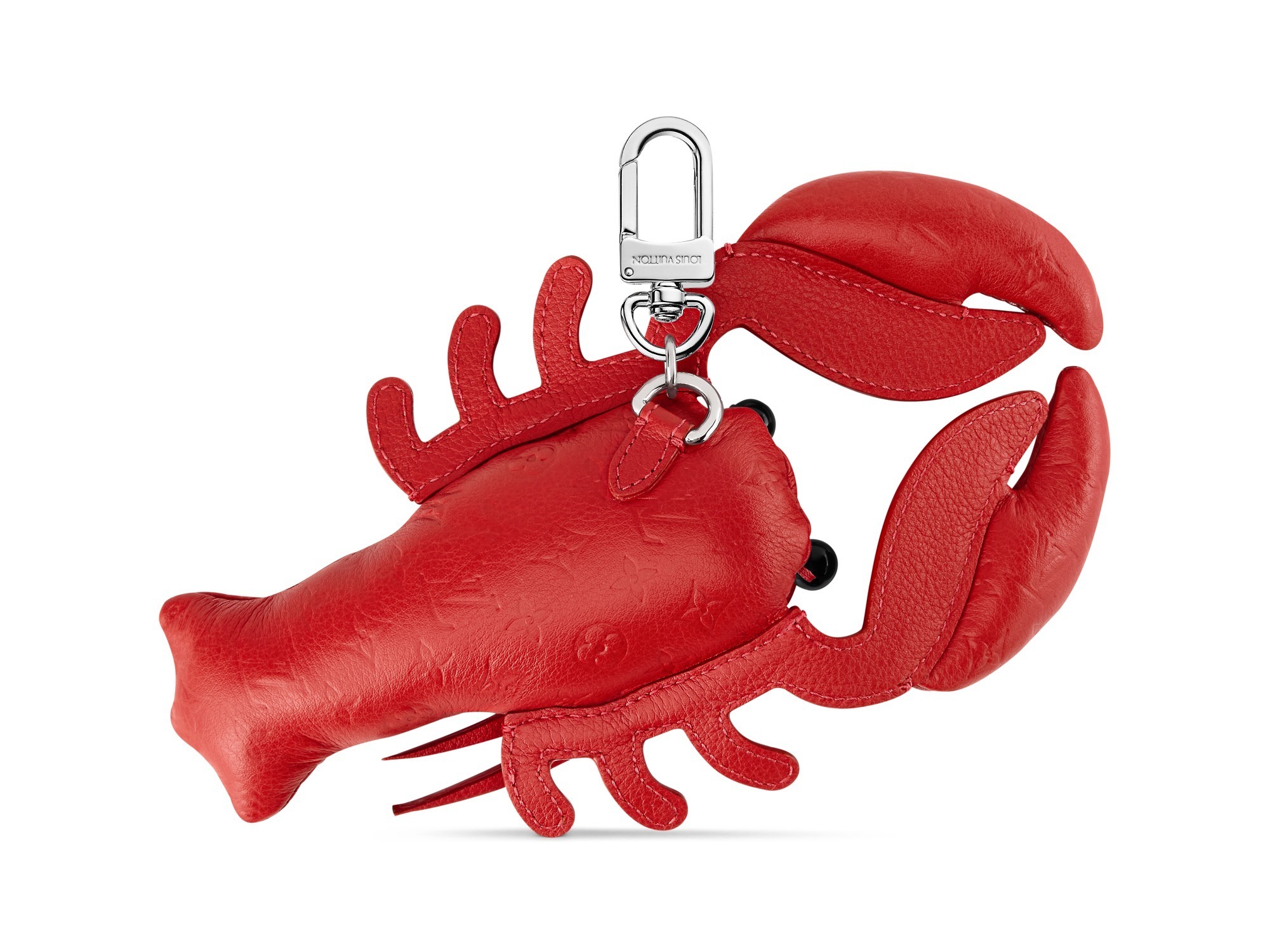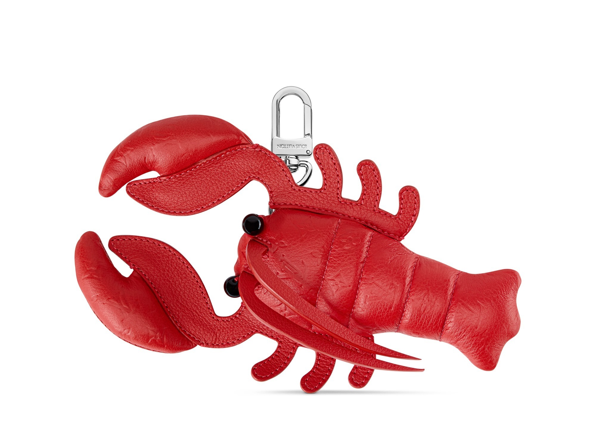 LV Lobster 包饰采用红色 Monogram 压纹皮革塑造出可爱又霸气的龙虾造型,灵感来自 Pharrell Williams 和 Nigo 的日本捕虾之旅,展现两位设计师之间的真挚友谊,挂在包包上别致又吸睛。
