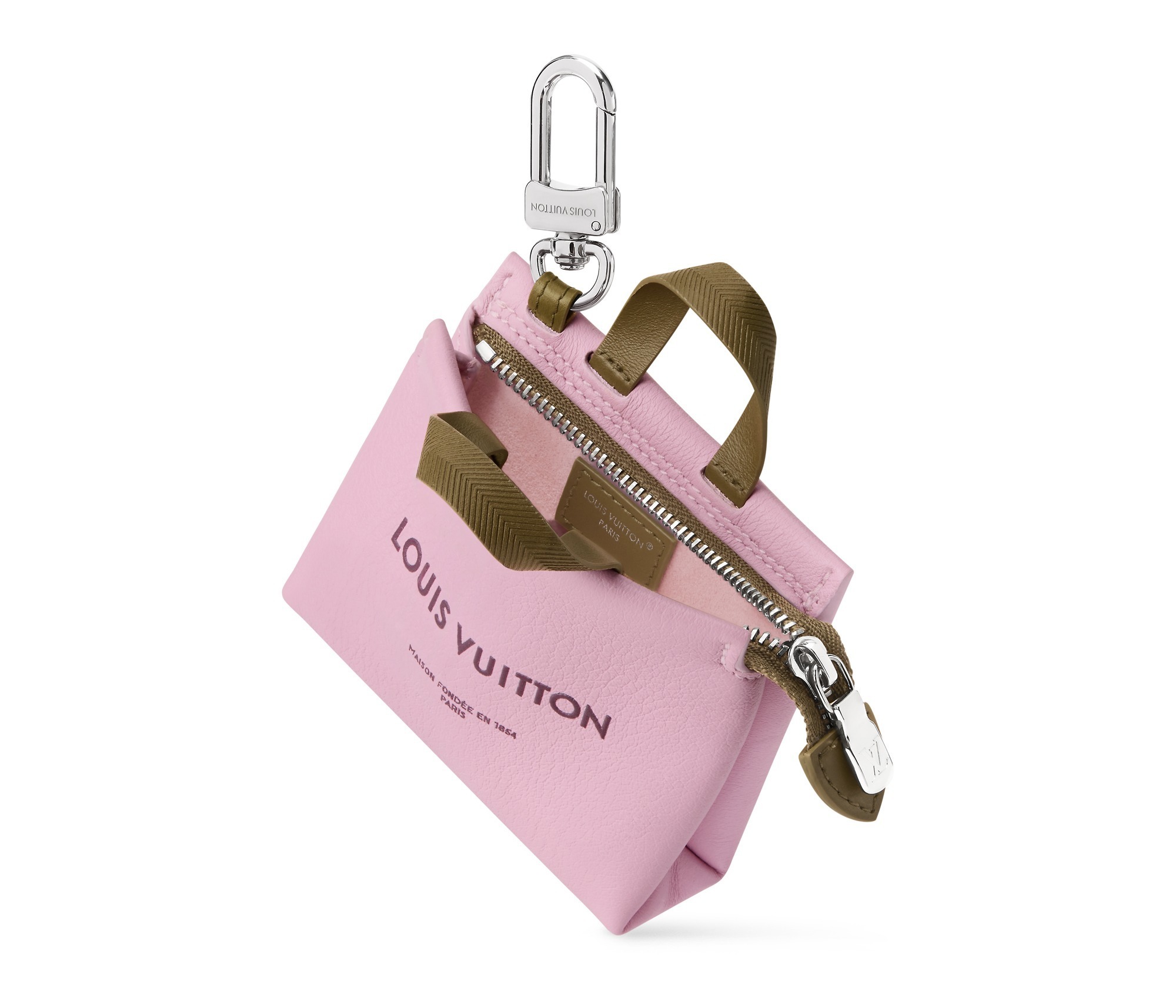 新款 LV Mini Shopper 包饰以2025秋冬男装系列的樱花粉色为基调,采用小牛皮制作成微缩版购物袋造型,内部可收纳卡片或者无线耳机,顶部拉链增加安全系数。小巧玲珑的尺寸可通过金属钩扣挂在腰带或者包包上作为点睛。