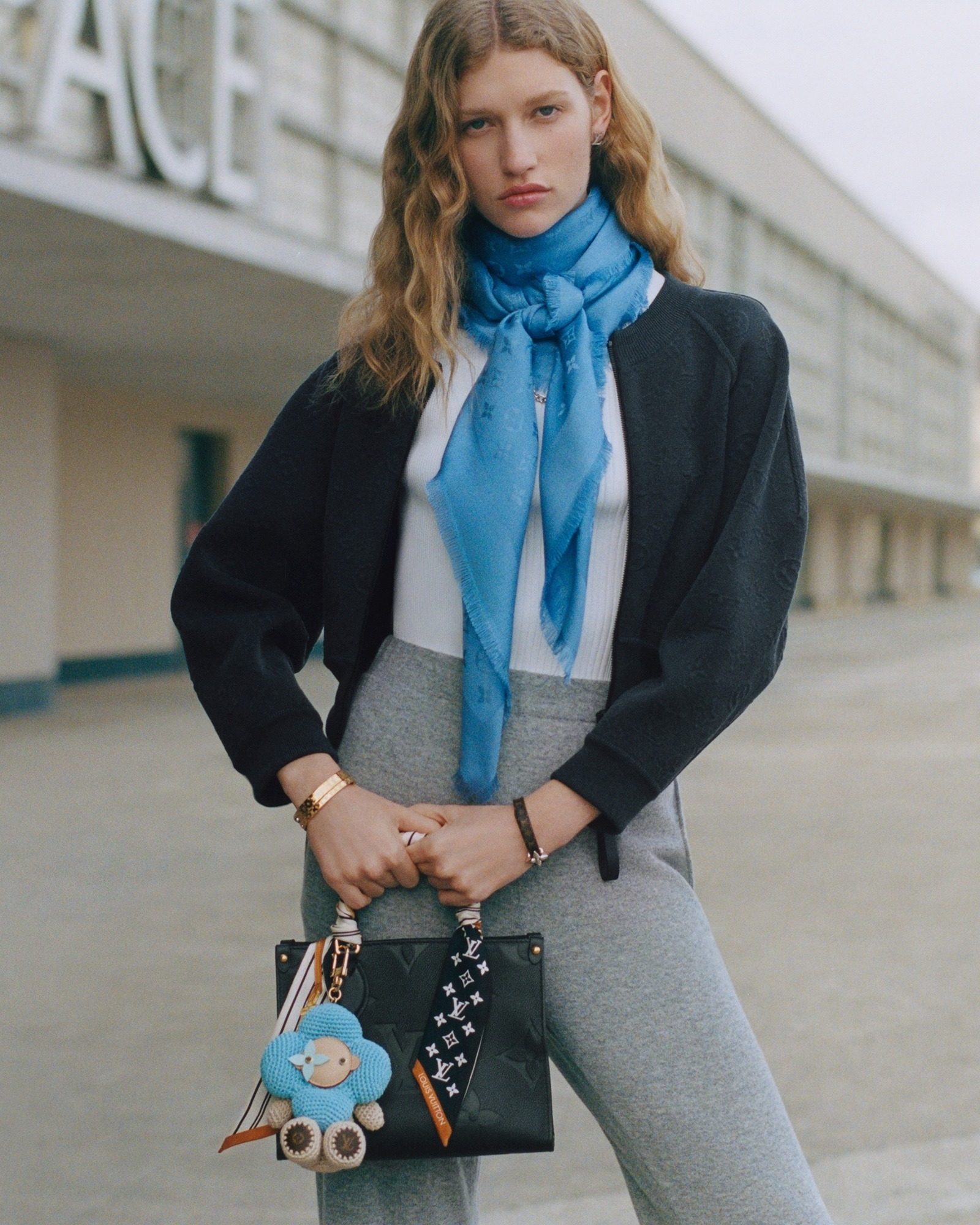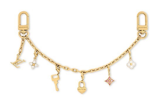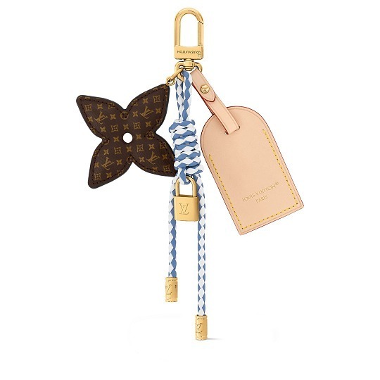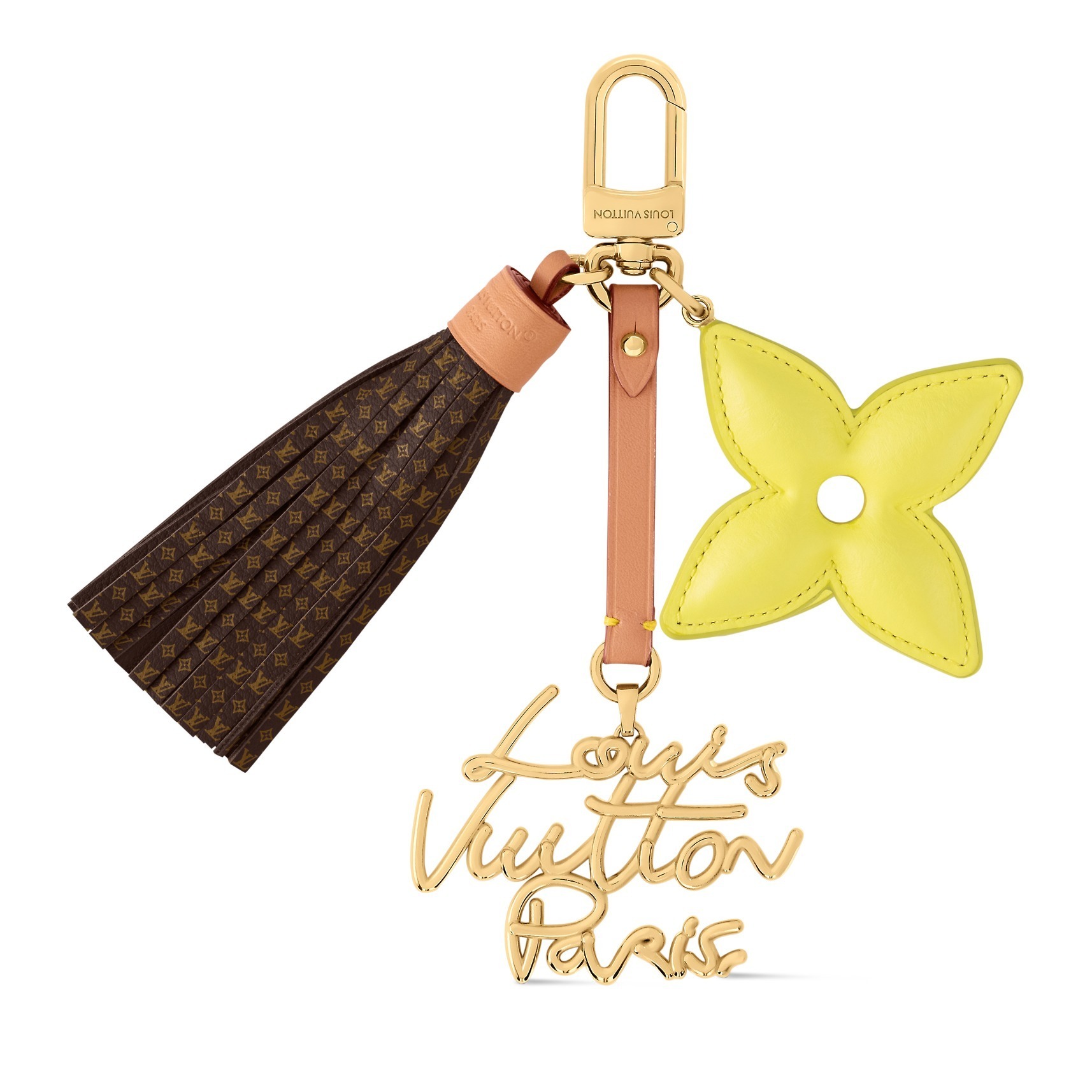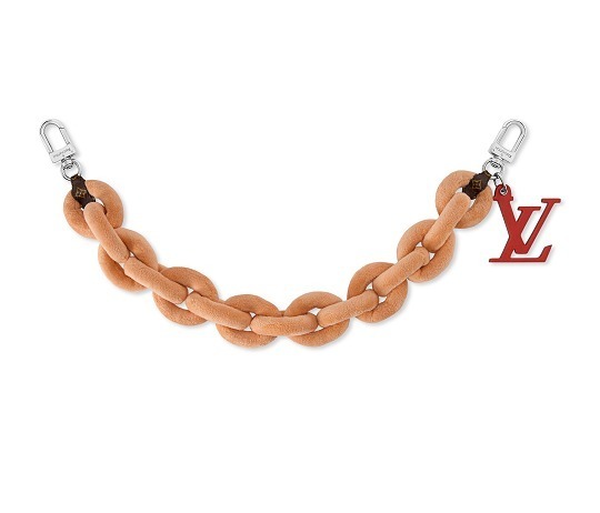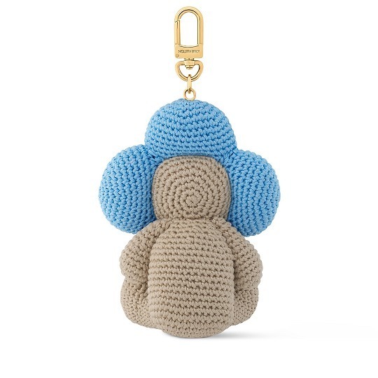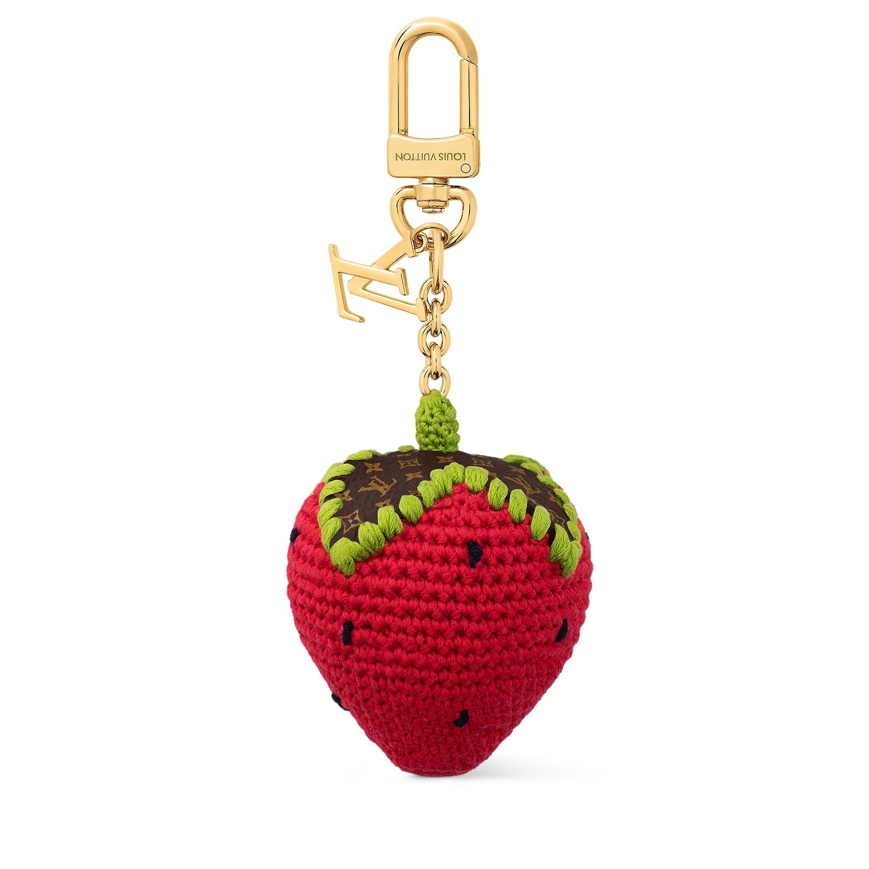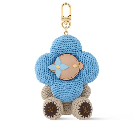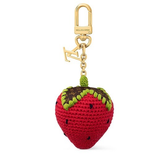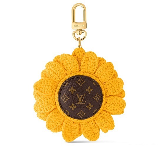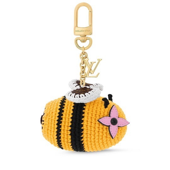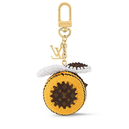 女士系列包挂以 Crochet 钩针编织为主要材质,通过精巧钩编工艺打造出吉祥物 Vivienne 公仔、蜜蜂、向日葵和草莓造型,点缀 LV 徽标吊坠和 Monogram 帆布细节,充满手工感的棉线编织特别有怀旧氛围。