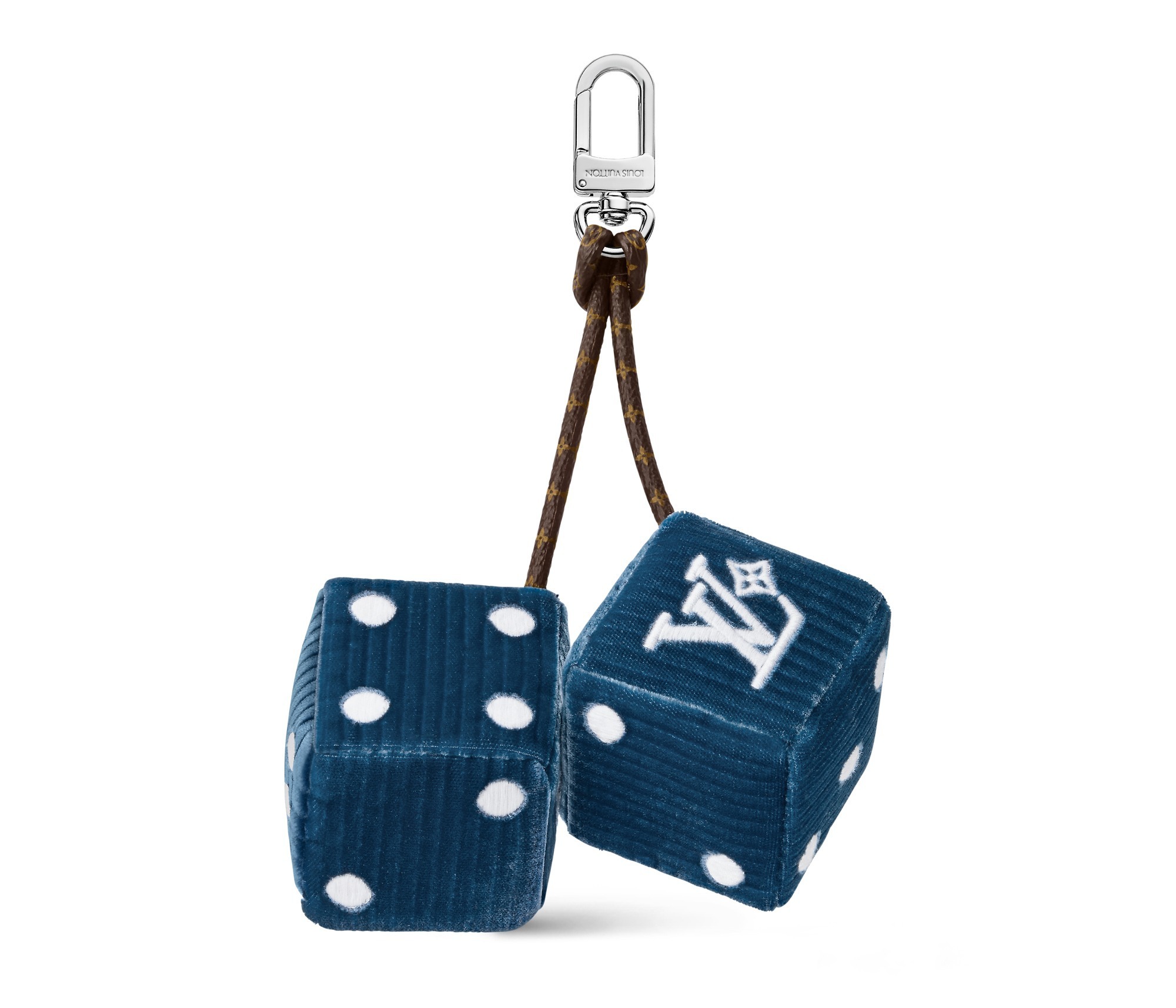 LV Lucky 幸运符系列带来骰子、爱心、四叶草、挂锁和链条造型的包挂,采用柔软的丝绒材质制作而成,点缀 LV 标识和硬箱刺绣等品牌标志性图案,毛绒绒的触感和亮丽色彩为包包增添温暖气息,尤其适合秋冬季节。