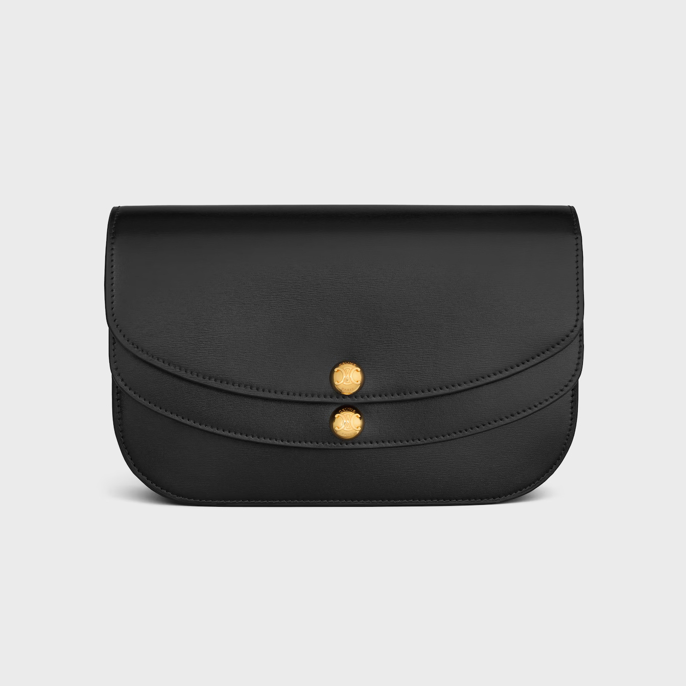 Duo Wallet 小巧圆润,最大亮点是层次分明的双层翻盖设计,分别对应主隔层和前侧内袋,打造出双层收纳空间。包包开合采用简洁的按扣设计,金色黄铜制作成立体半球形外观,表面蚀刻标志性「Triomphe」凯旋图案,如浮雕般立体精致。