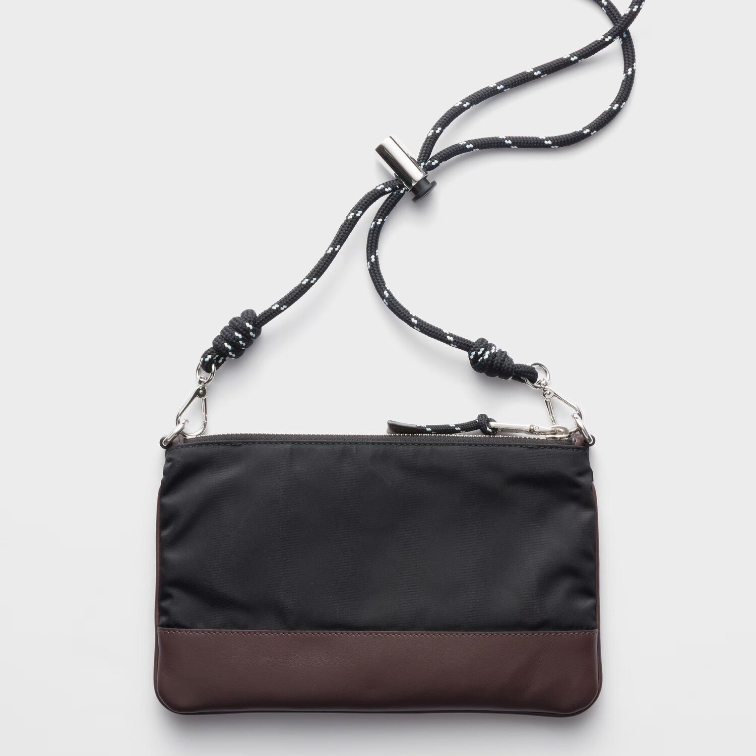 男士假日系列以「尼龙绑带」为主要设计元素,包身均采用再生尼龙制作,具有轻盈、防水、耐用且环保的优势。亮点是设计师在包身正面交叉装饰尼龙绳绑带,让人联想到鞋带,颇具登山运动风格。