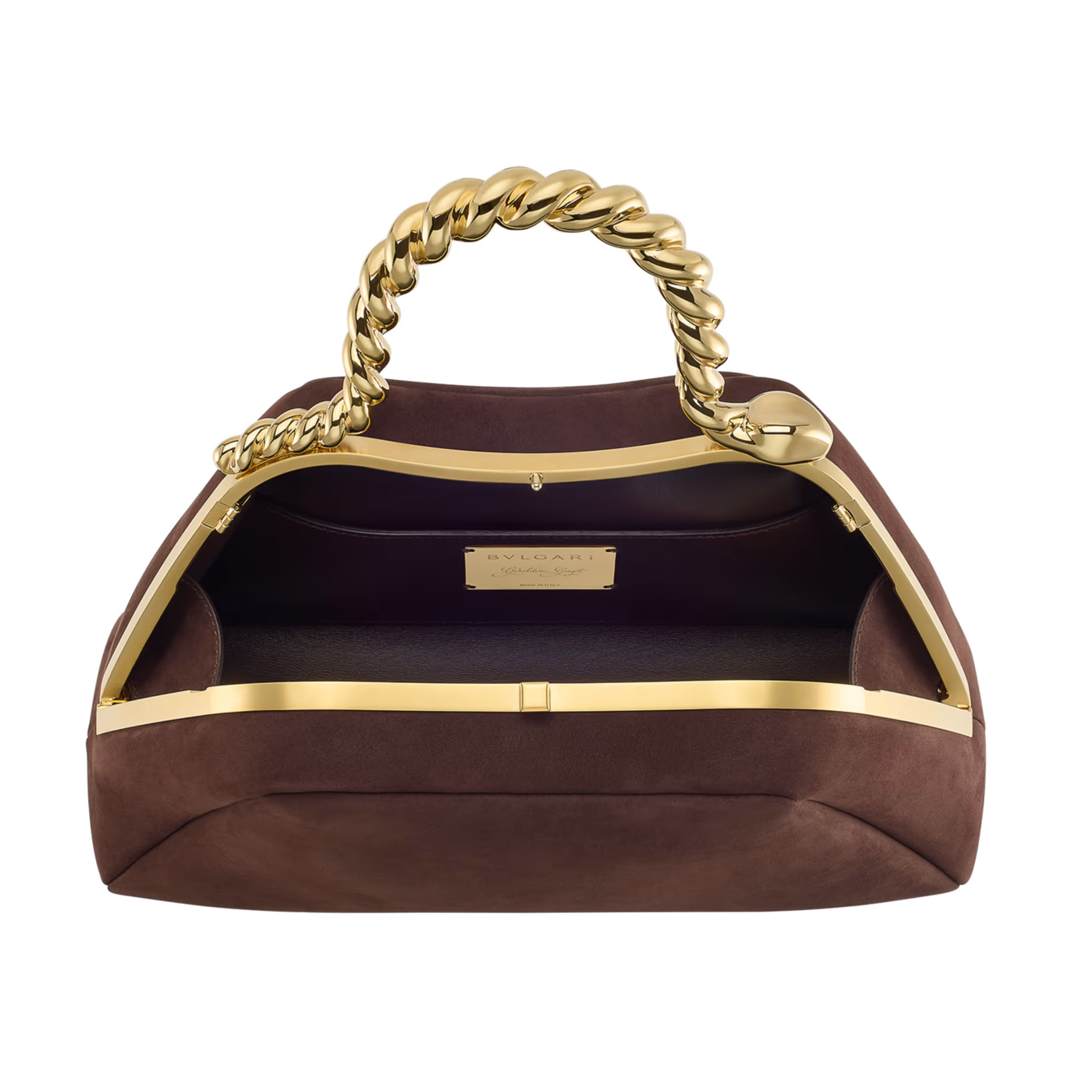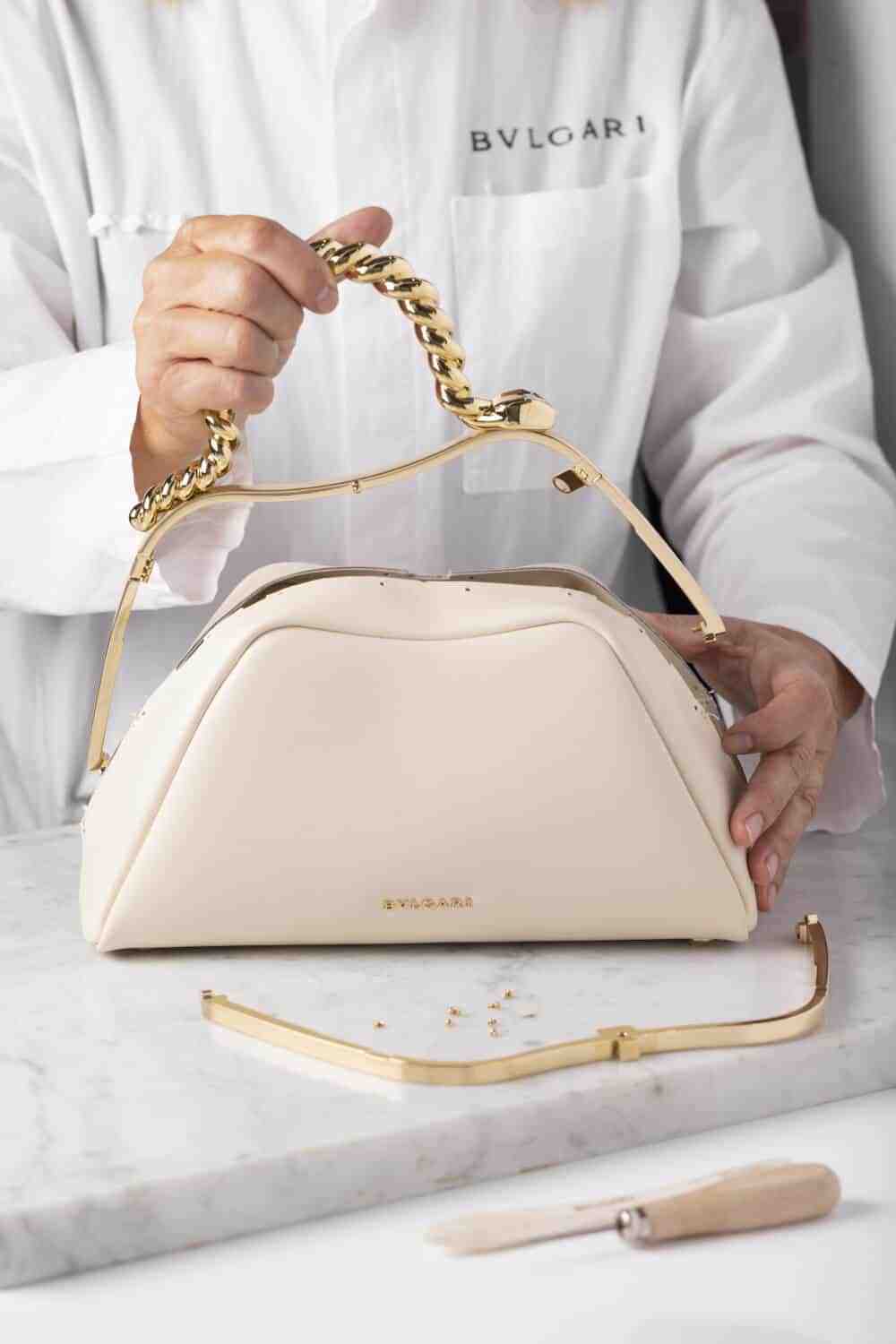 BVLGARI 本周上市2025年秋冬限定系列 Serpentine 手袋,由品牌创意总监 Mary Katrantzou 和法国时尚设计师 Geraldine Guyot 联合设计。手袋最大亮点是提手设计,金色黄铜经过扭索工艺幻化为灵蛇的蜿蜒身姿,如雕塑般精致又具魅惑力。(左右滑动浏览更多图片)