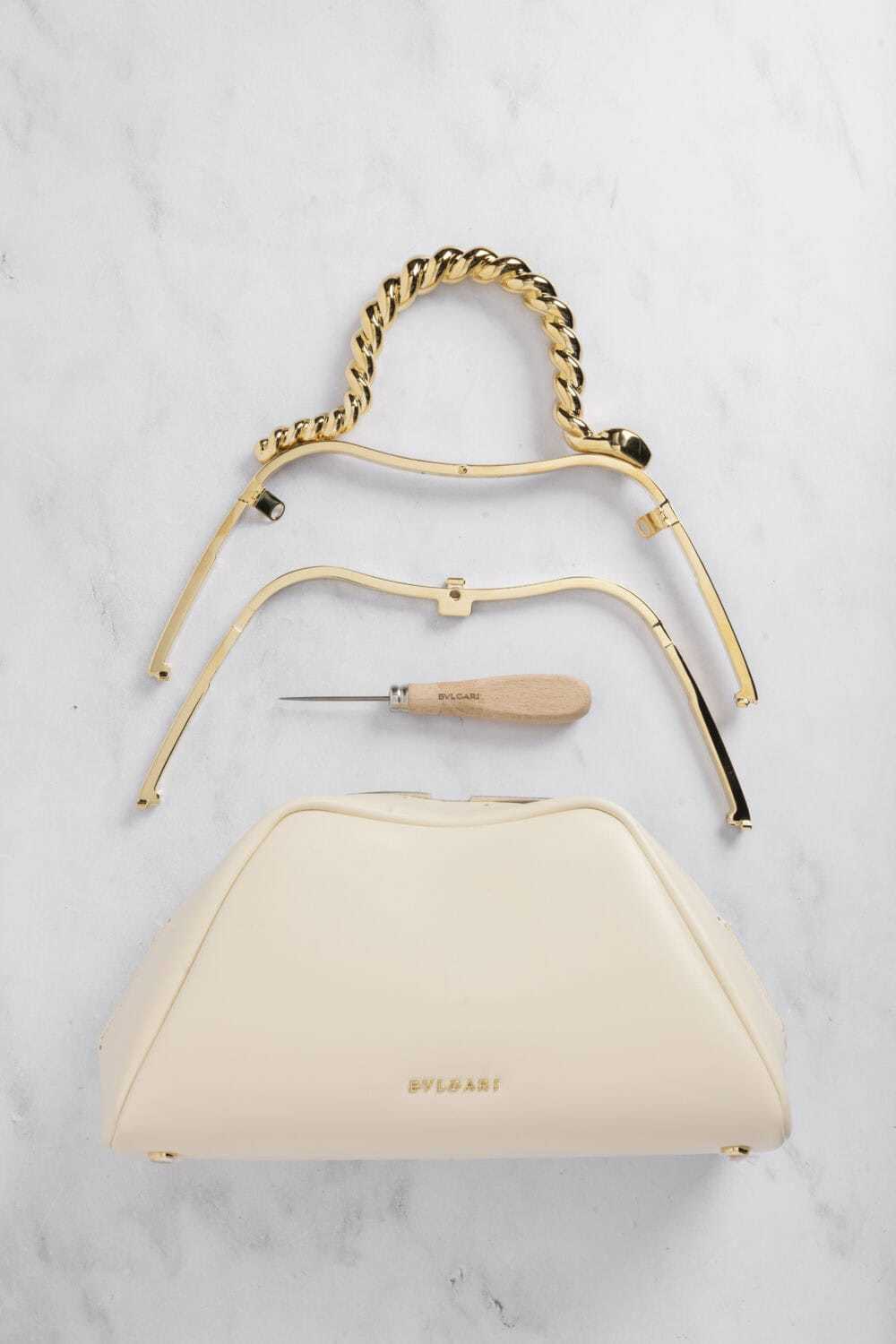 常规尺寸采用「27x14x10cm」的规格,灵蛇扭索手柄依然是包包最醒目的装饰元素,无论是手提还是手挽,好似一条灵蛇手链盘绕于腕间。推出象牙蛋白石色小牛皮 & 栗色蛋白石色磨绒皮2种款式,搭配柔嫩的小羊皮衬里。