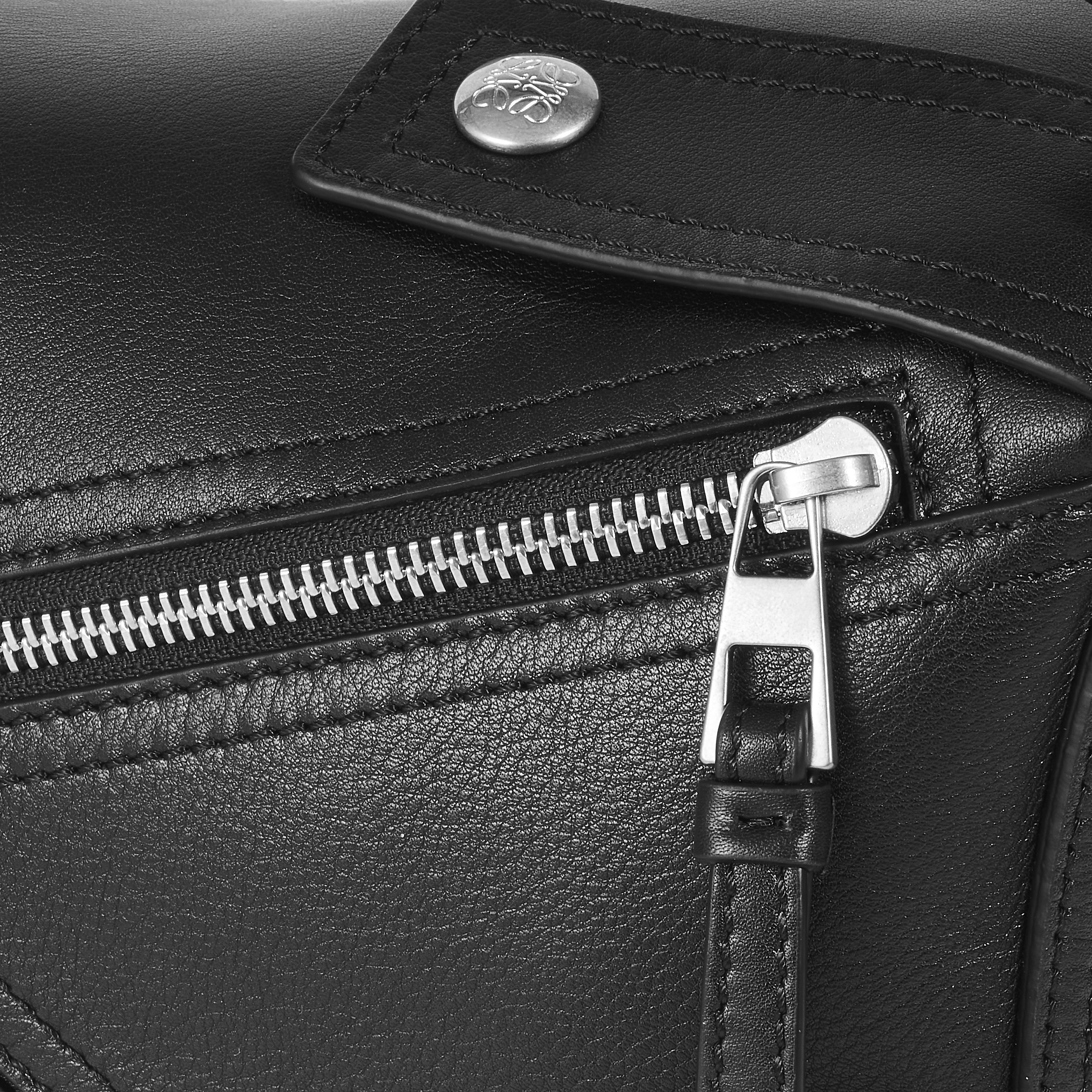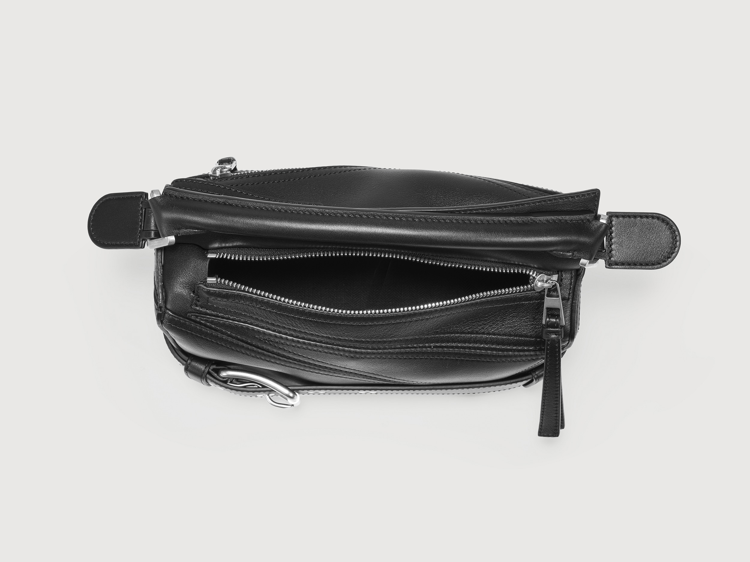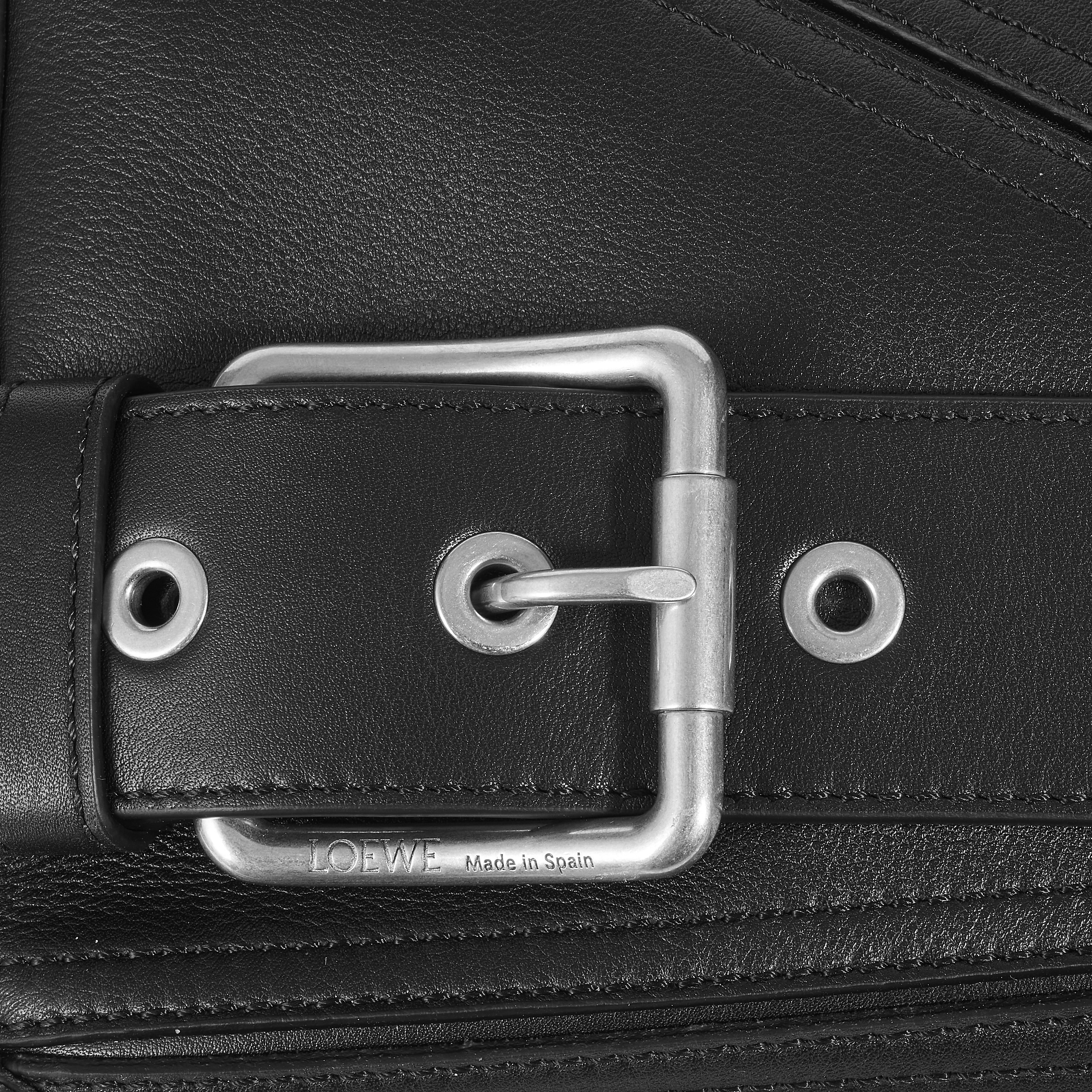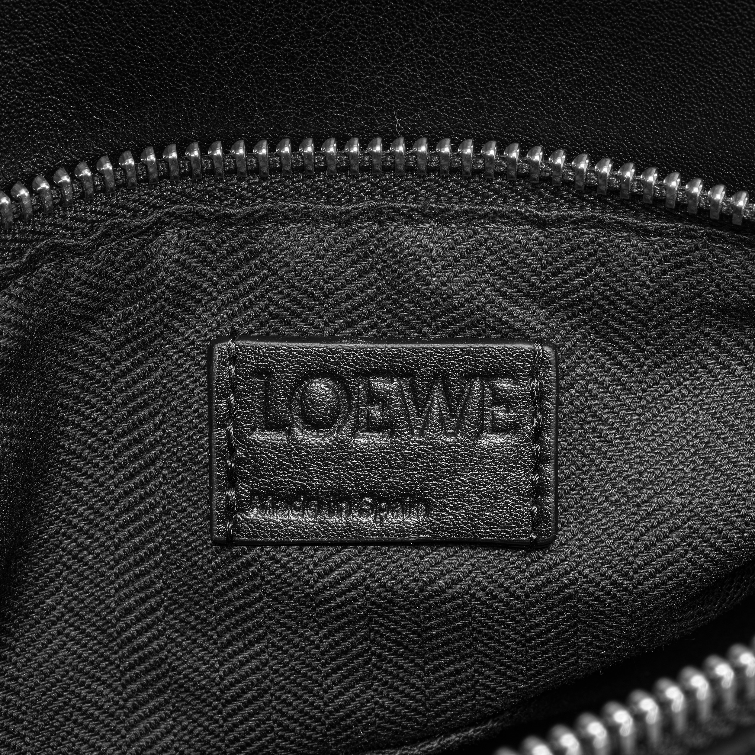 小号 Puzzle 手袋依然拥有可以媲美水桶包的强大收纳属性,包包里衬为黑色人字纹棉质帆布,背侧设有 LOEWE Made in Spain 压纹皮标。