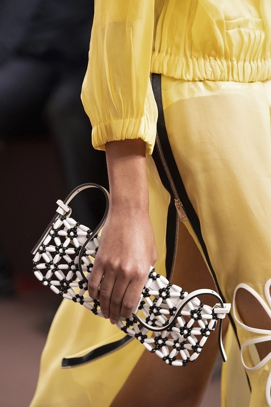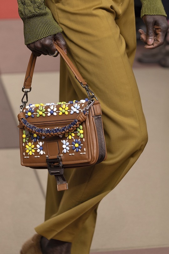 精致亮片刺绣在包包上描摹出浪漫的印象派花卉图腾,或以滚边工艺呈现镂空的雏菊形态,或以诙谐的「炸纹花朵」(fried flowers)立体造型登场,步履流转之间,将慵懒情致化作流动的风景。