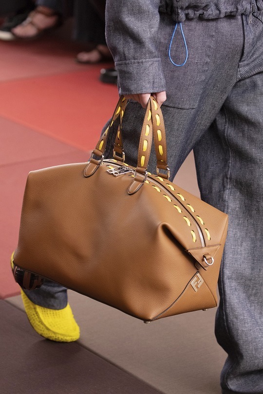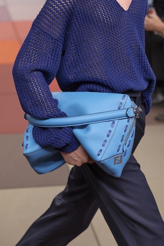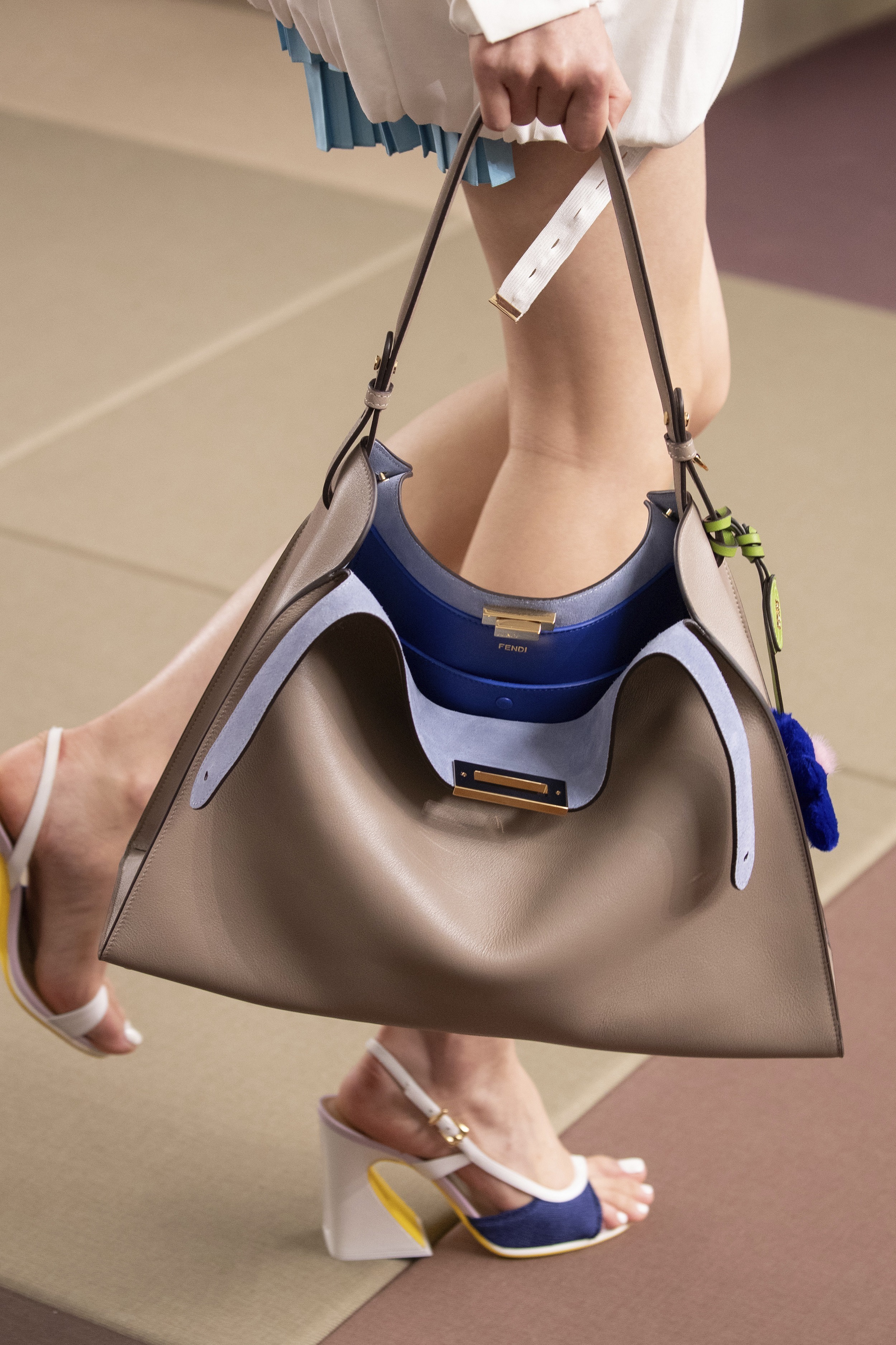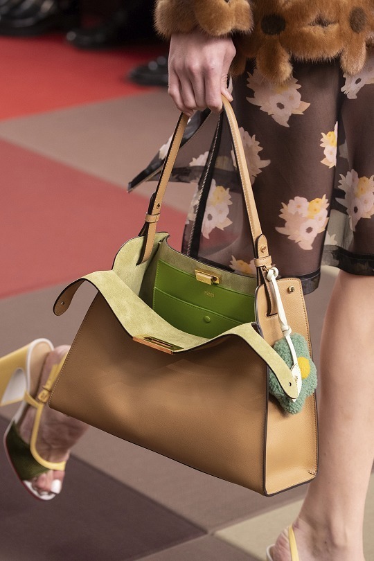 FENDI Way 手袋沿用 Peekaboo 系列标志性的梯形结构,简化金属框架和拱形手柄结构,柔软廓形呈现更加松弛的面貌,选用亮色麂皮和小牛皮材质制作而成,搭配极简镀金五金件。