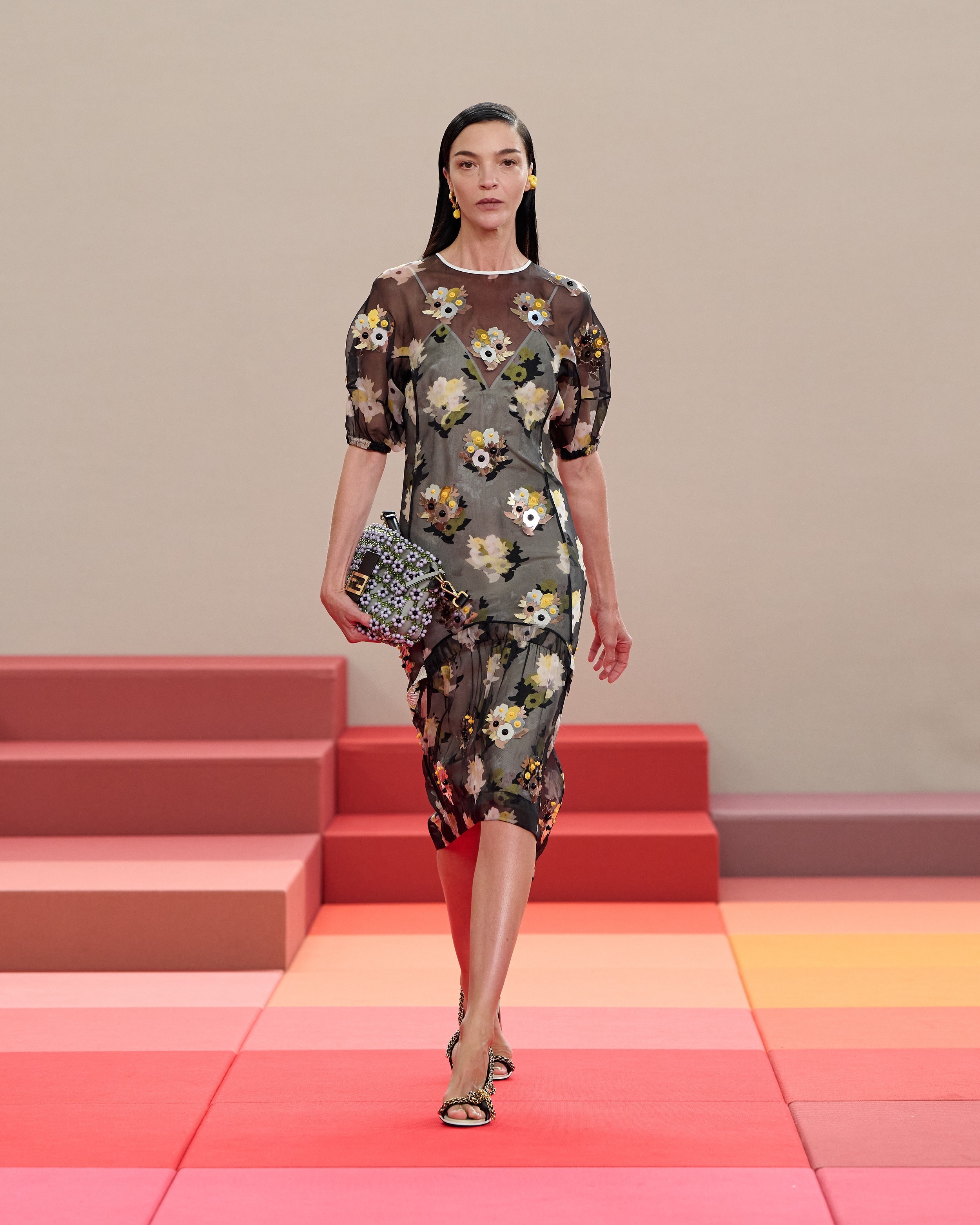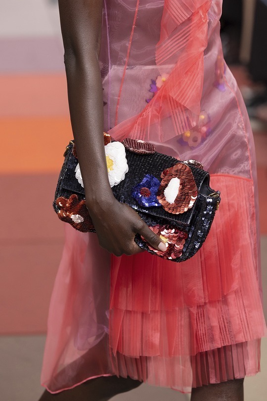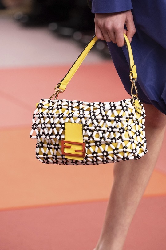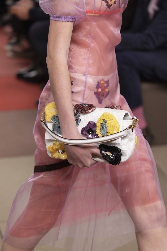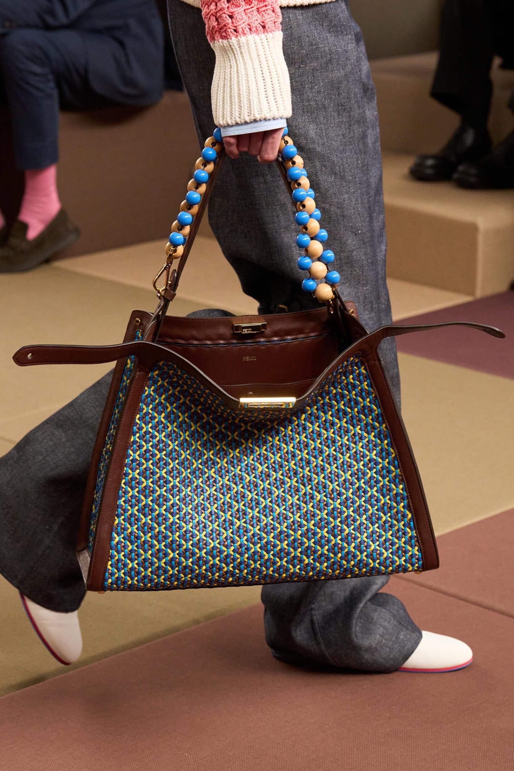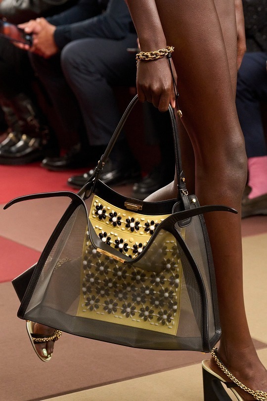 新季手袋作品通过纹理、结构和3D装饰升华设计,Peekaboo 和 Baguette 手袋采用串珠工艺构筑出镂空花卉网罩或立体装饰图腾,搭配皮革饰边和内袋细节,缤纷色彩营造出轻快活泼的度假气息。