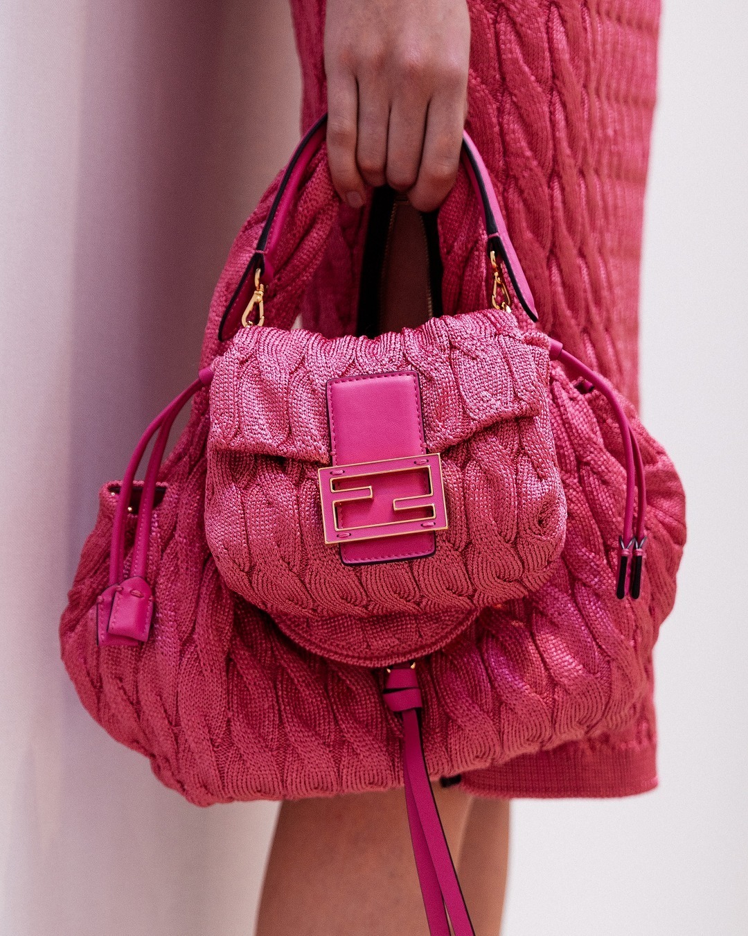 新款 Mamma Baguette 手袋和 Spy Bag 采用丝质罗纹针织材质制作而成,柔软又富有光泽感的面料为包包注入雅致格调。