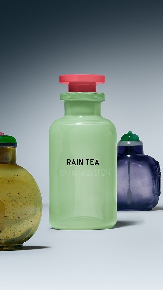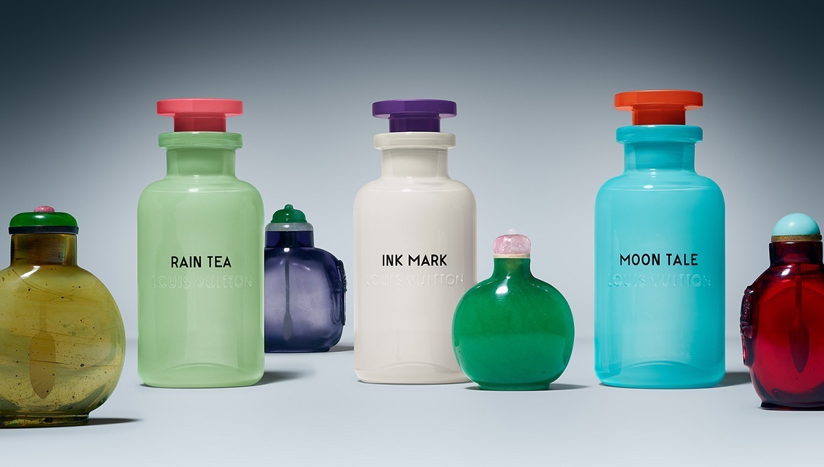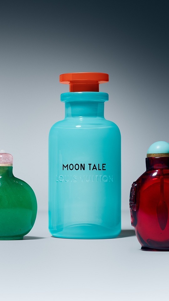 系列香水瓶以 Marc Newson 设计的经典路易威登香水瓶为基础,并向中国传统鼻烟壶致意。从流光溢彩的北京琉璃工艺采撷灵感,香水瓶身绽现乳光,3种生动色调与鲜艳漆面瓶盖相互映衬,呼应昔日点缀皇室鼻烟壶的半宝石,双色瓶装设计营造出充满张力的灵动美感,衬托对应香氛的独特韵调。