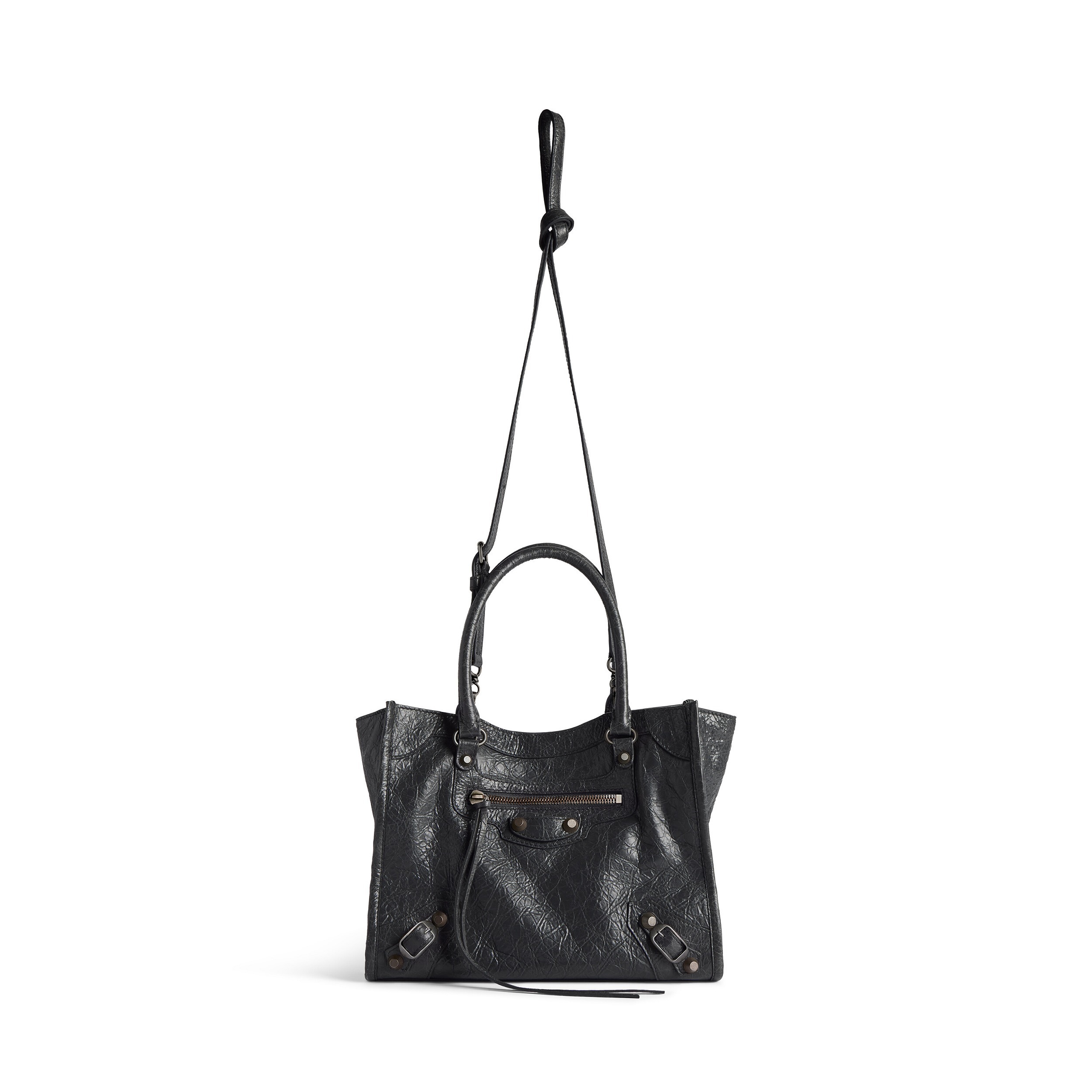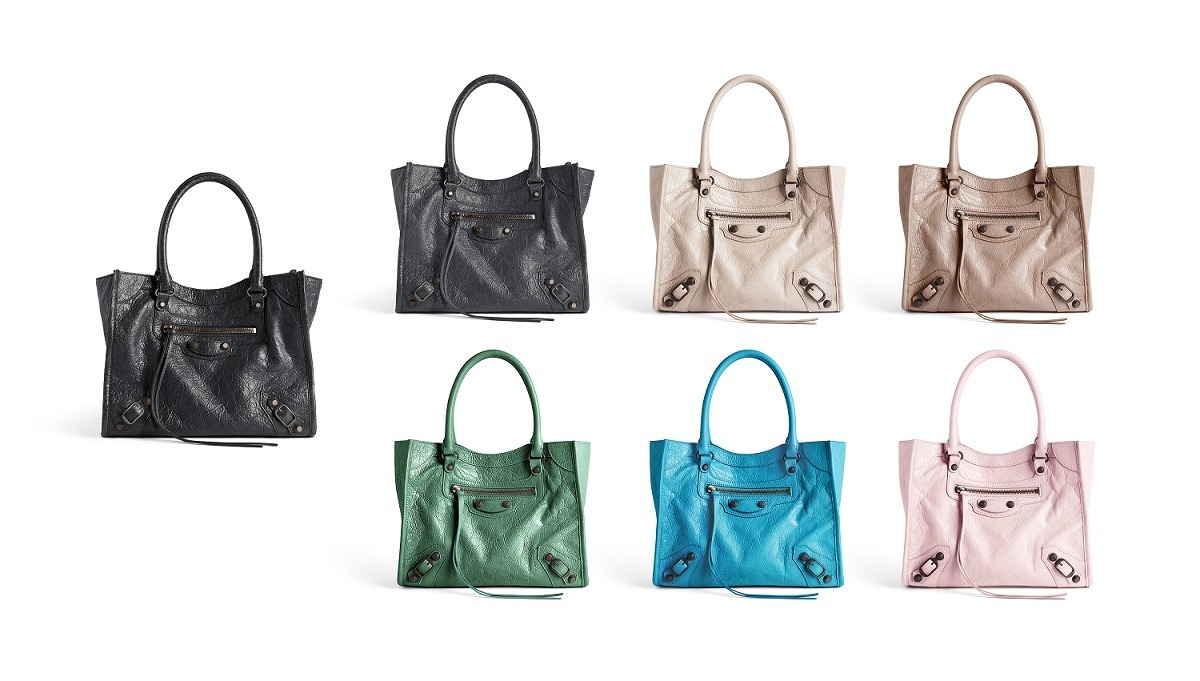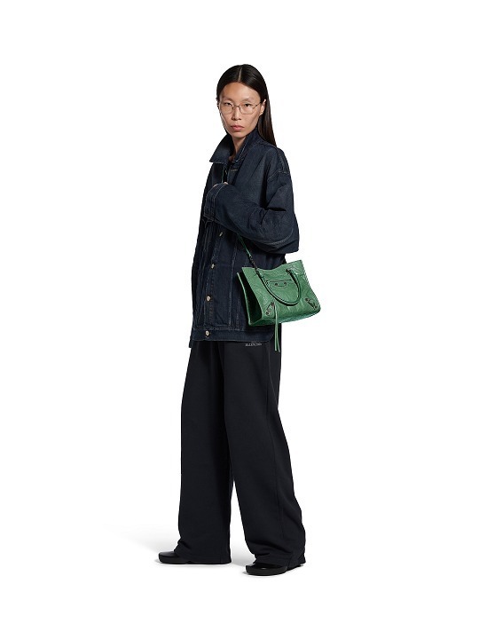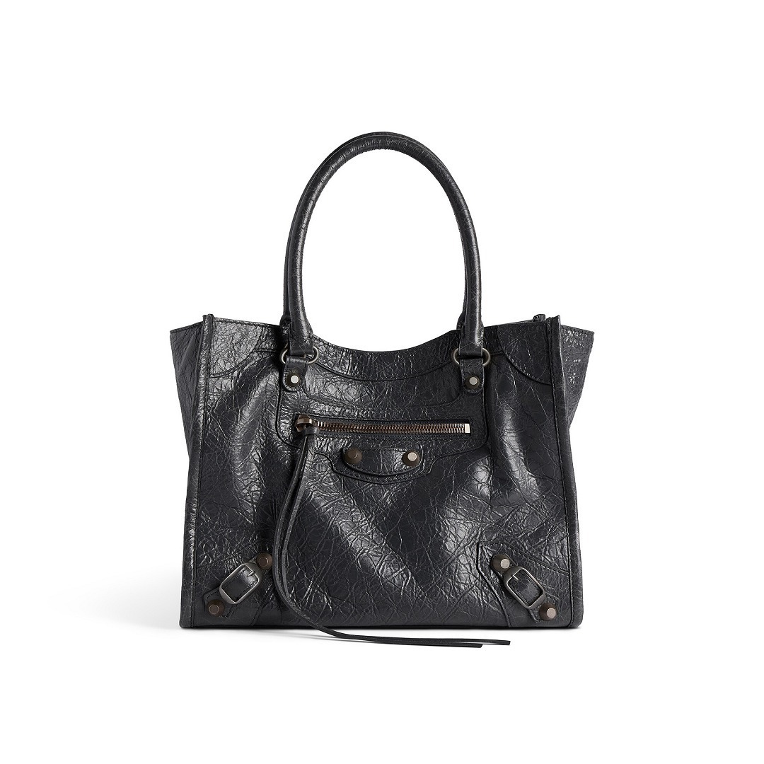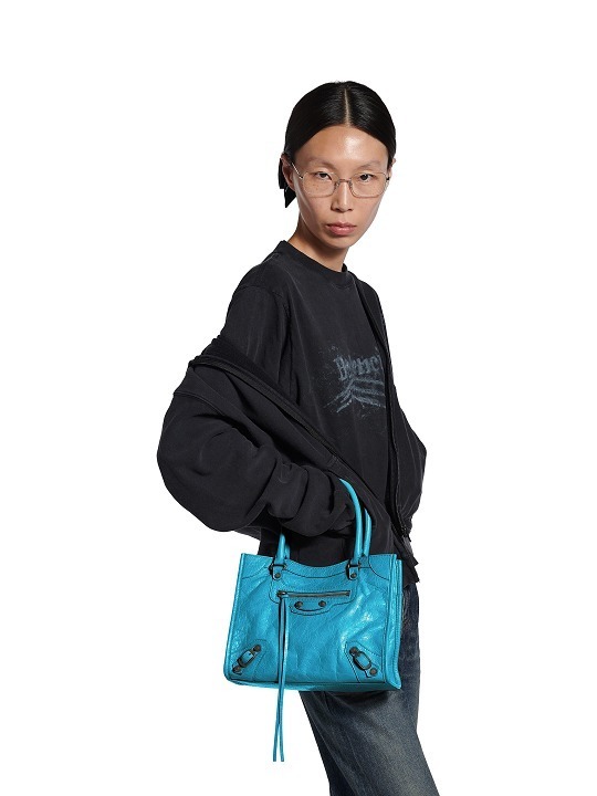 Le City Tote 是 Balenciaga 冬季25系列推出的新包型,采用方正利落的购物袋造型重新演绎经典机车包,常规系列提供39cm中号尺寸和33cm小号尺寸。本次日本限定的迷你尺寸采用 26×21×8cm 规格小方包构型,搭配14cm高的管状皮革手柄和59cm长的可拆卸可调节肩带,可以手拎、肩背或者斜挎,对小个子女生格外友好。