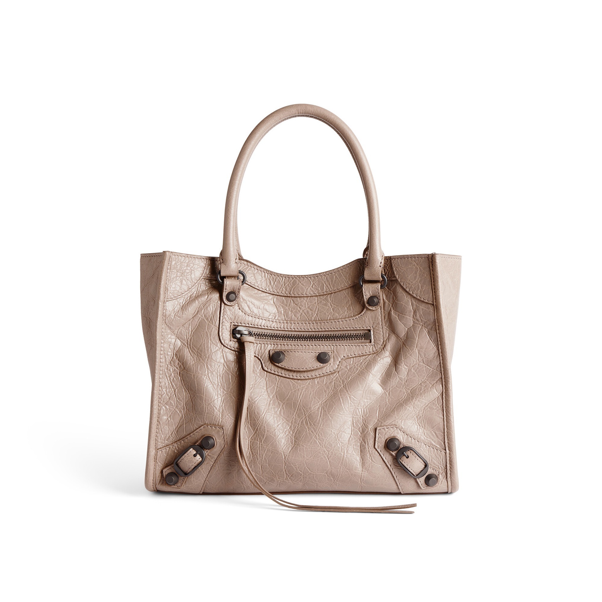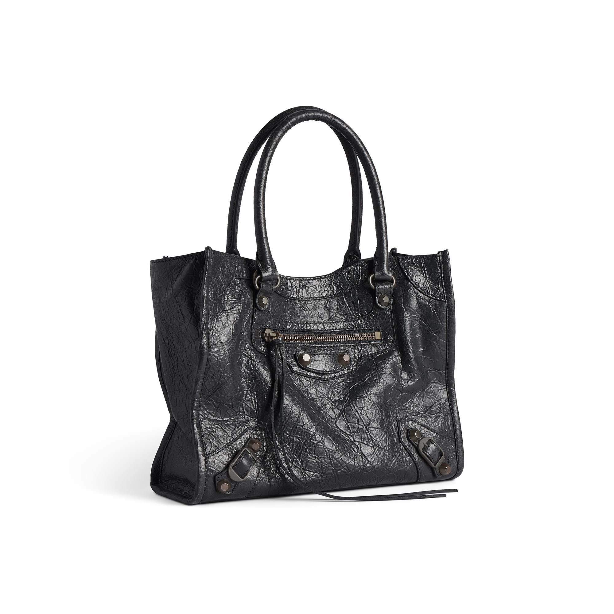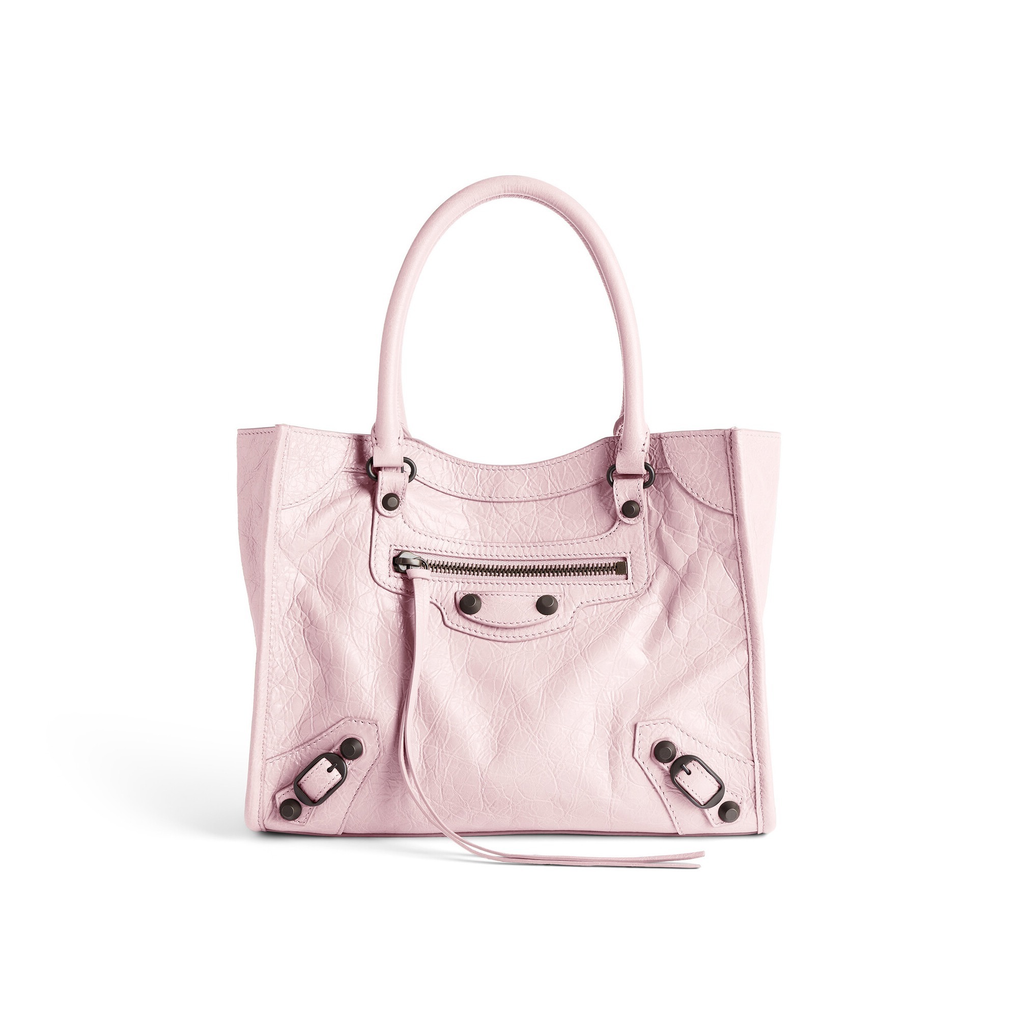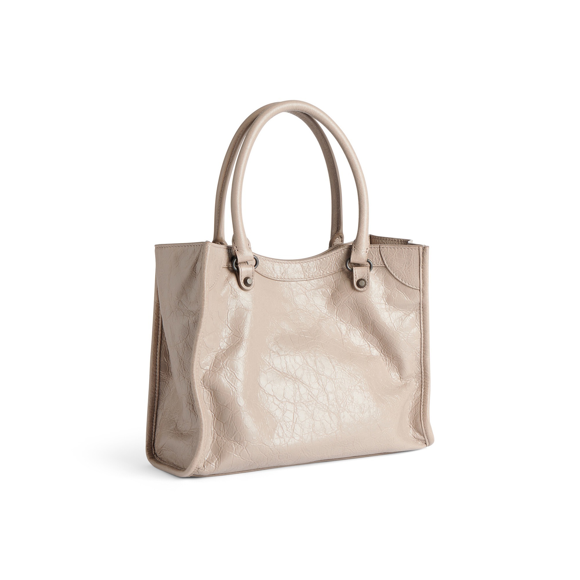 Le City Tote 是 Balenciaga 冬季25系列推出的新包型,采用方正利落的购物袋造型重新演绎经典机车包,常规系列提供39cm中号尺寸和33cm小号尺寸。本次日本限定的迷你尺寸采用 26×21×8cm 规格小方包构型,搭配14cm高的管状皮革手柄和59cm长的可拆卸可调节肩带,可以手拎、肩背或者斜挎,对小个子女生格外友好。
