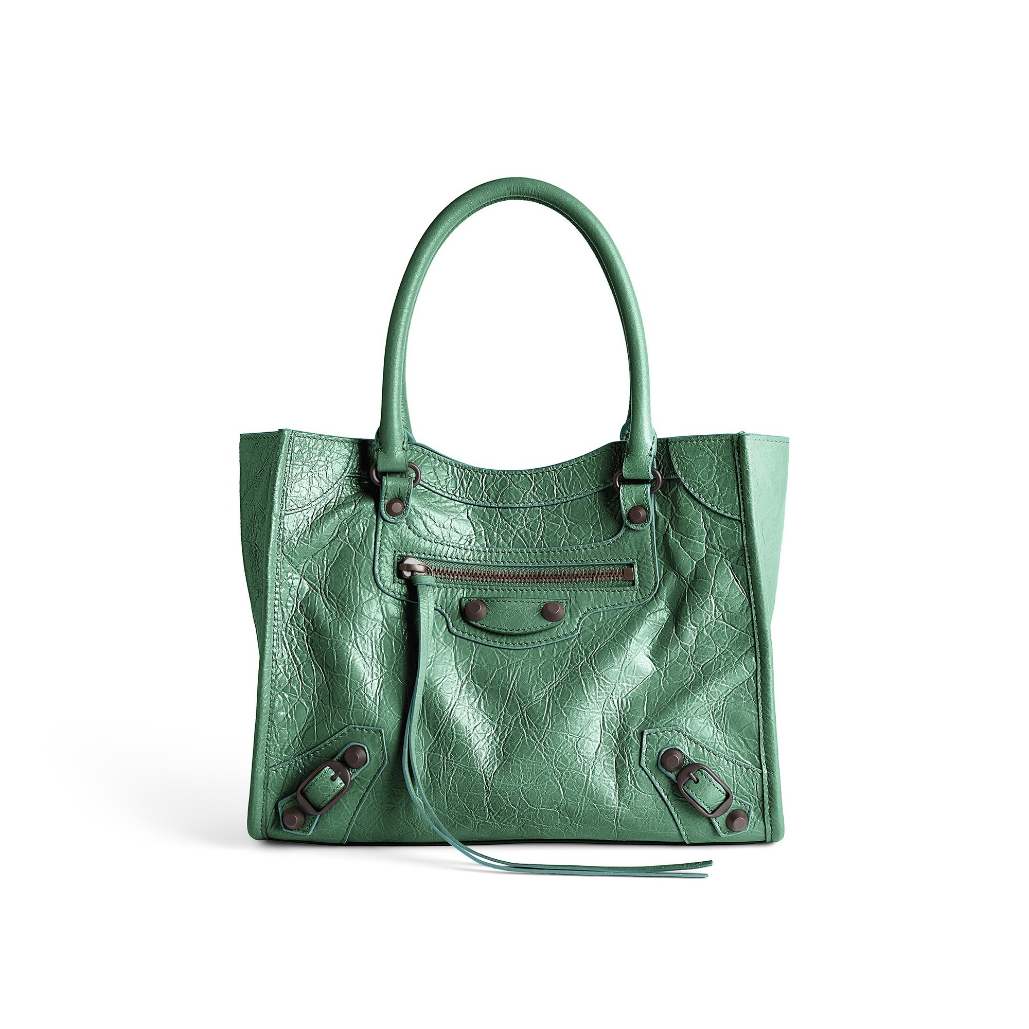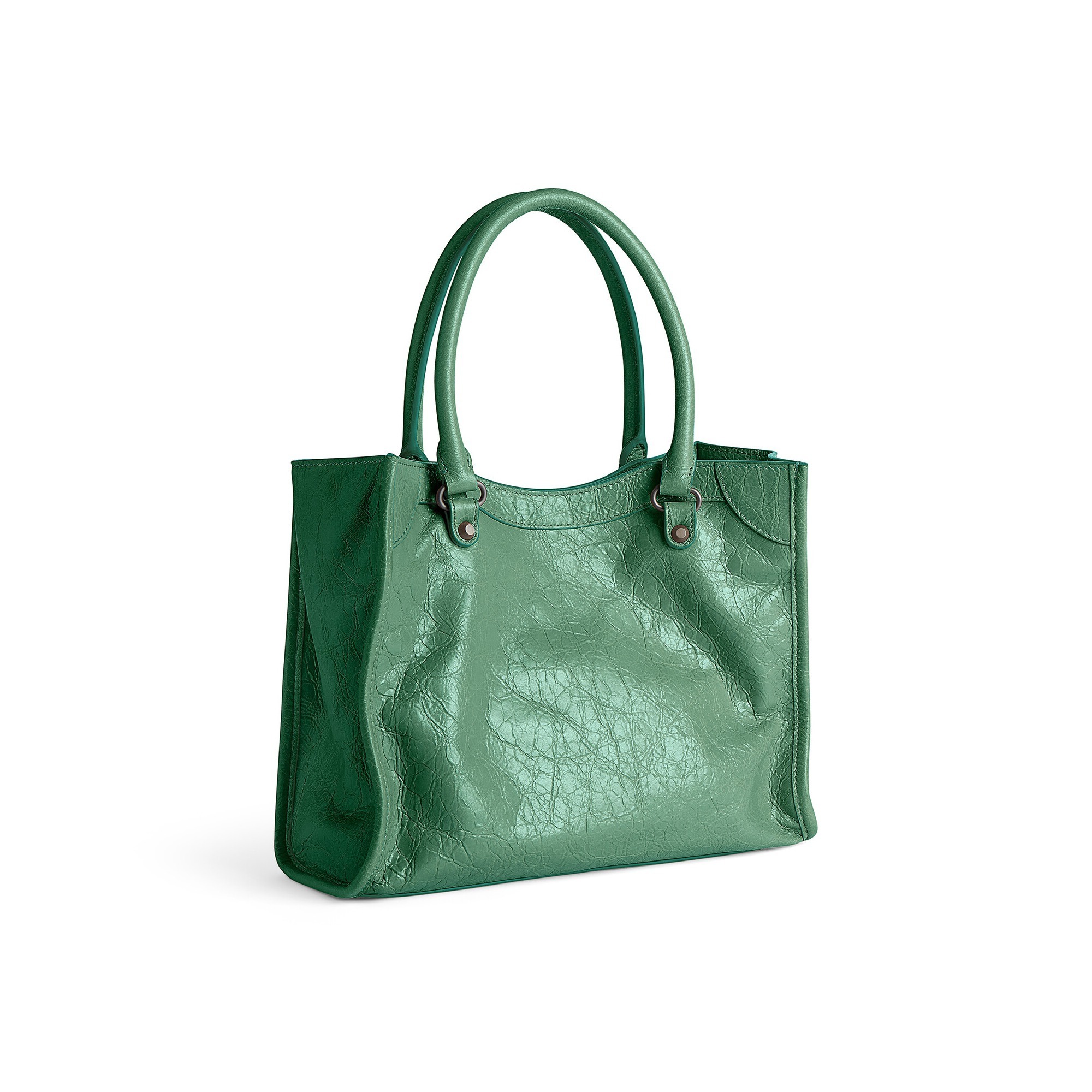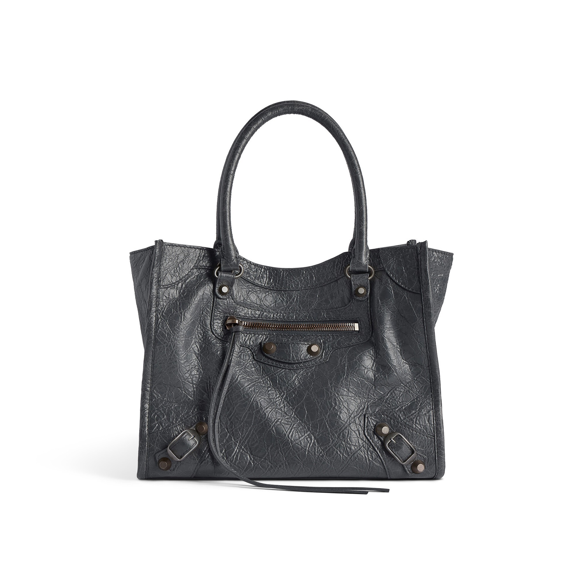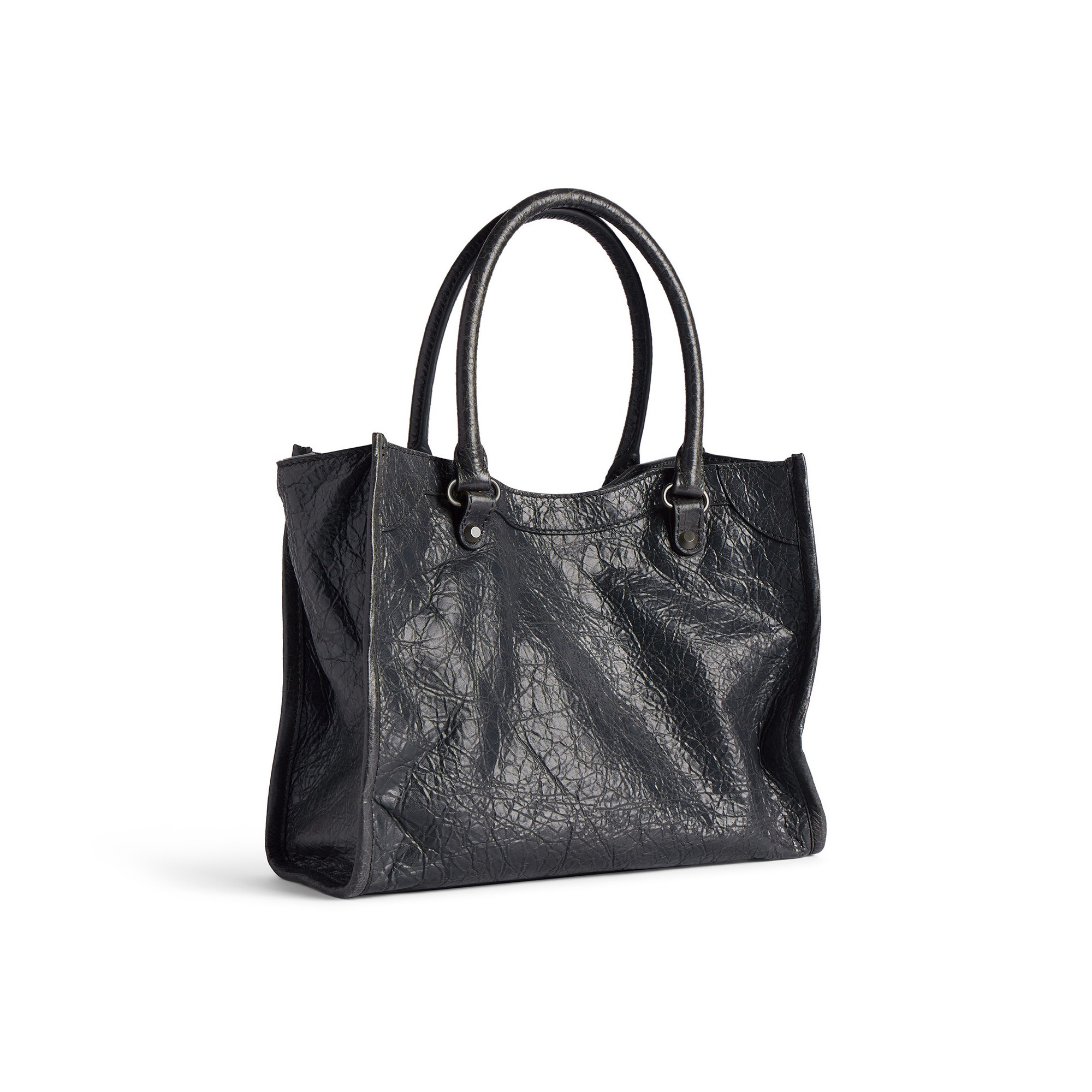 Le City Tote 是 Balenciaga 冬季25系列推出的新包型,采用方正利落的购物袋造型重新演绎经典机车包,常规系列提供39cm中号尺寸和33cm小号尺寸。本次日本限定的迷你尺寸采用 26×21×8cm 规格小方包构型,搭配14cm高的管状皮革手柄和59cm长的可拆卸可调节肩带,可以手拎、肩背或者斜挎,对小个子女生格外友好。