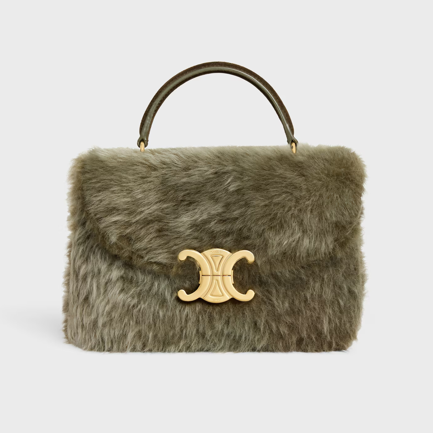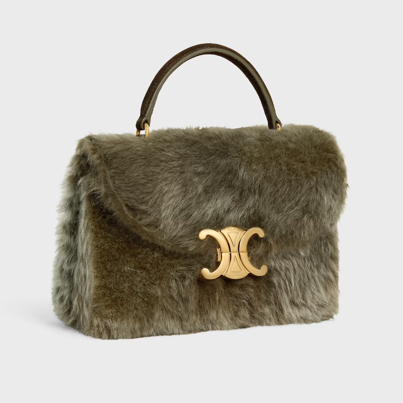 本周最具冬日气息的莫过于这只 Teen Nino 手袋,取材卡其色羊毛皮制作袋身,毛绒绒的触感雍容又温馨,卡其绿色则给人感觉沉静又充满生命力,让人联想到繁茂的森林。包包中央是一枚金色凯旋包扣,宛如珠宝般在雍容皮草衬托下更显夺目闪耀。