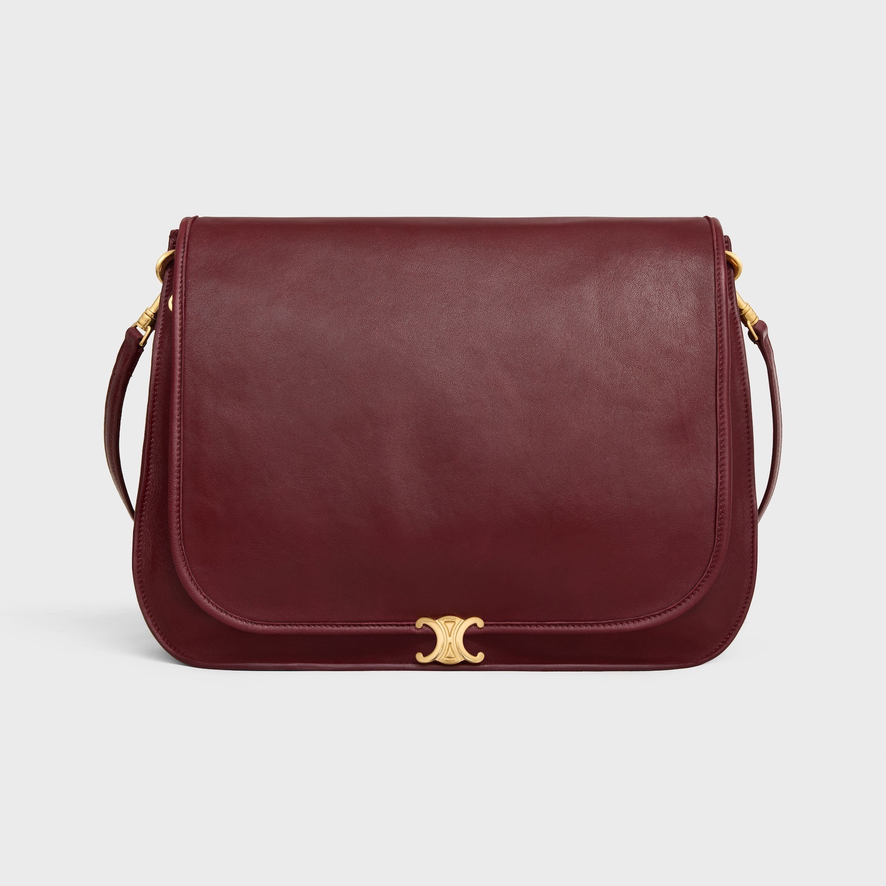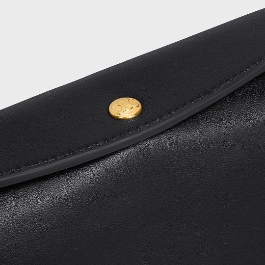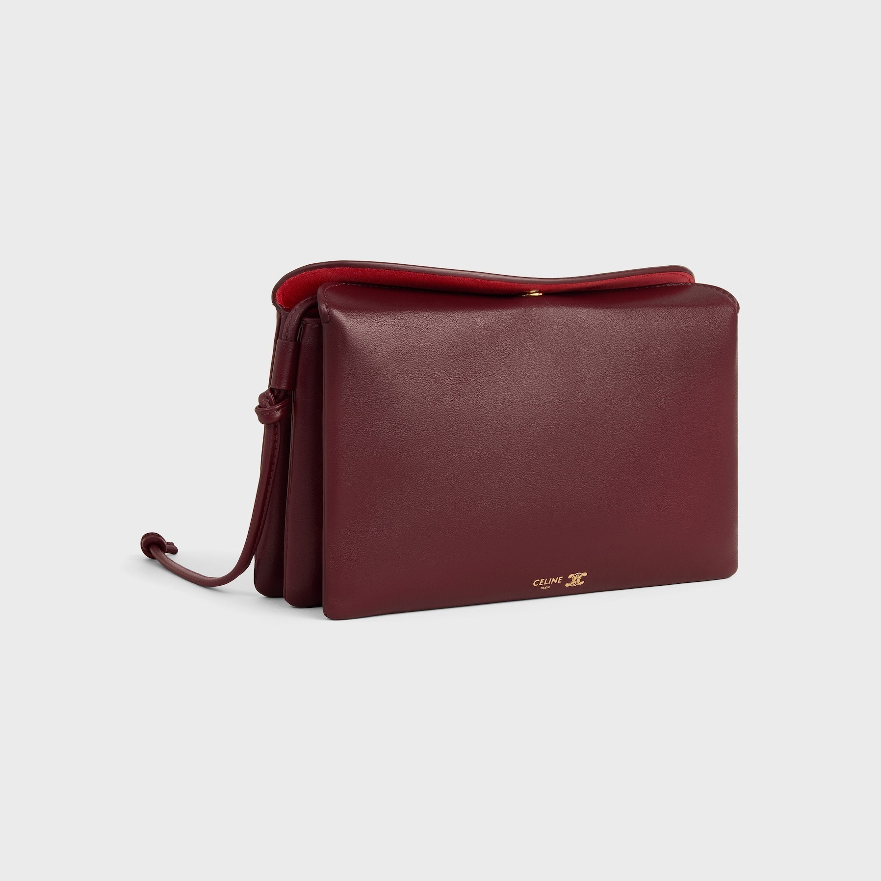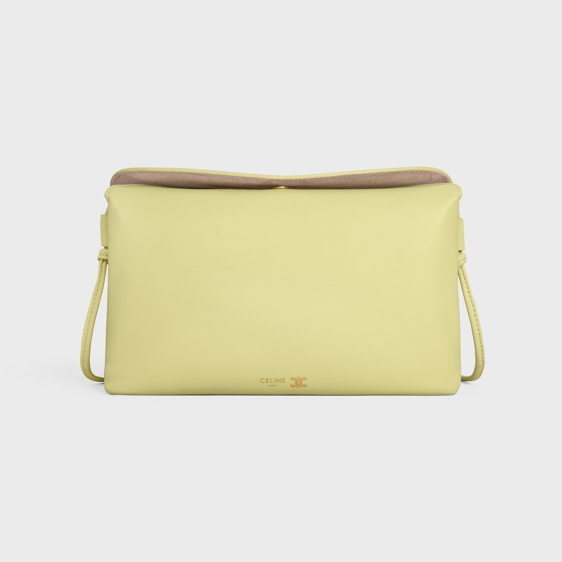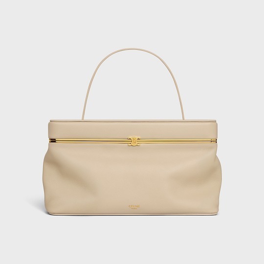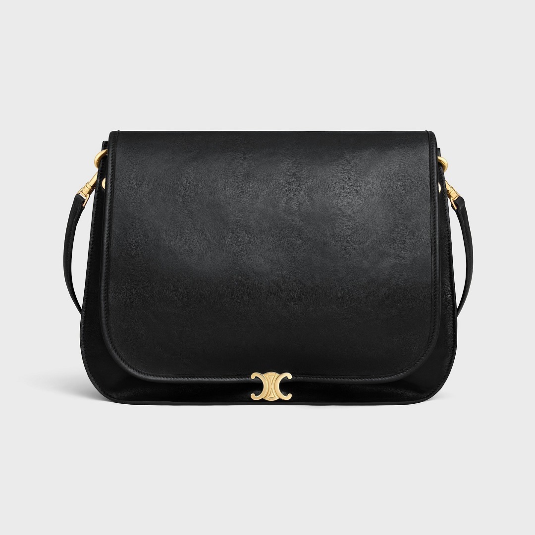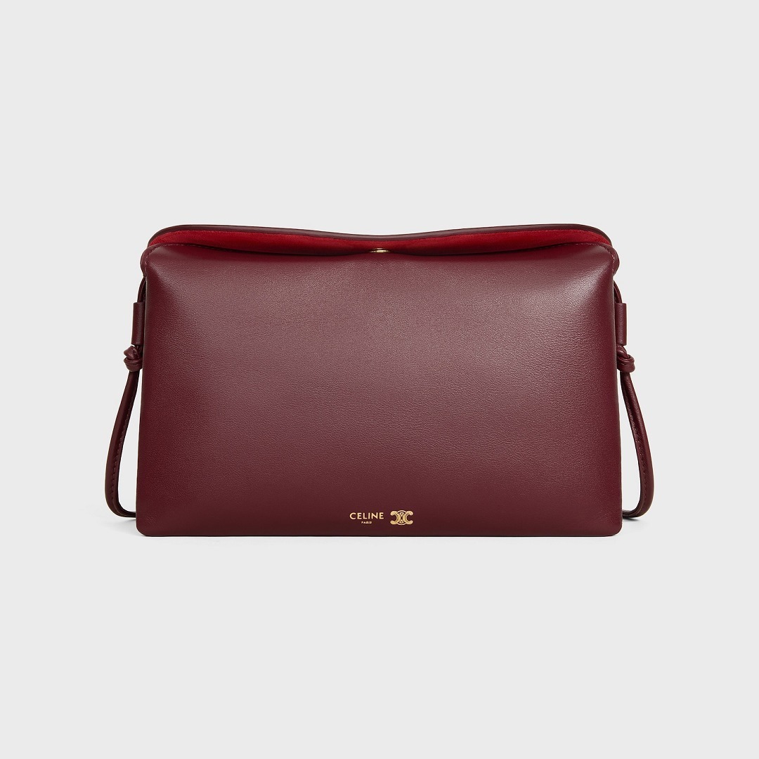 Trio Flap 手袋回溯 Old Céline 时期的 Trio 三合一手袋,包包采用柔软羊皮革塑造三层式风琴包结构,搭配对比鲜明的绒面牛皮革衬里,顶部 Triomphe 钉扣开合简洁而便利,中央拉链口袋提升安全指数,滑动式绳结肩带可实现多种背法。推出紫红色、浅棕褐色、风衣色、柑橘黄和黑色5种颜色选择,正面烫金徽标精巧点缀。
