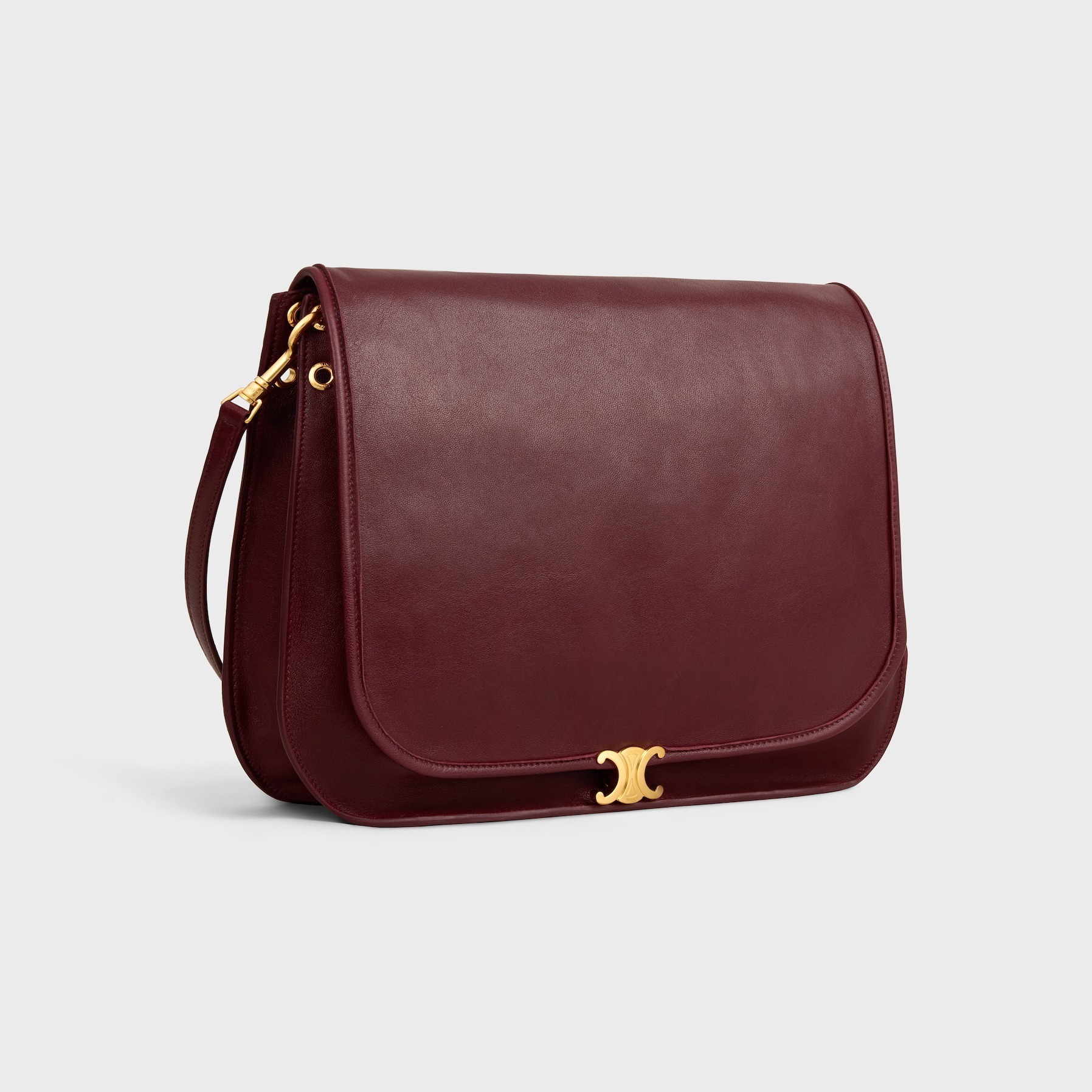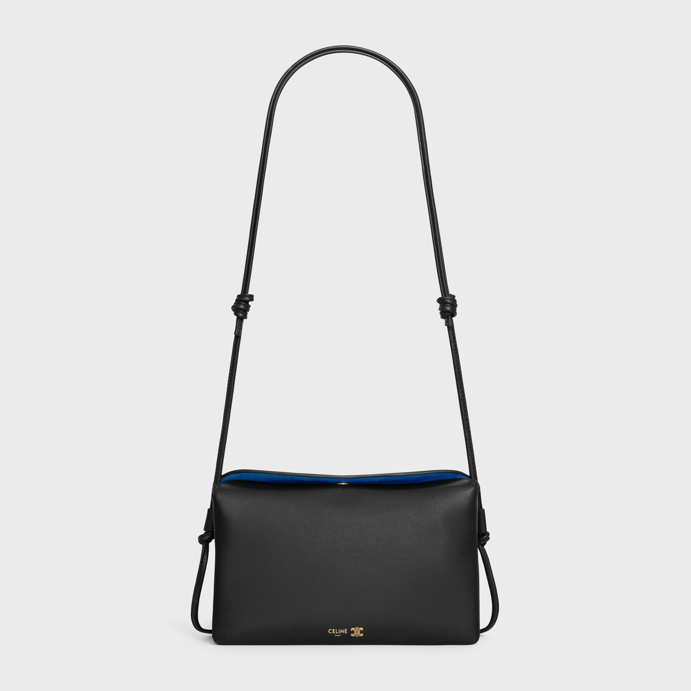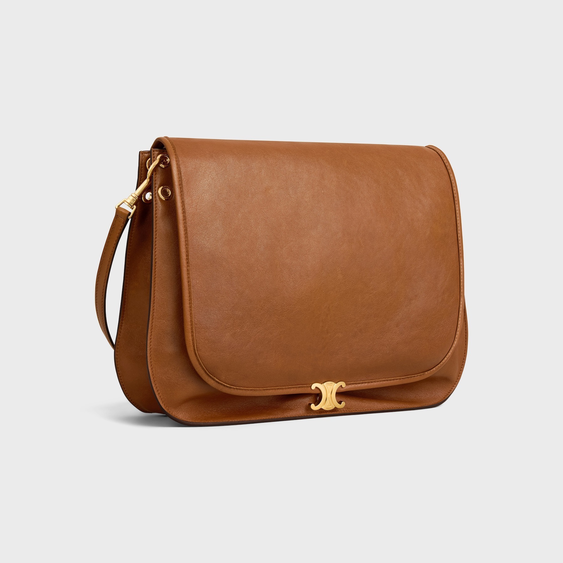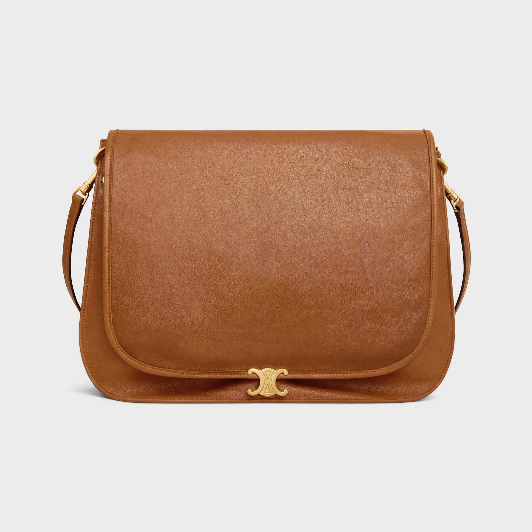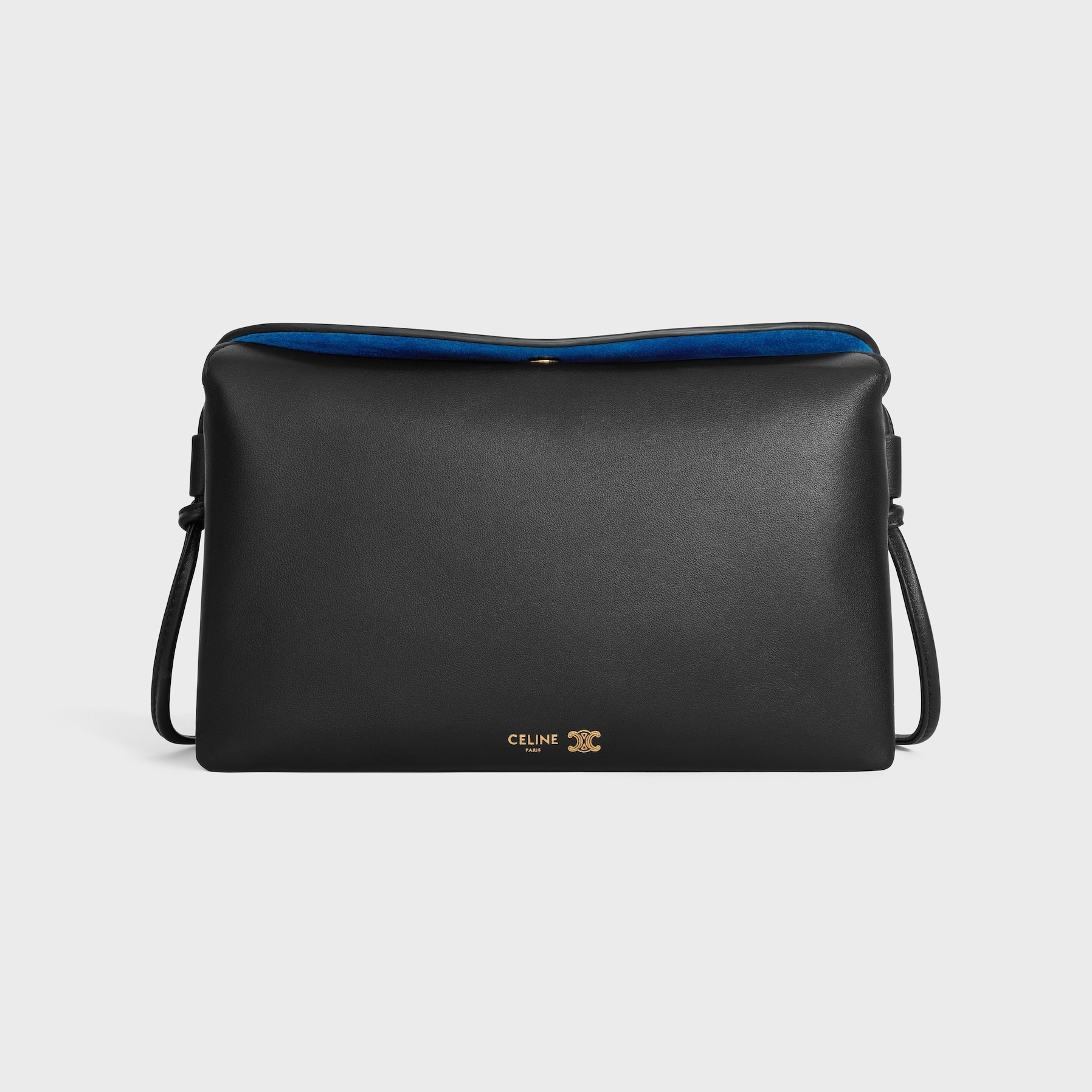 Trio Flap 手袋回溯 Old Céline 时期的 Trio 三合一手袋,包包采用柔软羊皮革塑造三层式风琴包结构,搭配对比鲜明的绒面牛皮革衬里,顶部 Triomphe 钉扣开合简洁而便利,中央拉链口袋提升安全指数,滑动式绳结肩带可实现多种背法。推出紫红色、浅棕褐色、风衣色、柑橘黄和黑色5种颜色选择,正面烫金徽标精巧点缀。