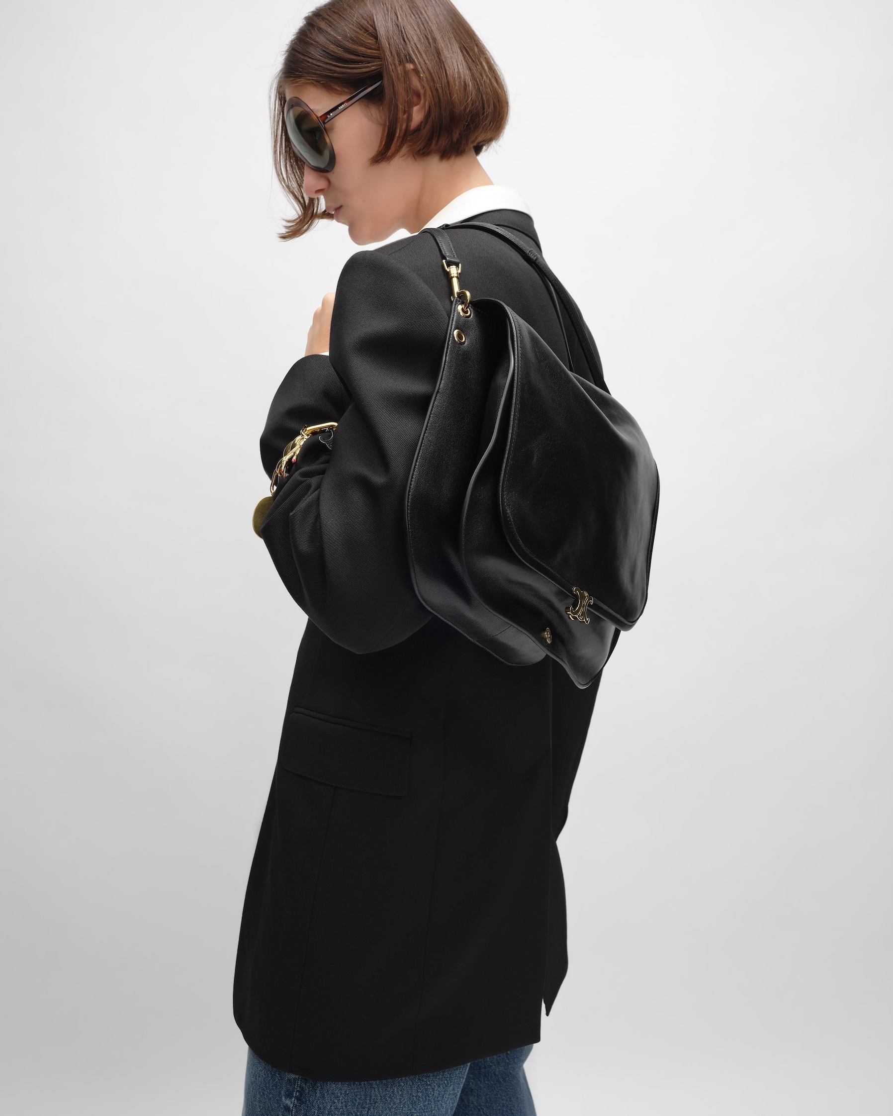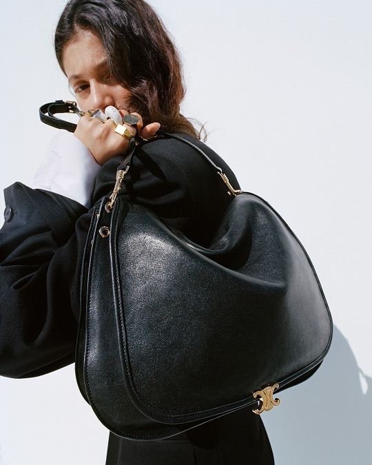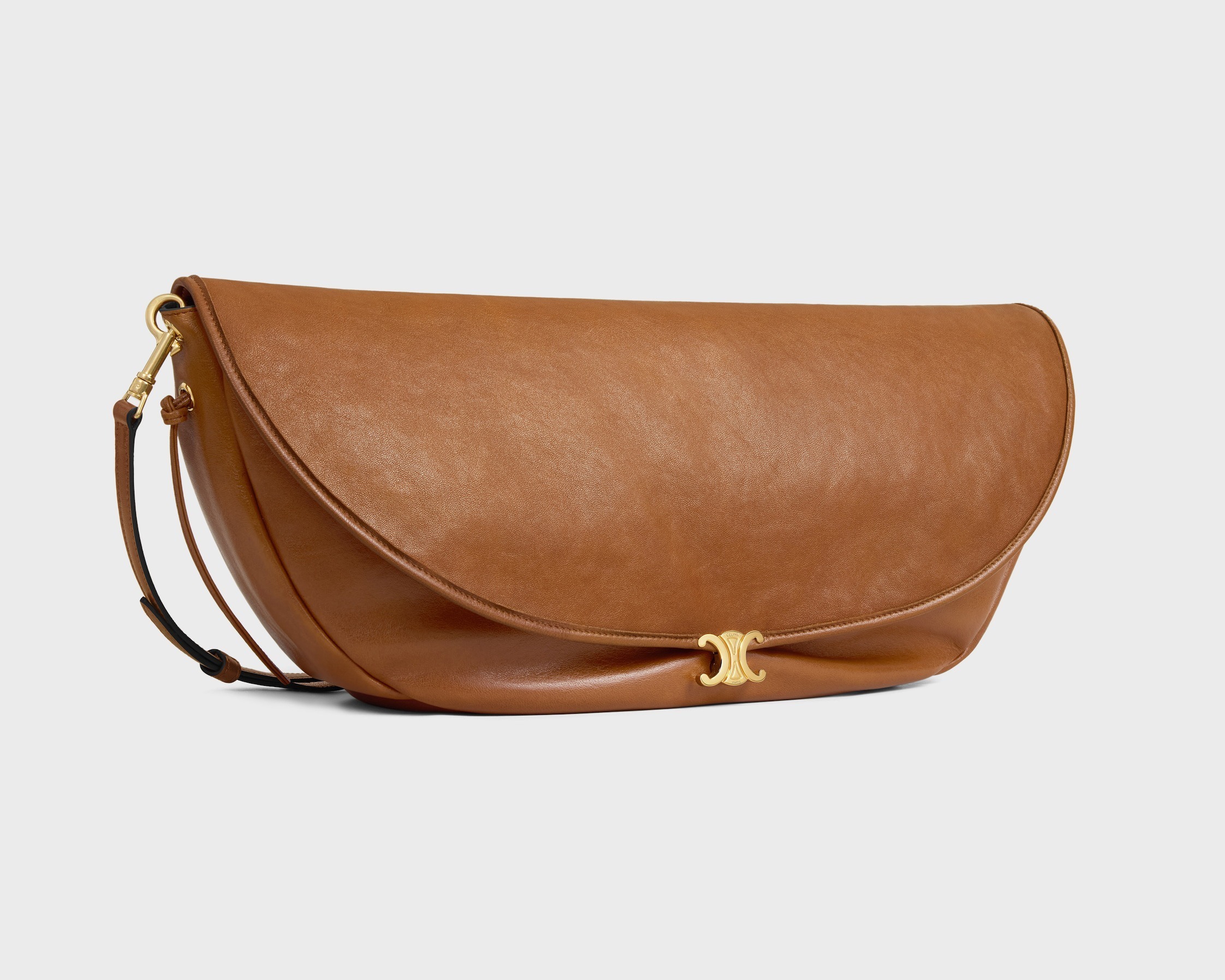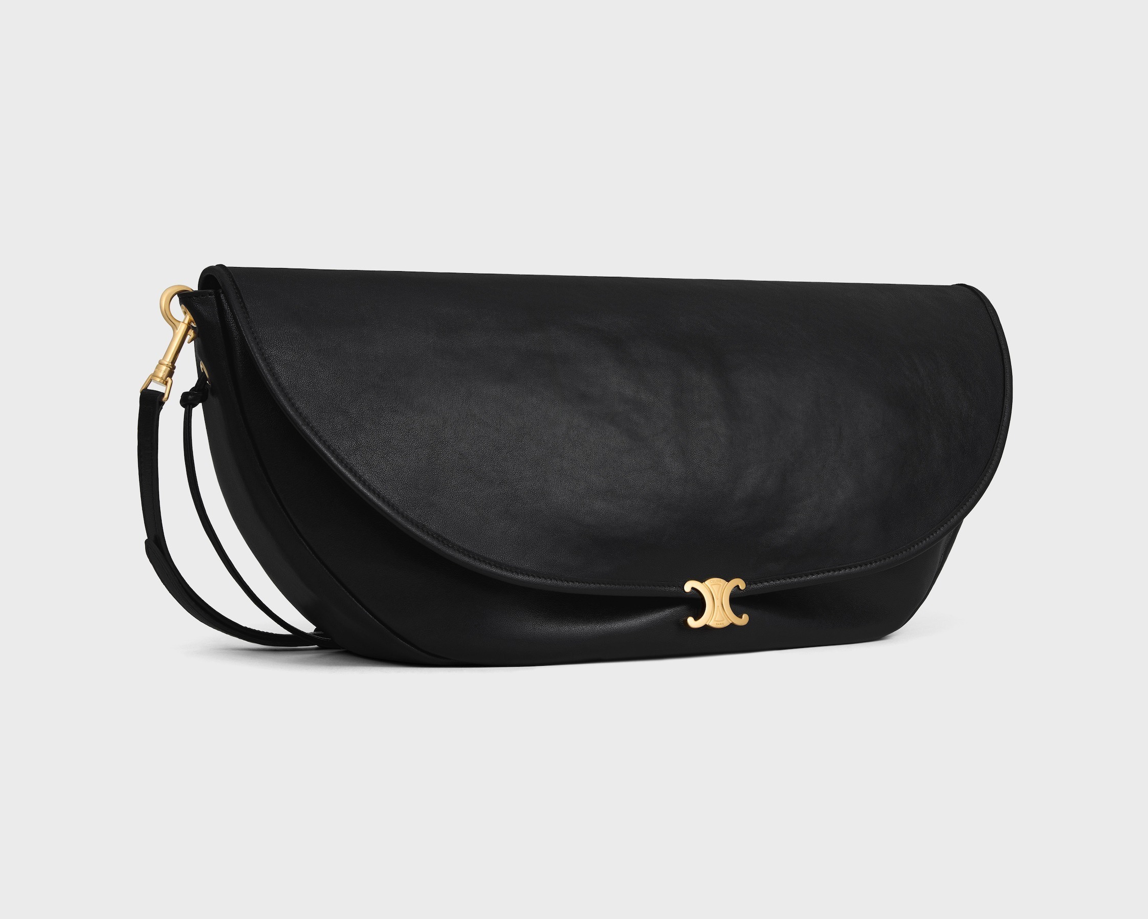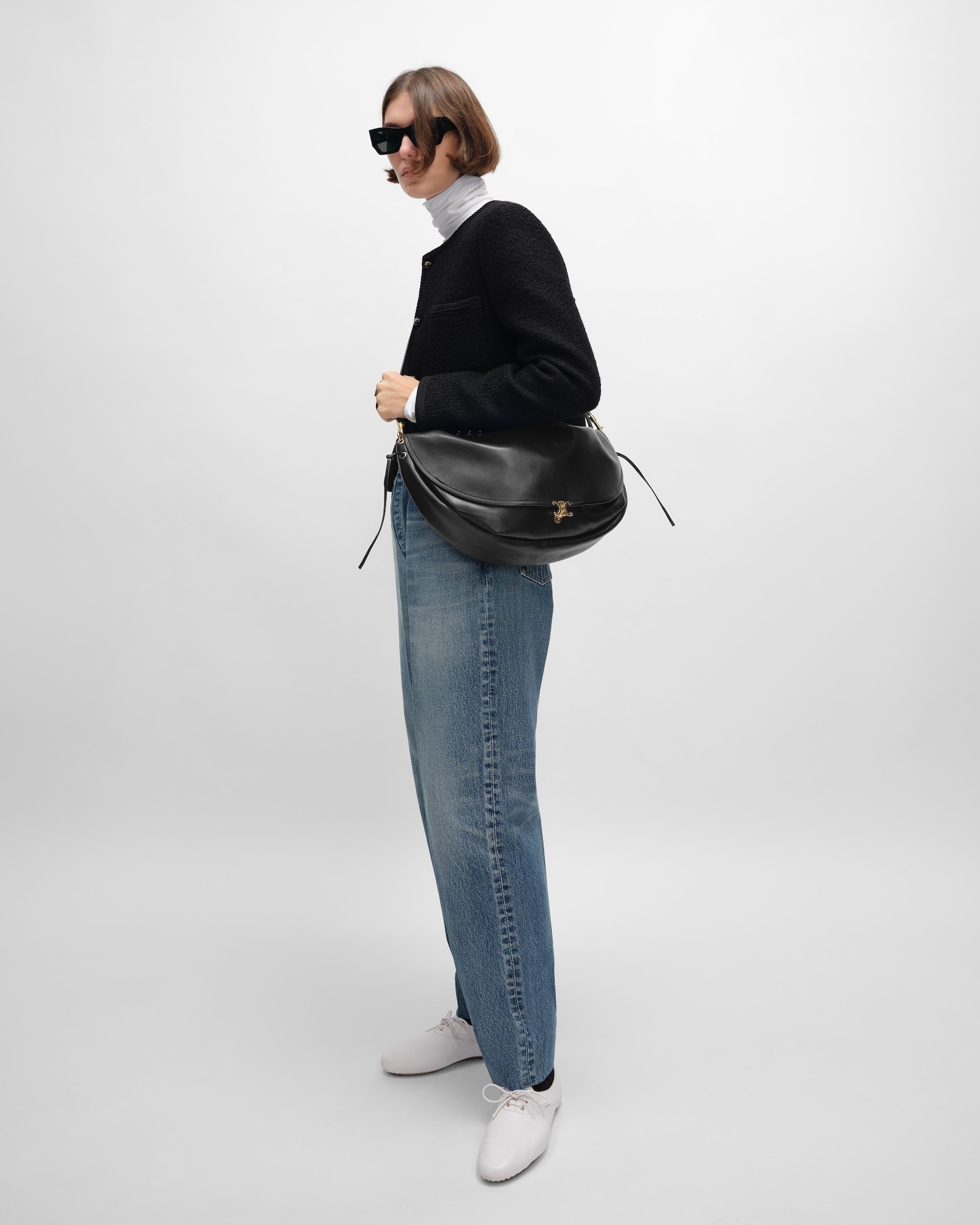 Halfmoon Soft Triomphe 手袋采用细长的半月构型,包身同样为柔软亮泽的小羊皮材质,Triomphe 凯旋包扣作为点睛,背侧拉链口袋便于取放随手物品,流畅的包身线条流露出慵懒随性格调。