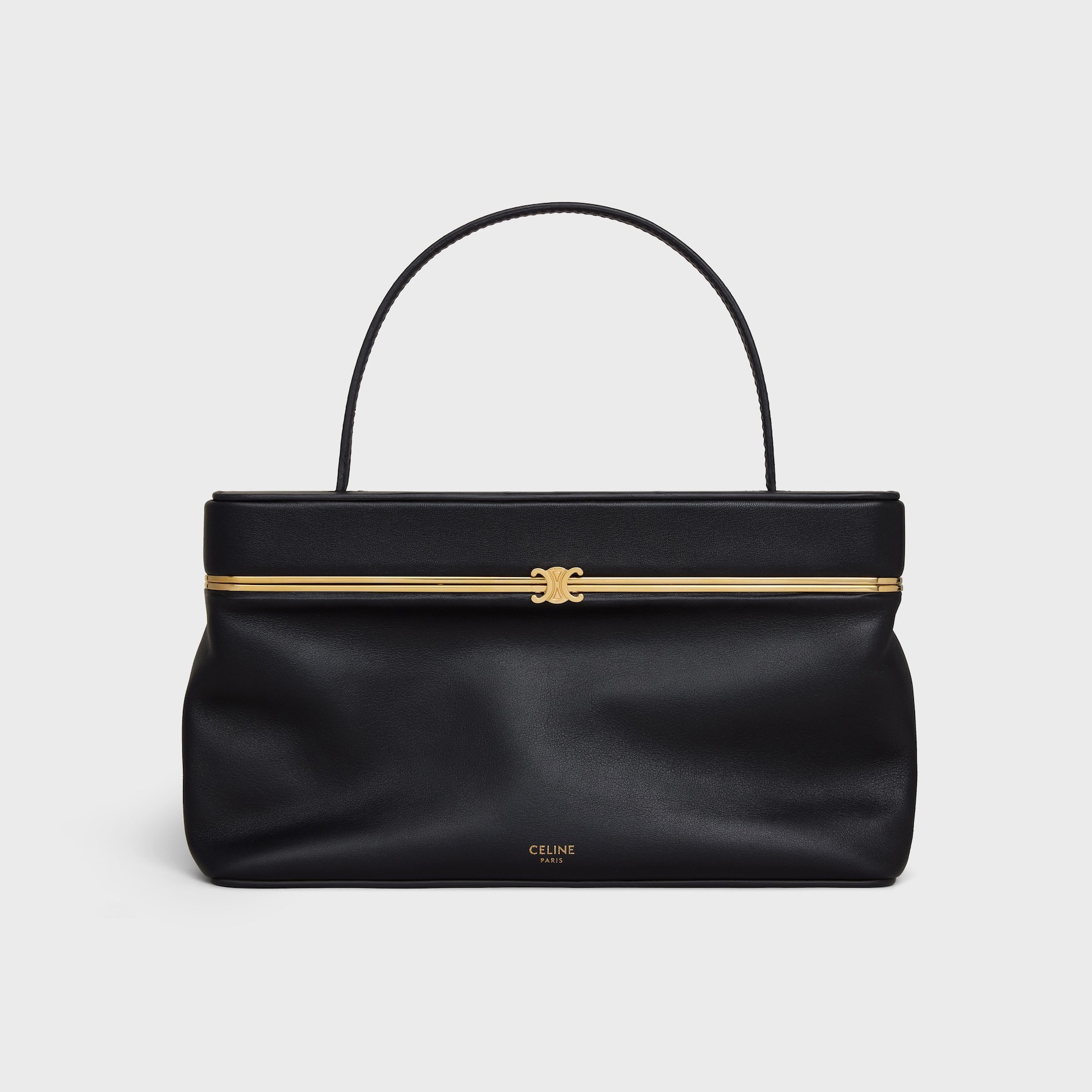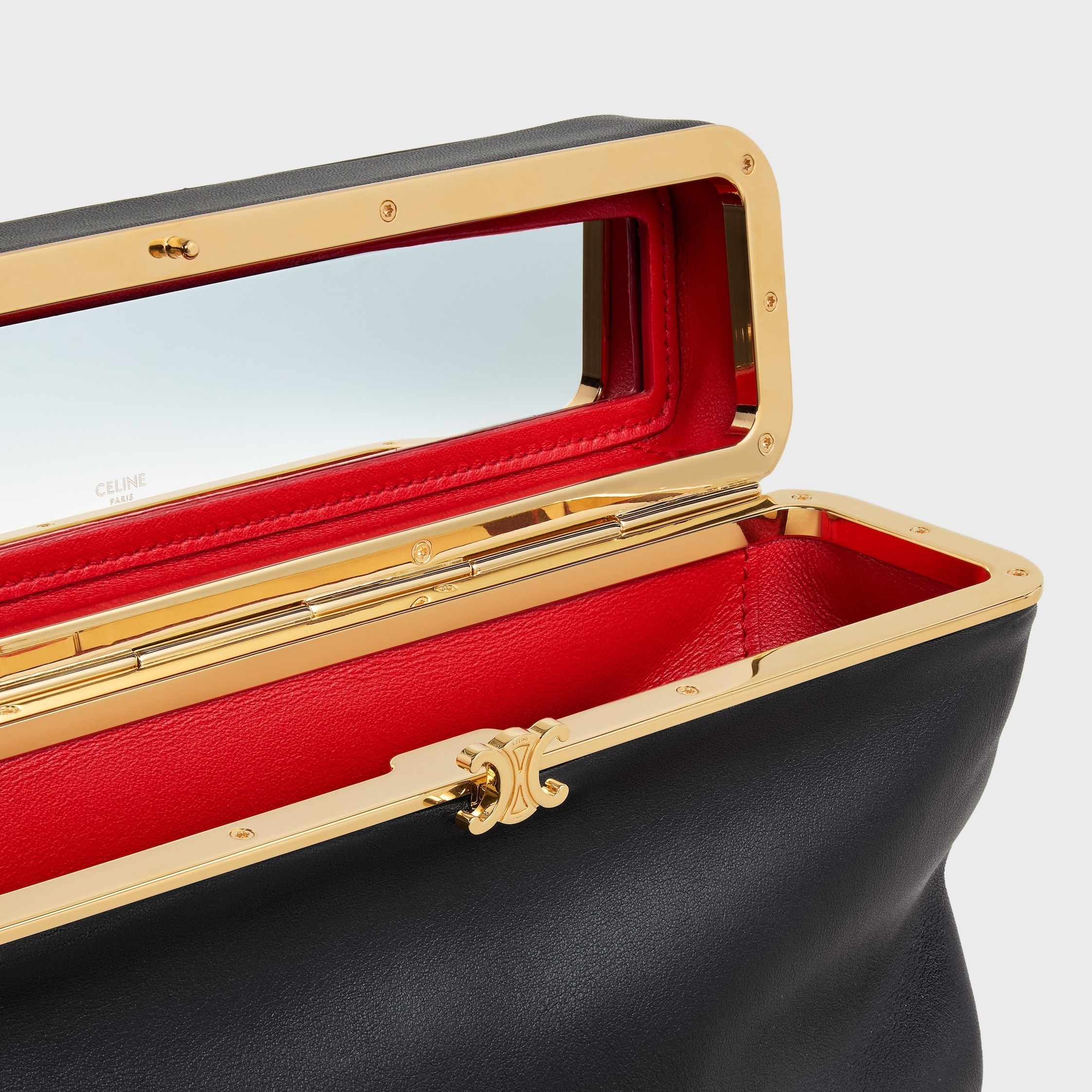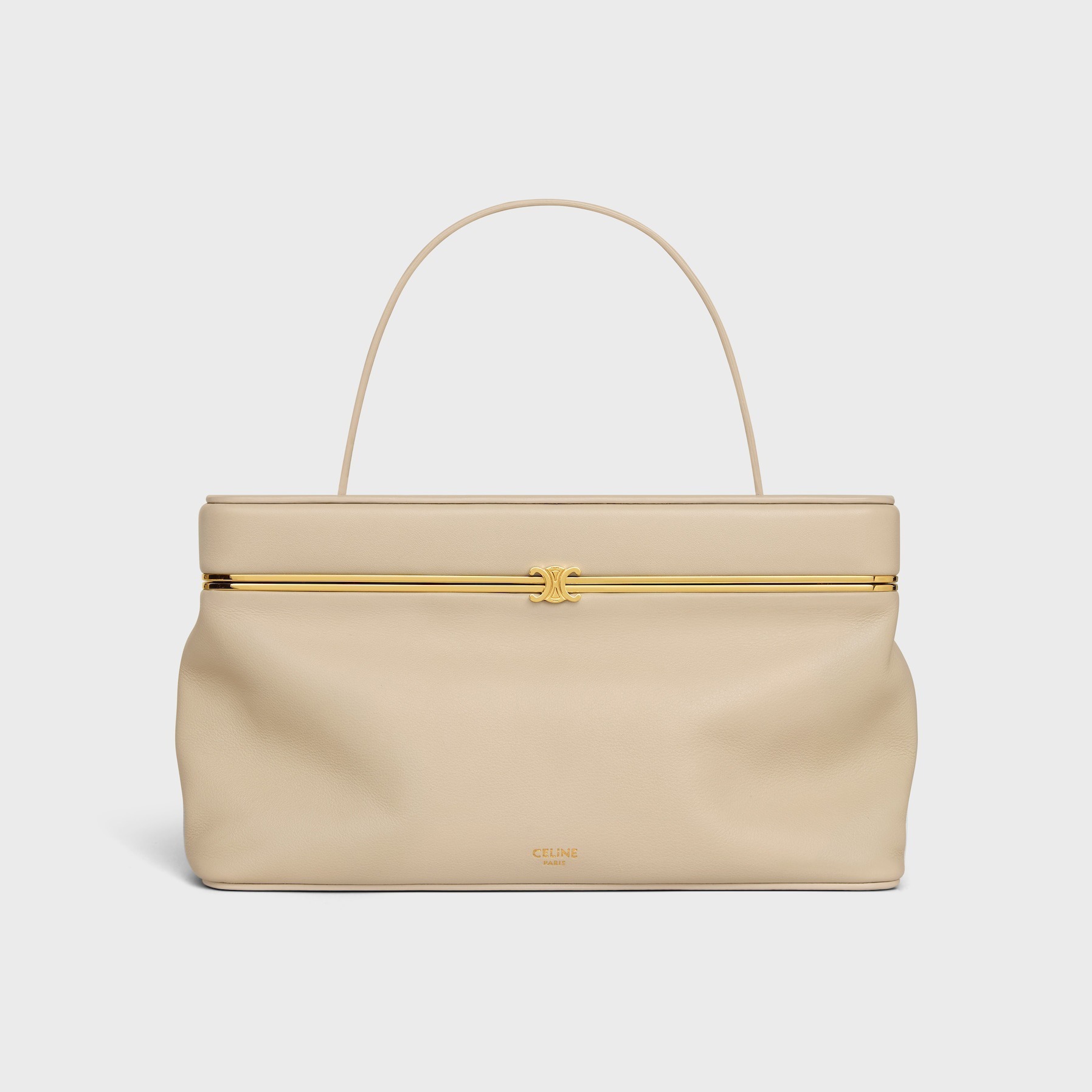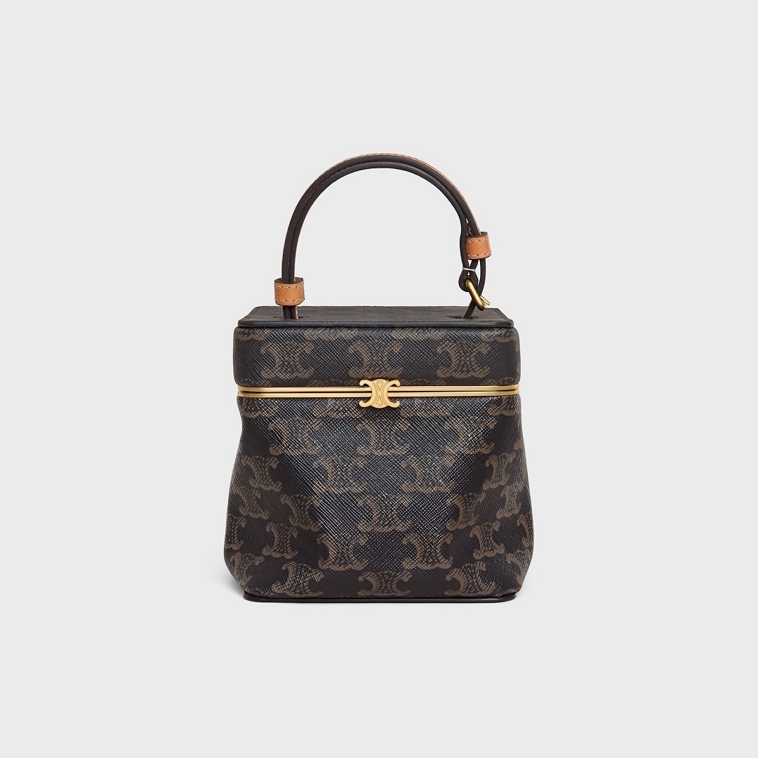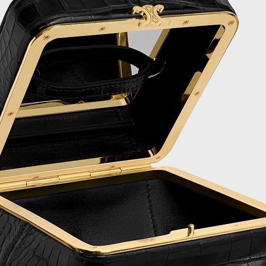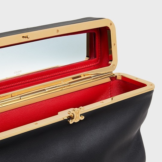 新款 Triomphe Frame 手袋将古典化妆匣结构与柔软廓形合二为一,精巧凯旋搭扣与金属框为包包增添精致细节,可调节肩带实现手拎、肩背或斜挎背法。推出经典标志印花帆布、黑色和紫红色小牛皮、深蓝色蟒蛇皮和可定制的鳄鱼皮版本,包包打开后还设有化妆镜,也是非常贴心的设计。
