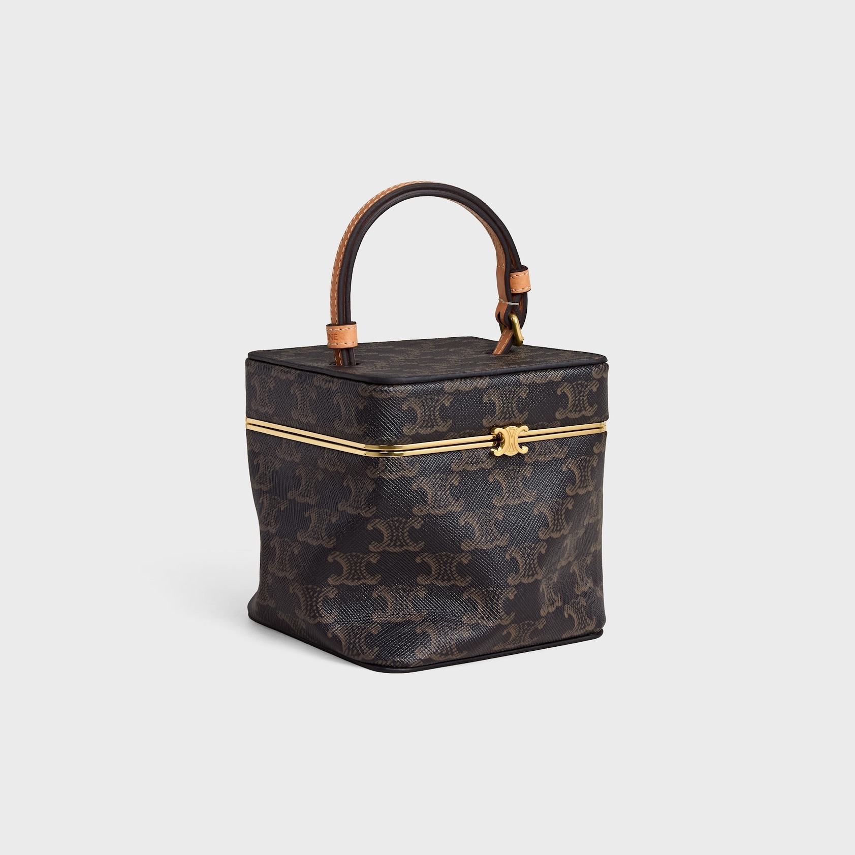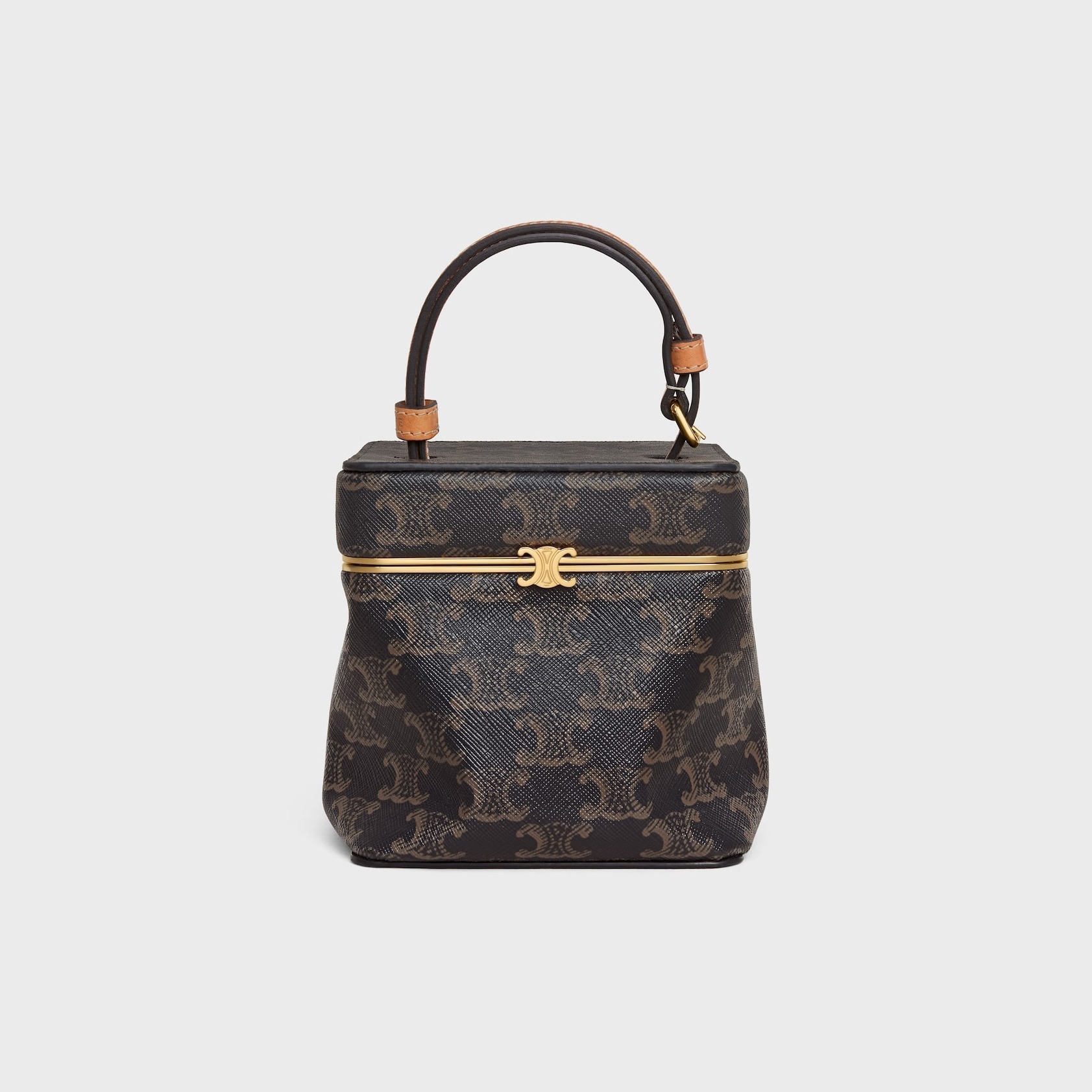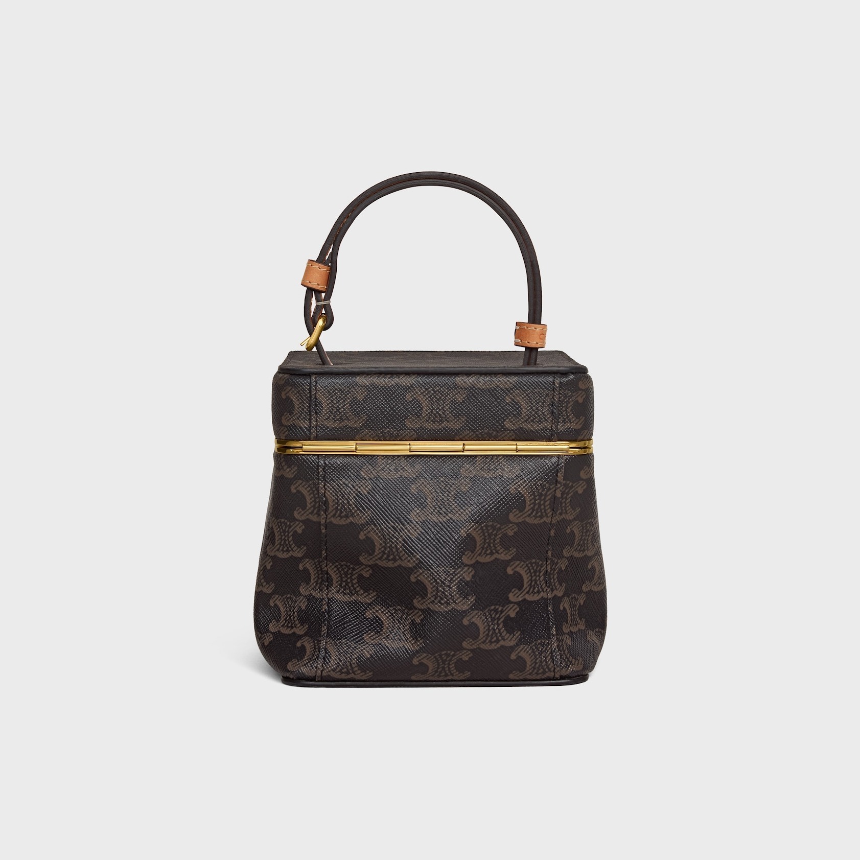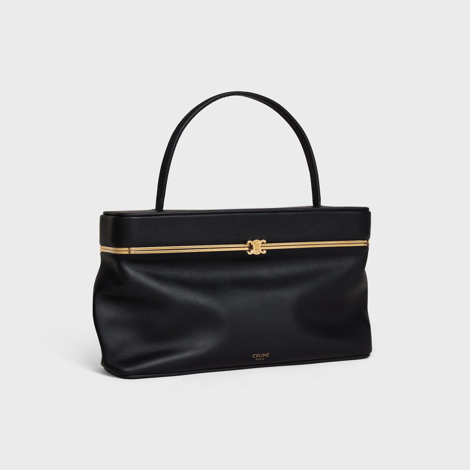 新款 Triomphe Frame 手袋将古典化妆匣结构与柔软廓形合二为一,精巧凯旋搭扣与金属框为包包增添精致细节,可调节肩带实现手拎、肩背或斜挎背法。推出经典标志印花帆布、黑色和紫红色小牛皮、深蓝色蟒蛇皮和可定制的鳄鱼皮版本,包包打开后还设有化妆镜,也是非常贴心的设计。