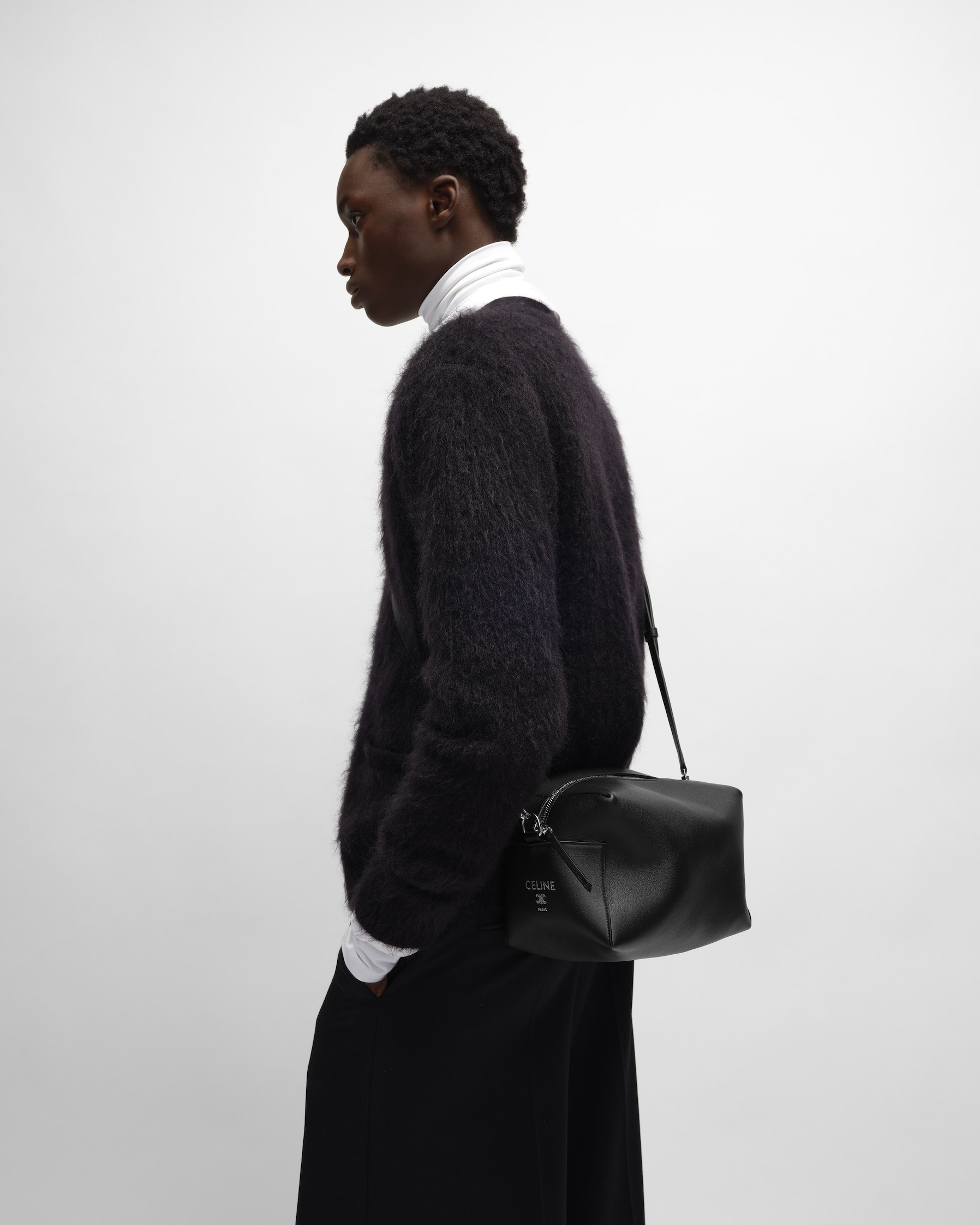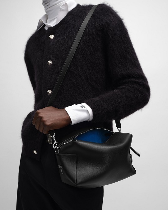 男士系列带来新款 Take Away 邮差包,采用柔软细腻的小牛皮塑造洗练长方体结构,搭配可拆卸可调节肩带和烫银徽标细节,侧面皮革提手可作为手拿包背携。推出氧化蓝、栗棕色和黑色3种配色,亮蓝色绒面革里衬为日常增添巧思。