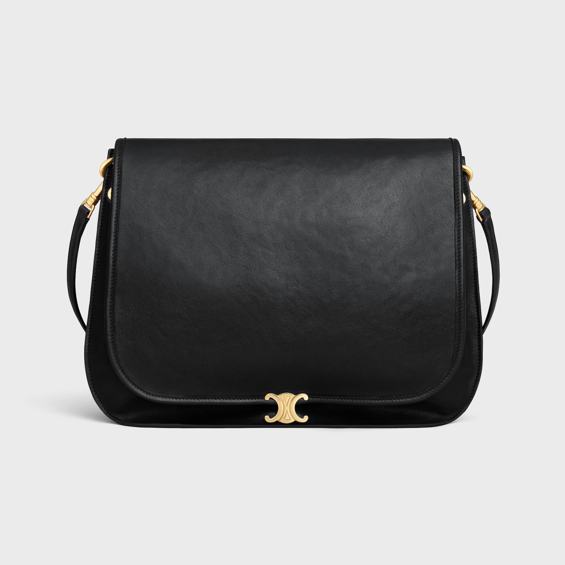 新款 Besace Soft Triomphe 手袋最大亮点在于材质上的更新,新作采用柔软细腻的小羊皮材质搭配绒面小牛皮衬里,缩小比例的 Triomphe 凯旋扣在 Oversized 包身上显得尤为精巧,即便是大包型的自重也不会过于压肩膀。包包侧面采用风琴褶设计,有很好的延展性,可拆卸可调节的肩带满足肩背或斜挎需求。推出黑色、棕色和深紫红色3种颜色选择。