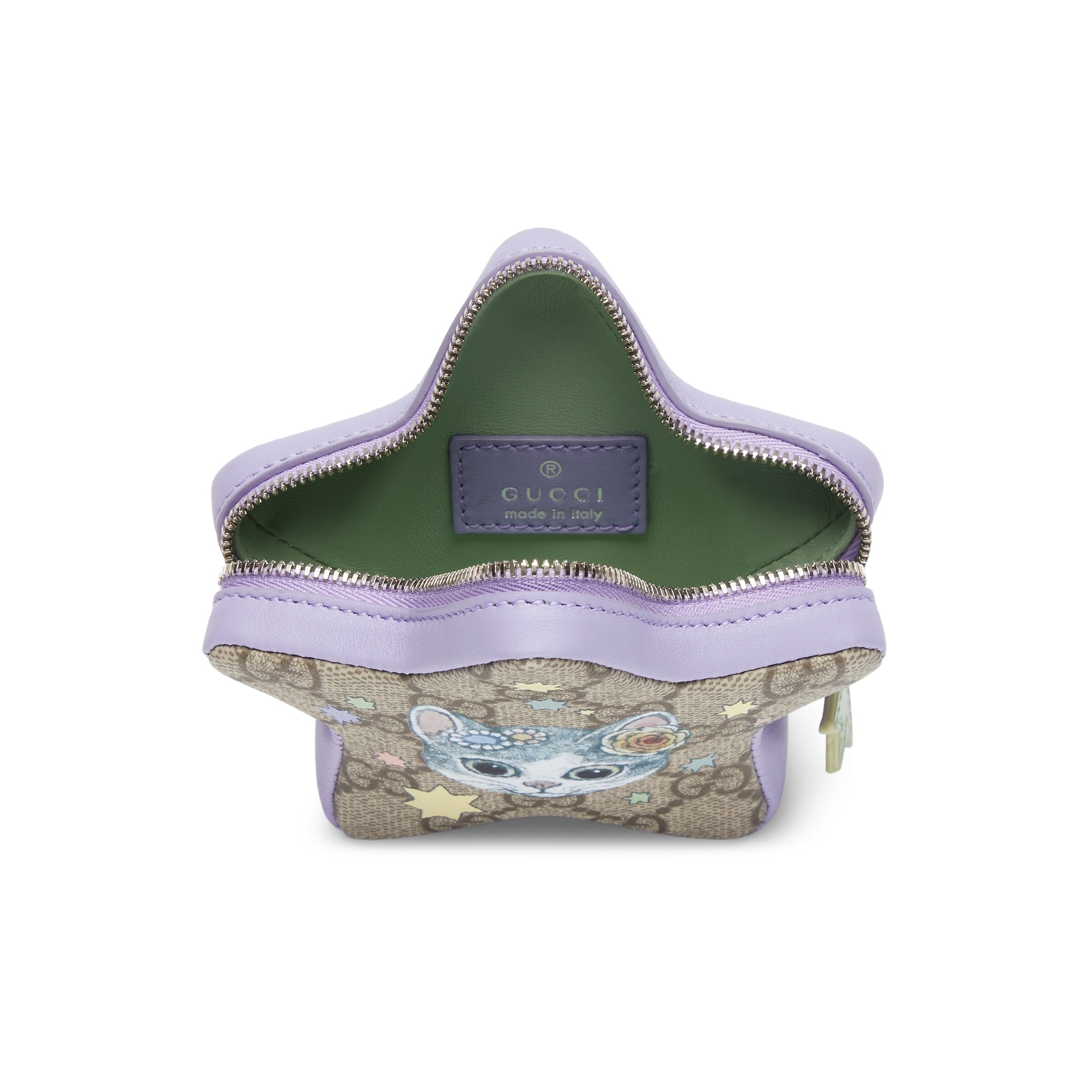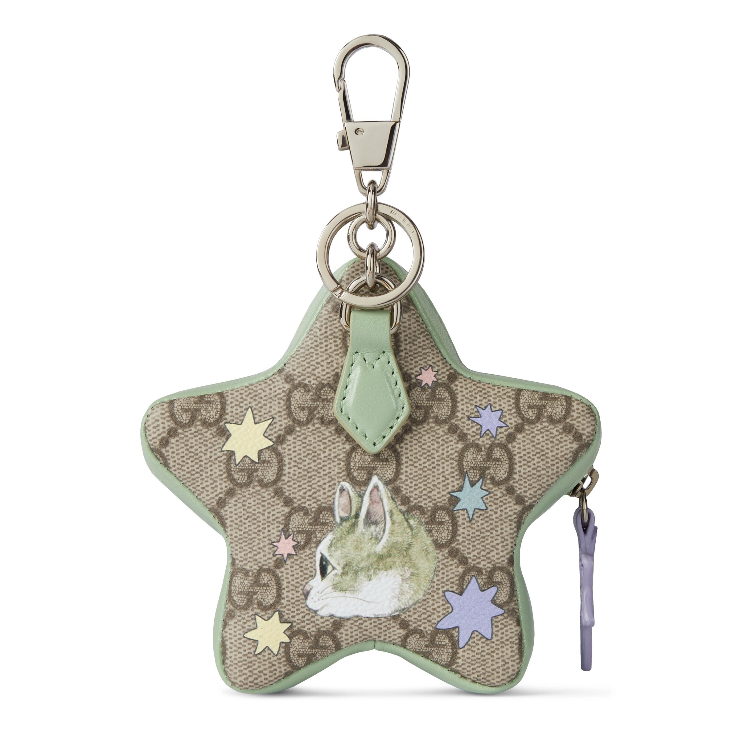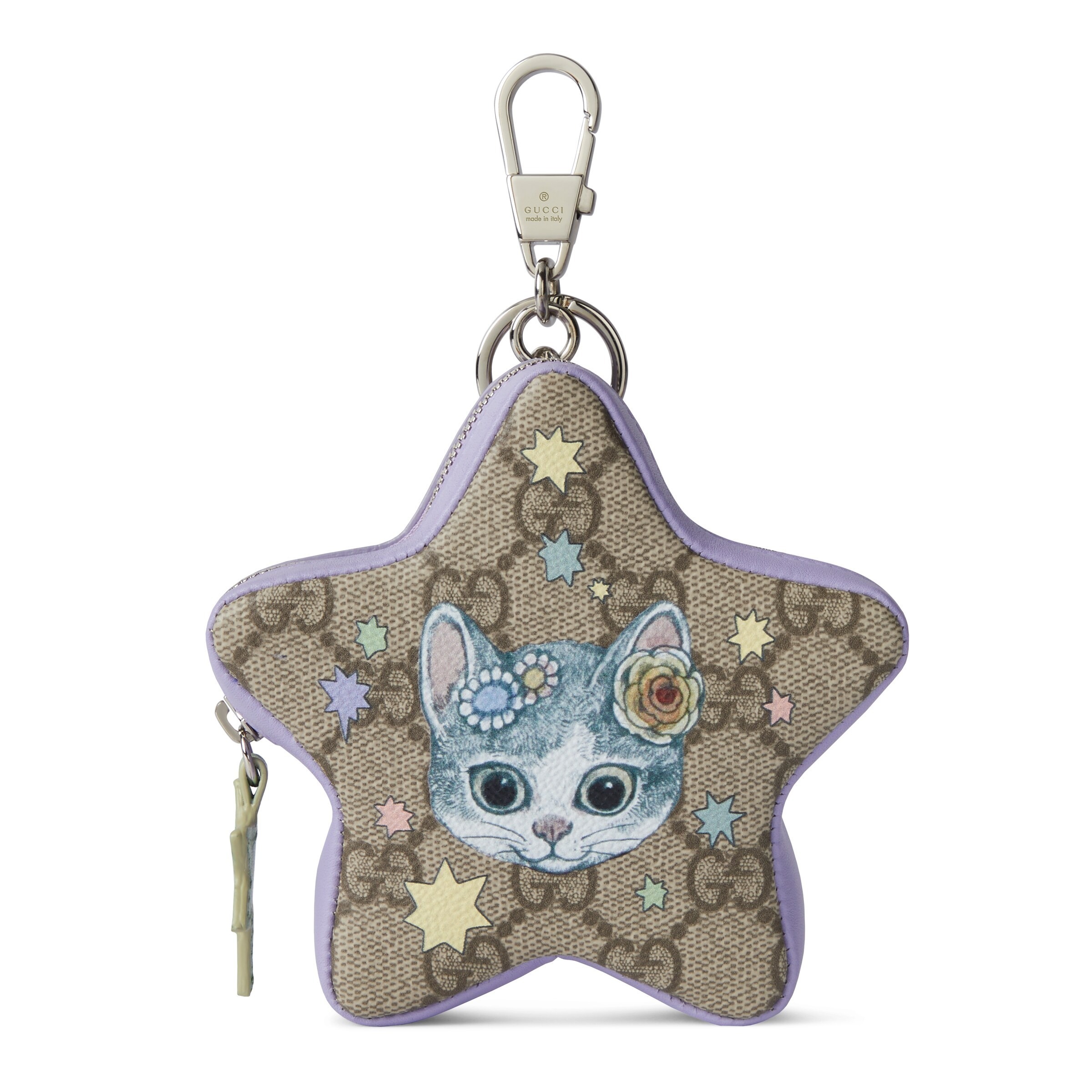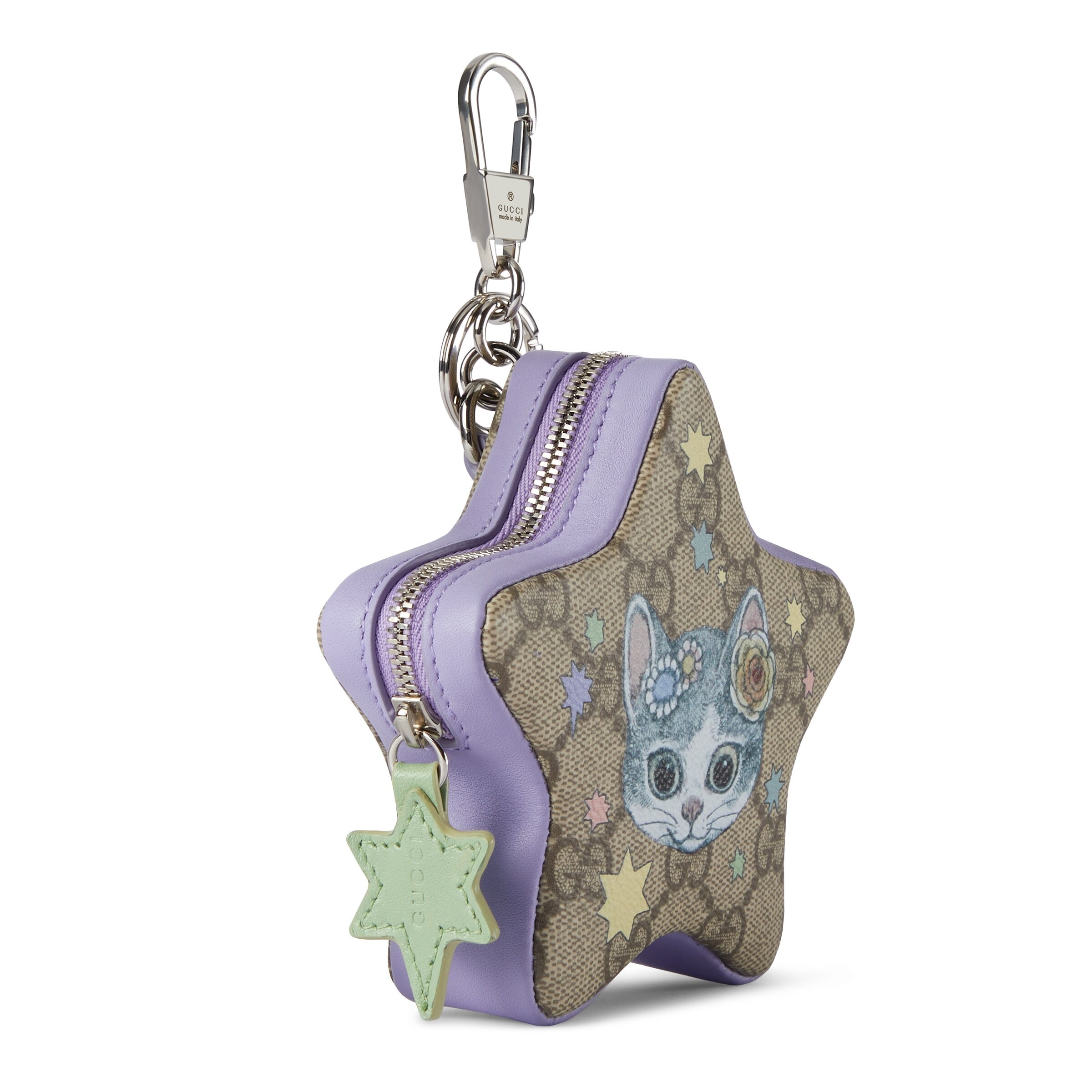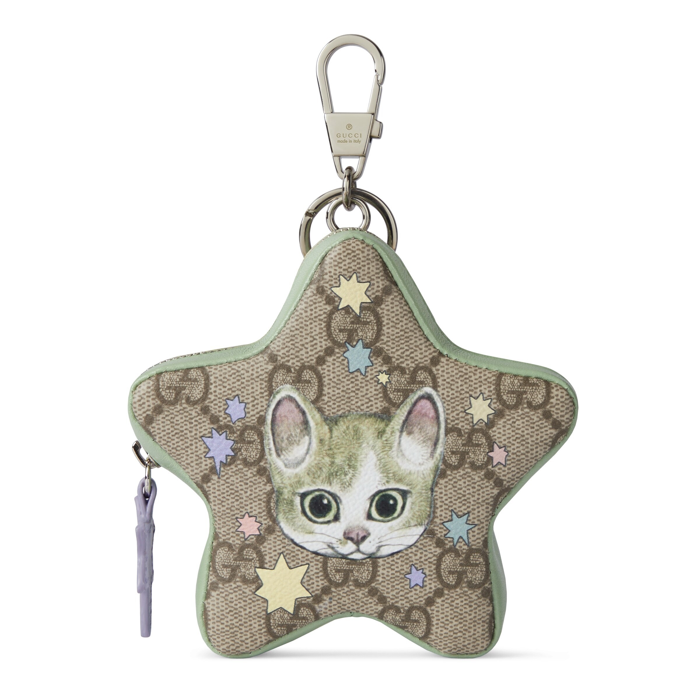 吊饰包采用童趣的五角星造型登场,经典乌木色 GG Supreme 帆布包身搭配皮革饰边和伯利恒之星造型拉链头,猫咪 Bo 和 Boris 的头像插画成为包身主角,傲娇的小表情暖萌治愈。