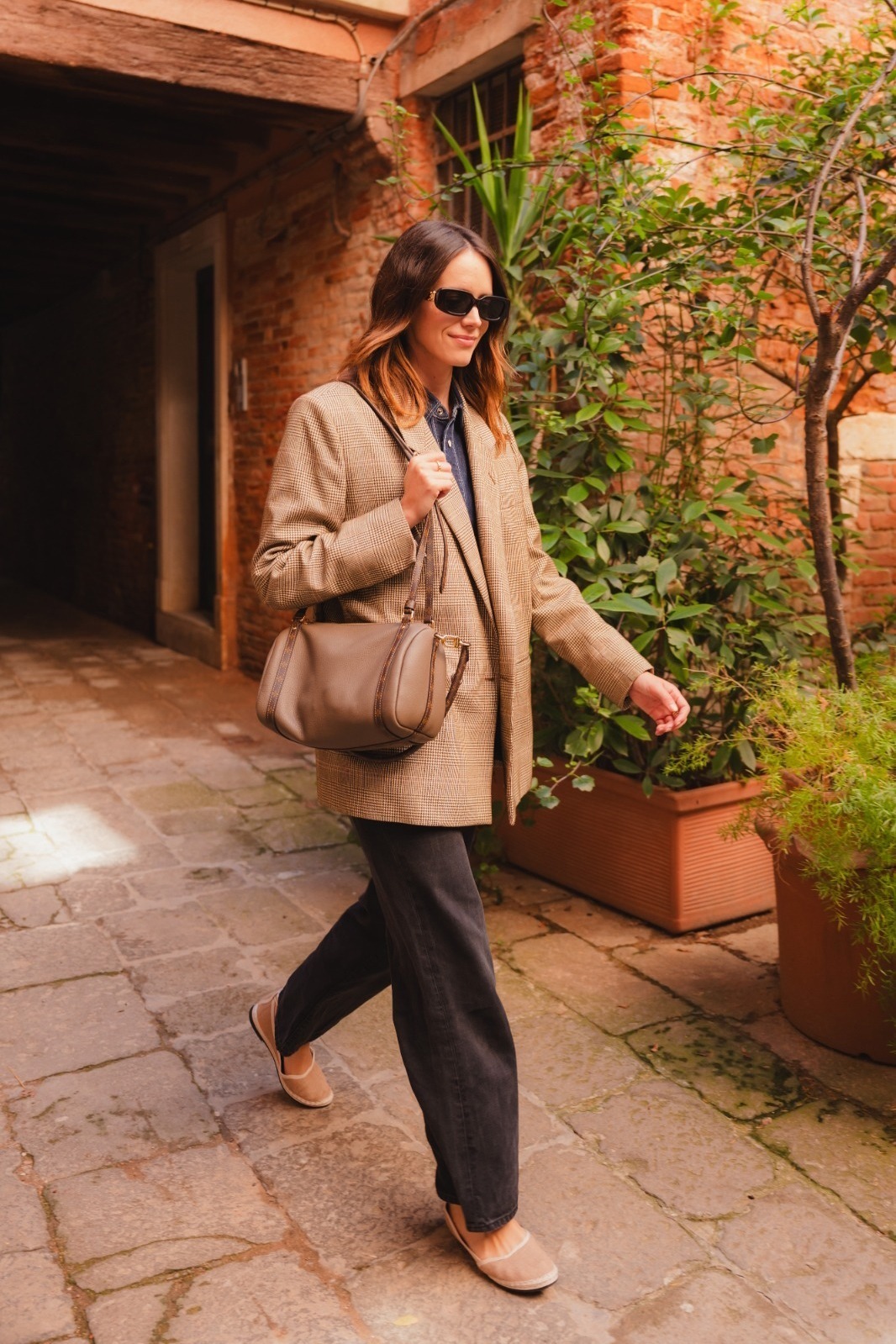 包包内衬为 Monogram 提花织物,背侧设有平口内袋和烫金皮标。我们在包里放了笔记本、香水盒、手机、零钱包、口红和耳机,精巧尺寸恰能收纳日常随身物件。