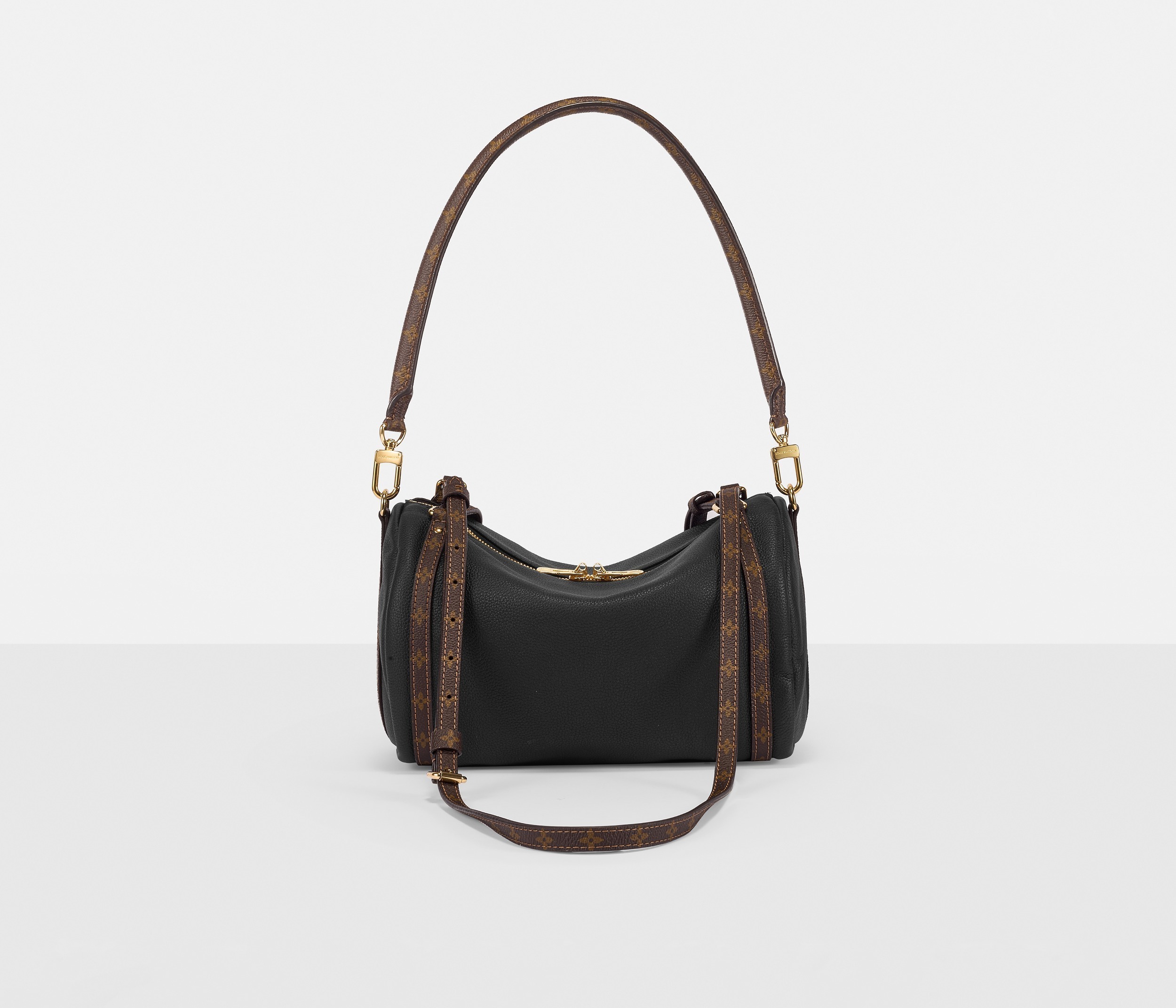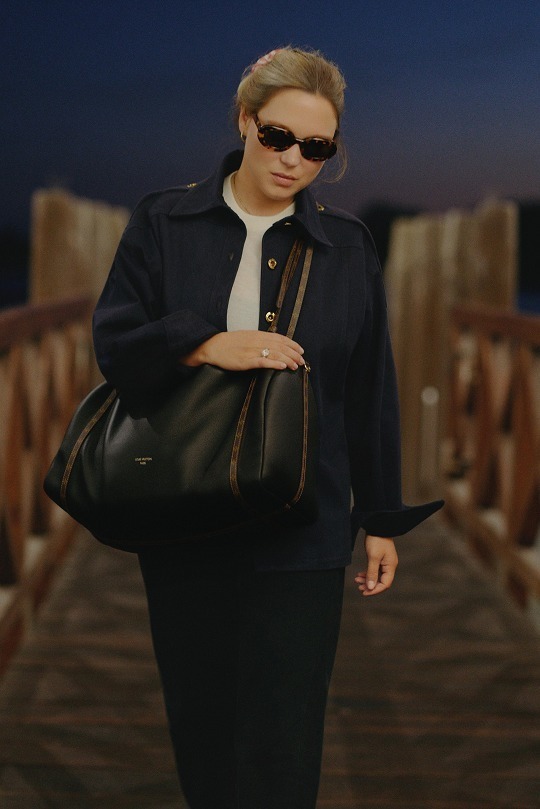 贯穿包身的 Monogram 饰带起到加固作用,让包底能够平稳放置并保持立挺廓形,也让人联想到纵横交错的赛车跑道或列车线路,巧妙呼应「Express」这一名称。