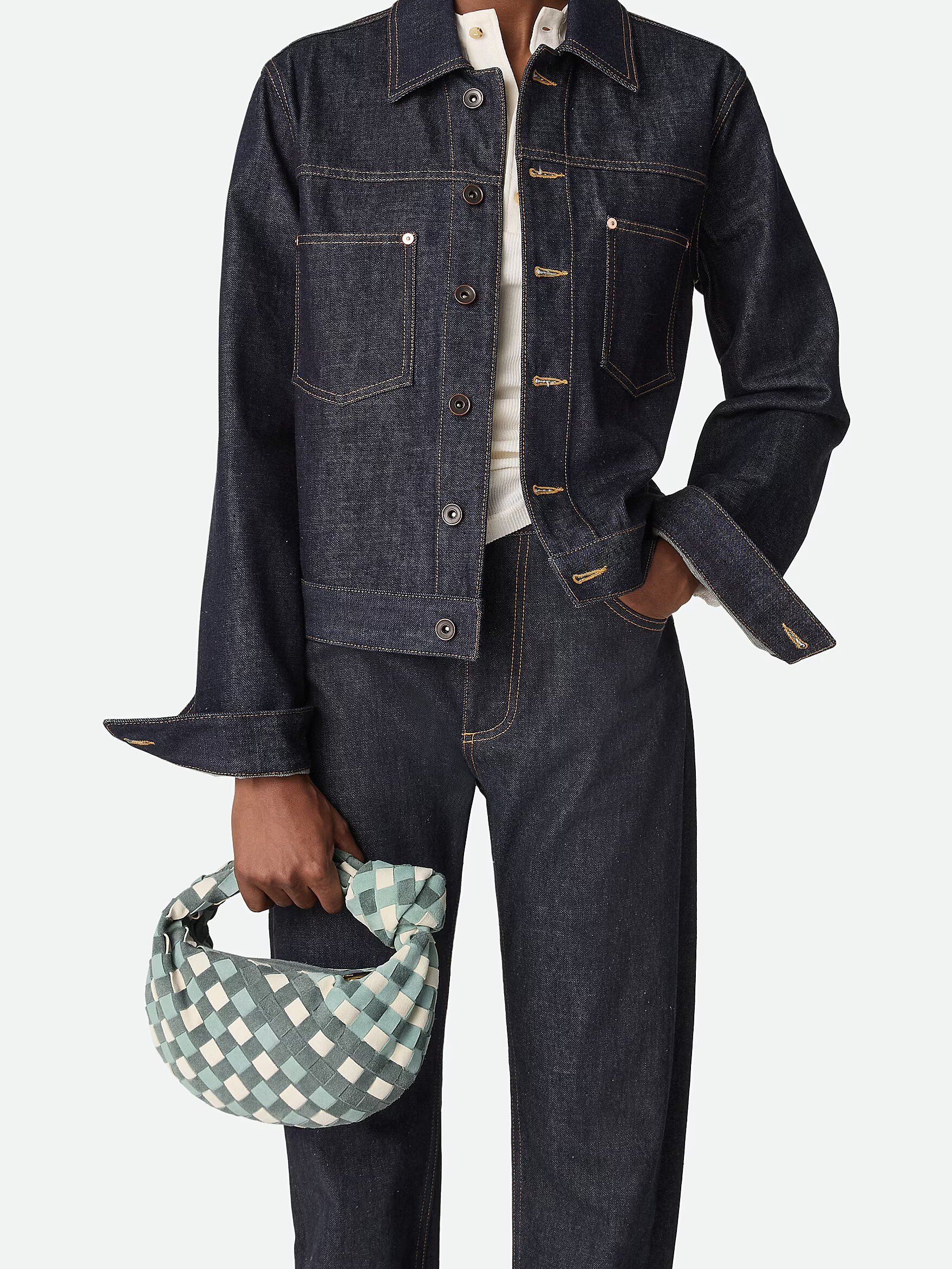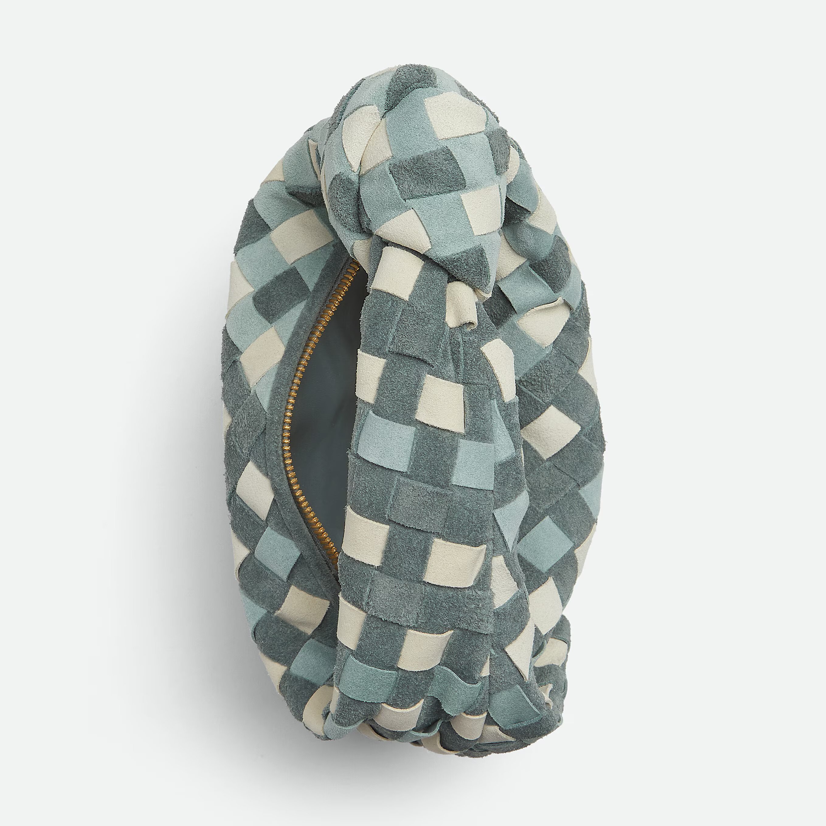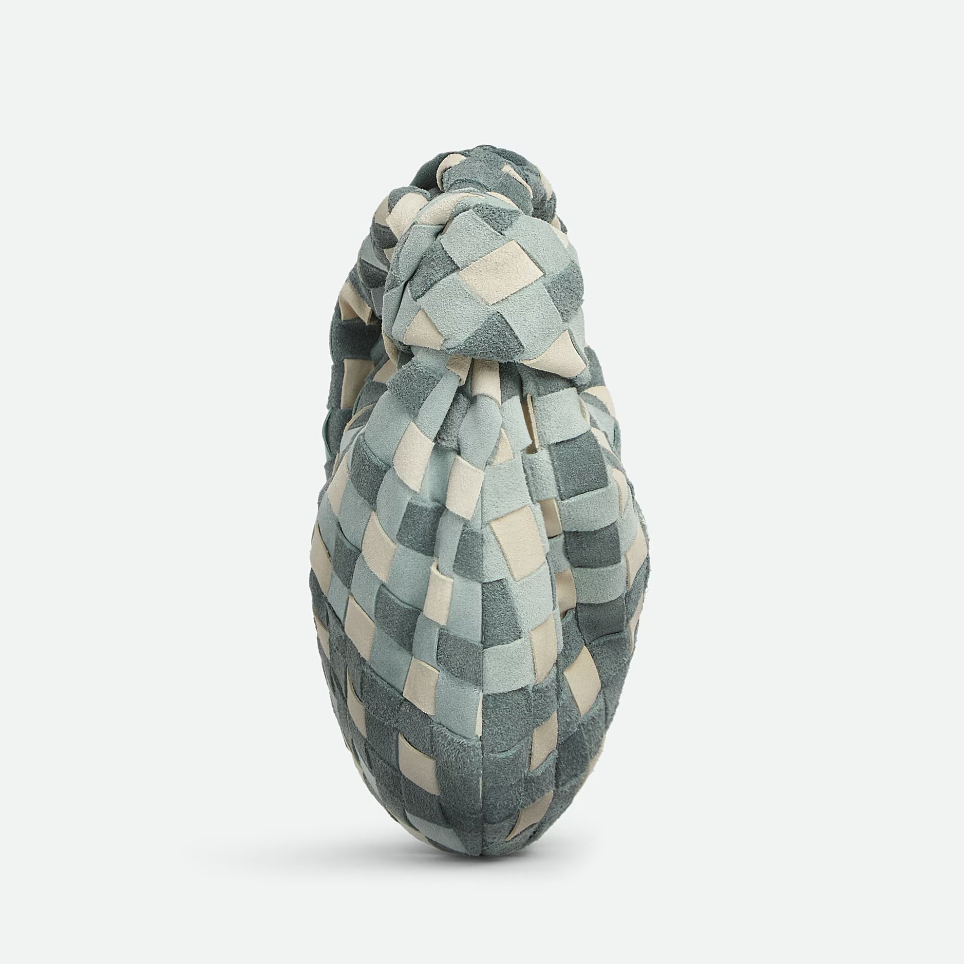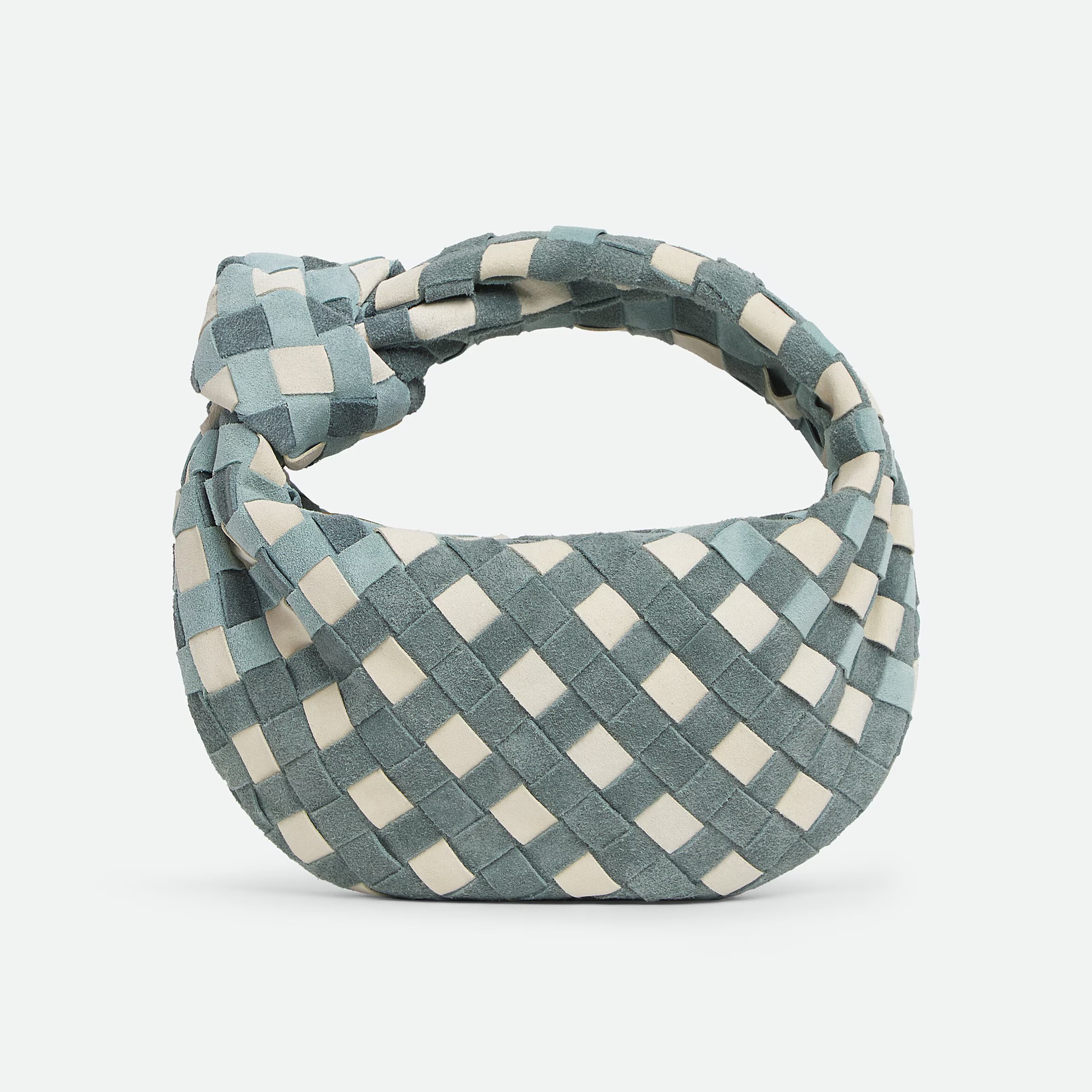 Jodie 迷你包包采用 Montebello 工坊精心挑选的剩余优质绒面革制作而成,坚果白色和薄荷灰蓝色相互交织,包身两侧点缀浅婴儿蓝色调,营造出梦幻的渐变色泽,整只包包给人感觉既清雅又舒适。