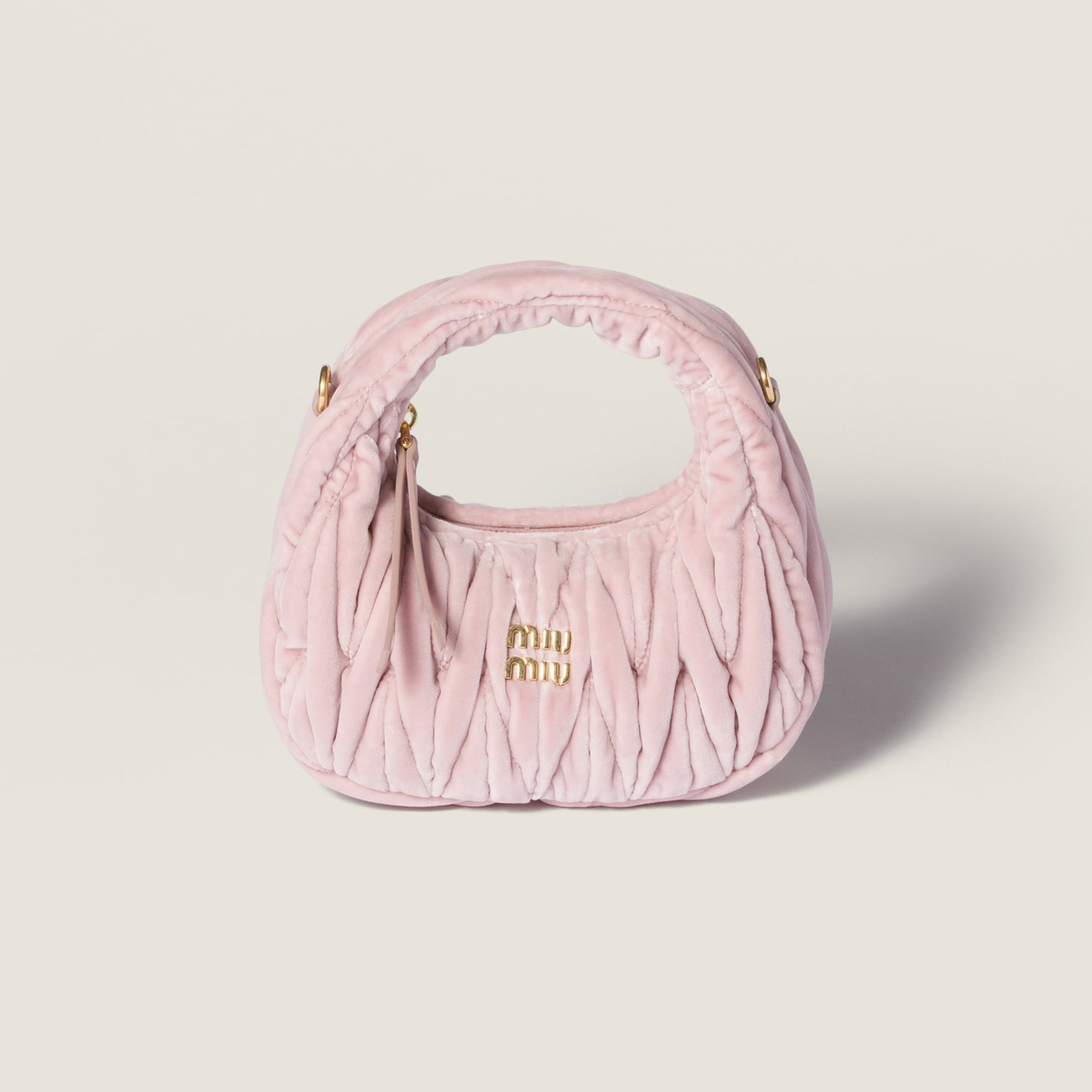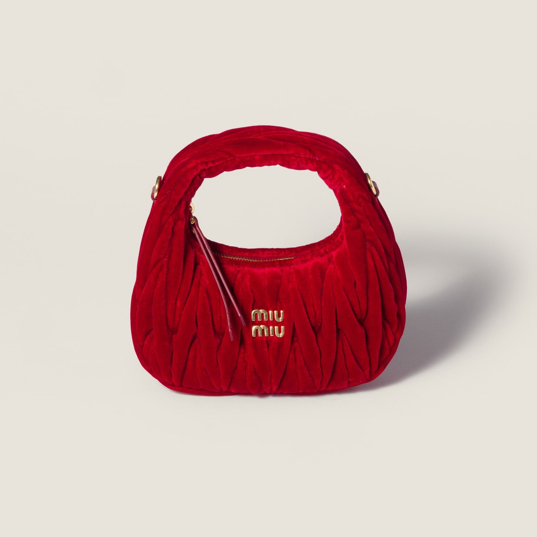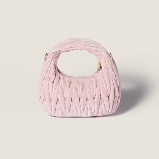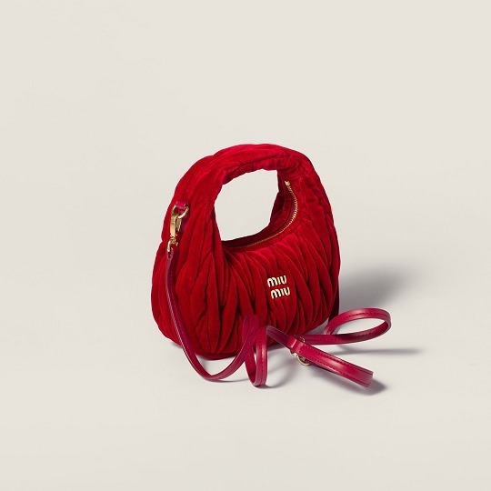 新季丝绒包包以充满圣诞气息的正红色、少女心满满的嫩粉色和经典百搭的黑色为基调,通过 Matelassé 绗缝工艺打造出麦穗般的褶皱纹理,搭配温润细腻的绒面质感,给人感觉温馨而治愈。Wander 手袋以小巧精致的月牙廓形搭配金色金属徽饰,拎在手里复古而俏皮。