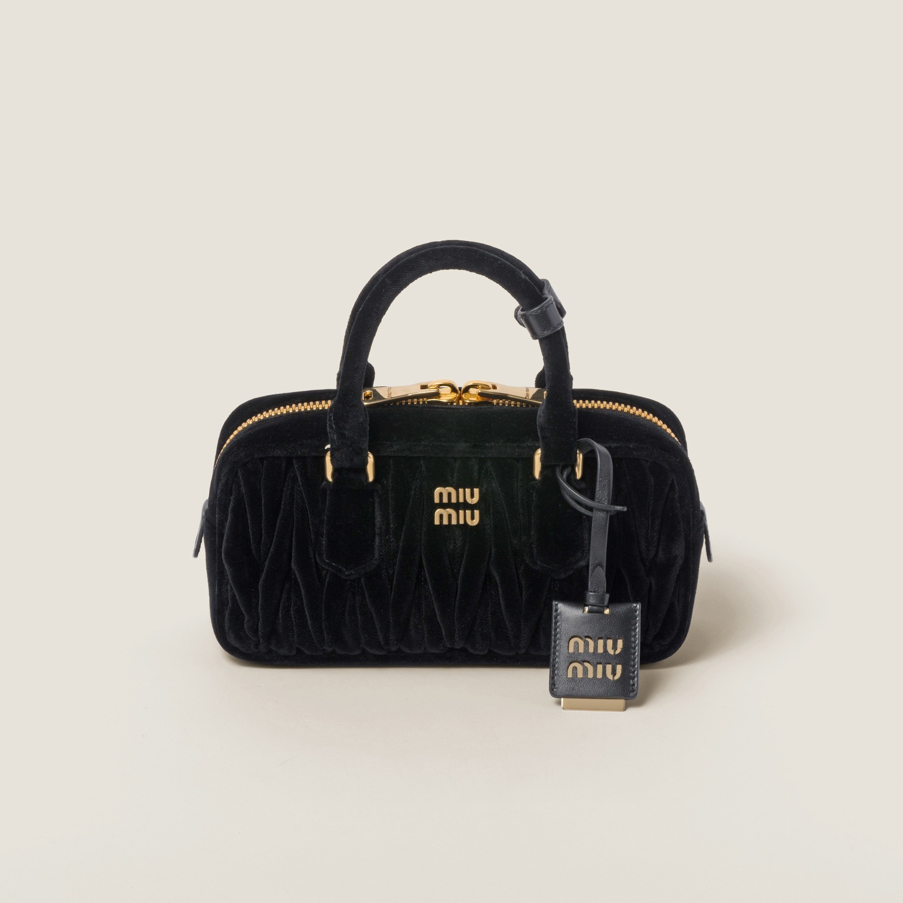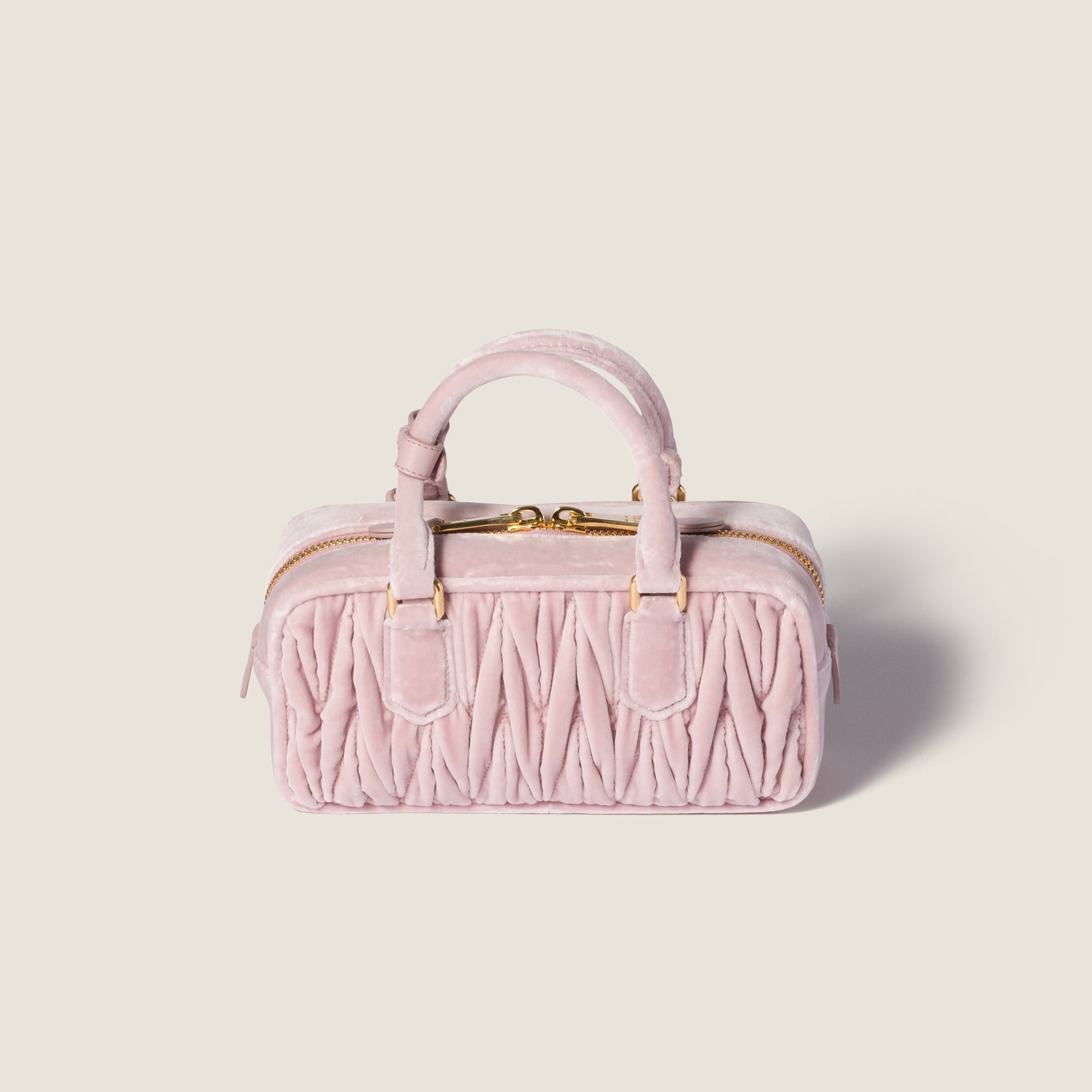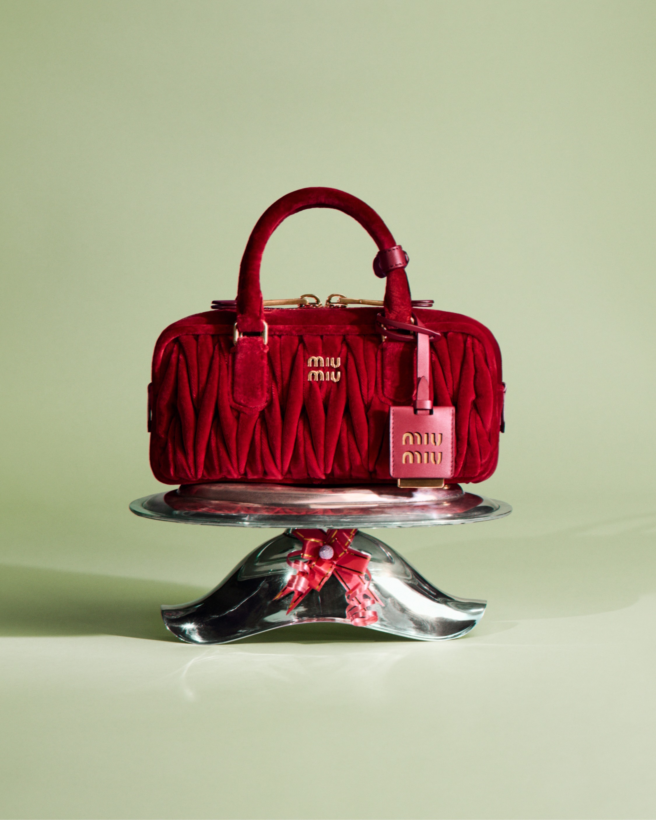Arcadie 手袋的名字源自古希腊神话中的「理想之地」(Arcadia),采用复古保龄球包型搭配双向拉链、金属徽标和顶部双提手设计。新作同样焕以红色、粉色和黑色丝绒面料制作而成,饱满绗缝纹路在光泽感丝绒烘托下显得优雅而别致。