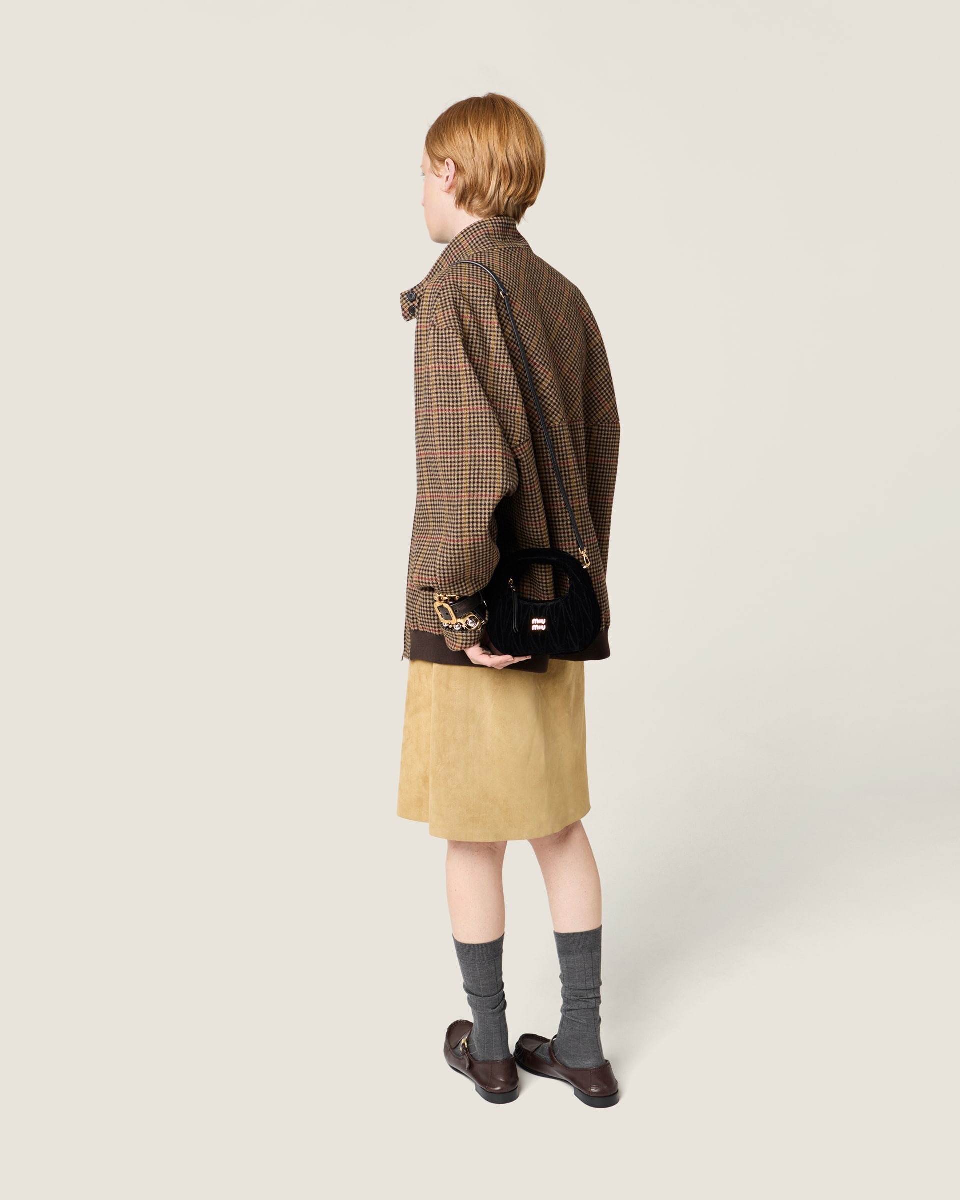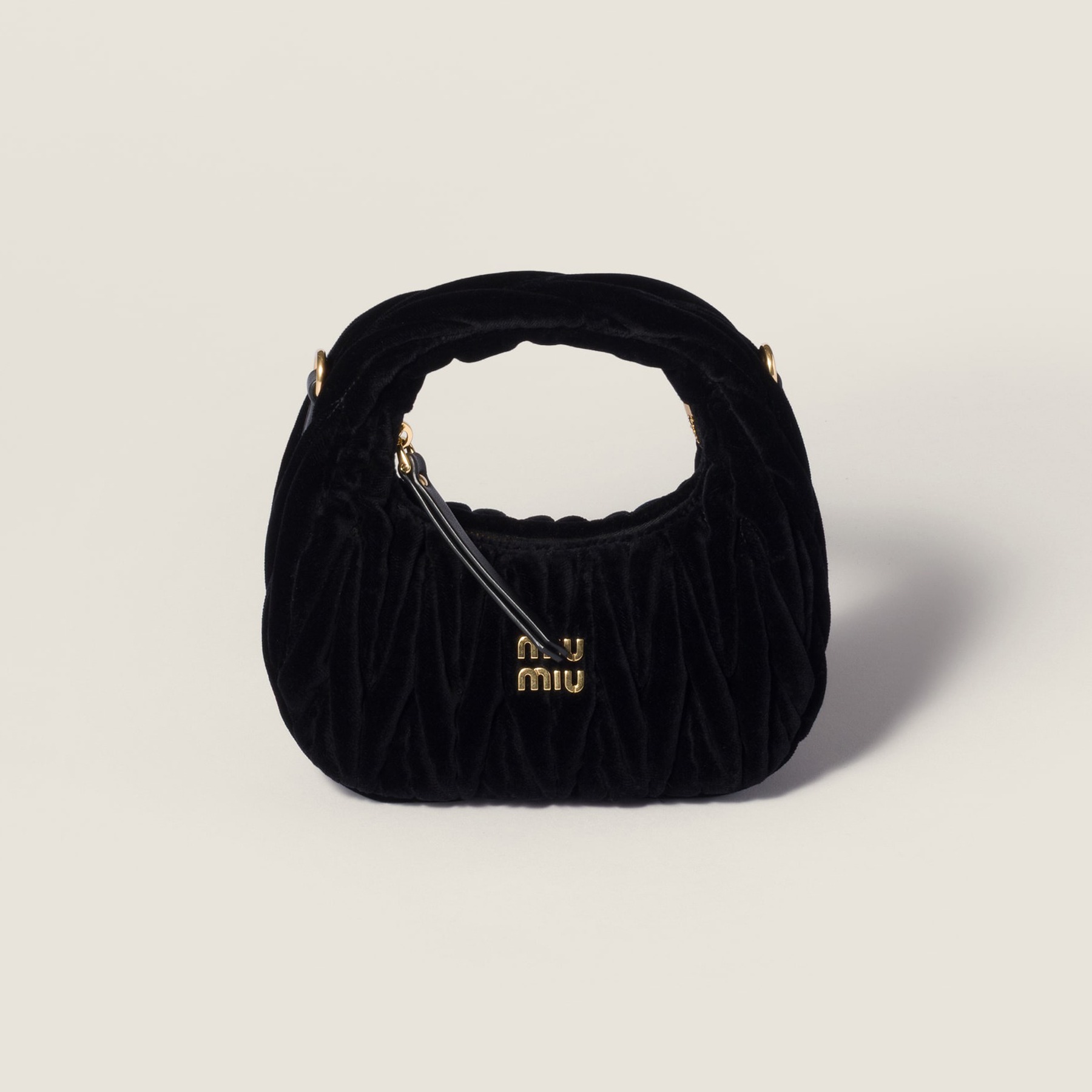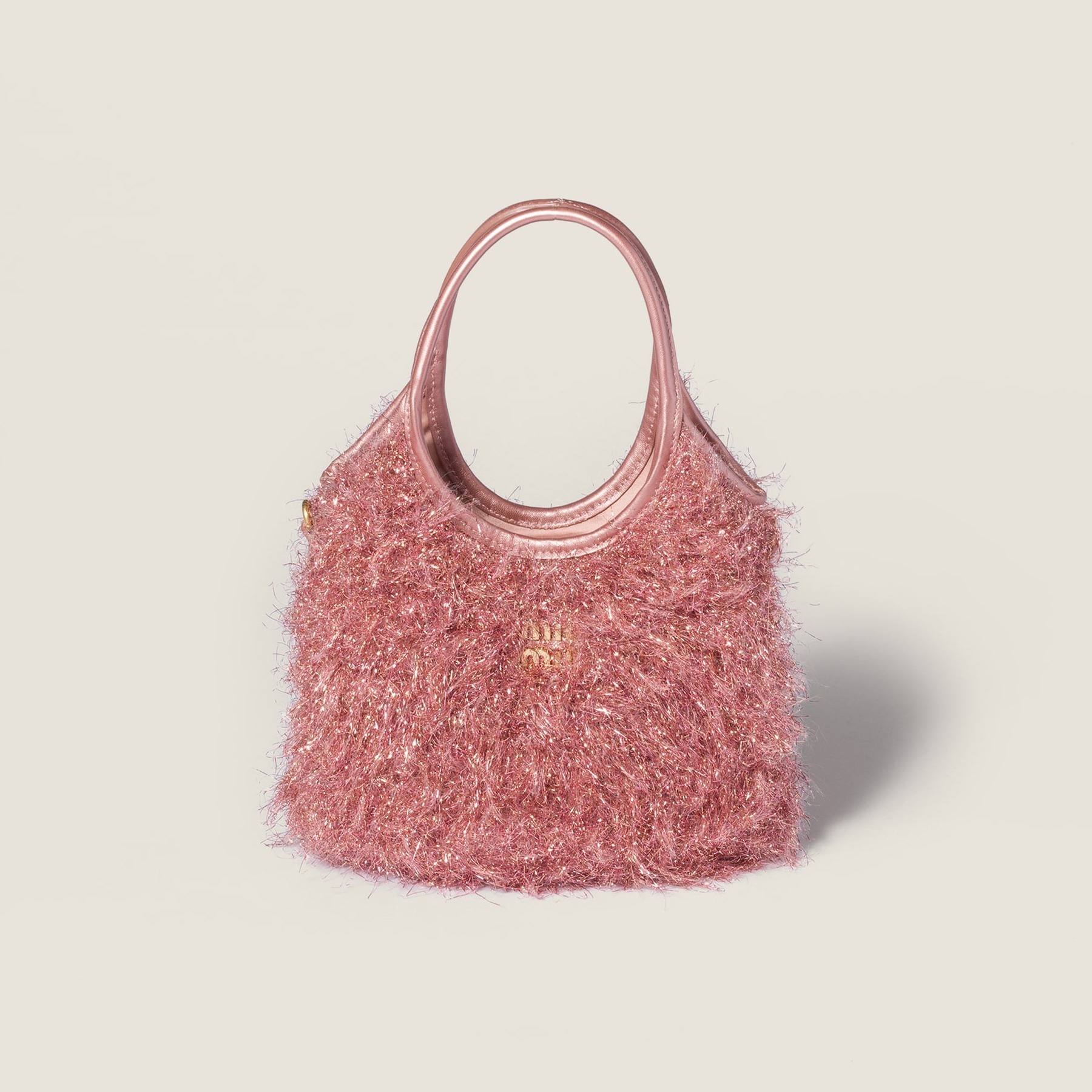 这组 Wander 手袋和 Ivy 托特包在包身织入亮晶晶的 Lurex 金银丝线,搭配同色系金属质感皮革饰边、可拆卸肩带和缎面里衬,整只包包闪耀灵动华彩,打造专属于 Miu Miu 女孩们的闪亮圣诞。
