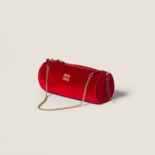 笔筒包以红色和黑色丝绒塑造精巧圆筒廓形,配有可替换的链条肩带和皮革细肩带,金色五金配件在深邃丝绒烘托下显得格外耀眼。同系列还推出一款黑色束口小包,小巧玲珑的丝绒包搭配日常装扮或者 dress up 的节日场景都能适配。