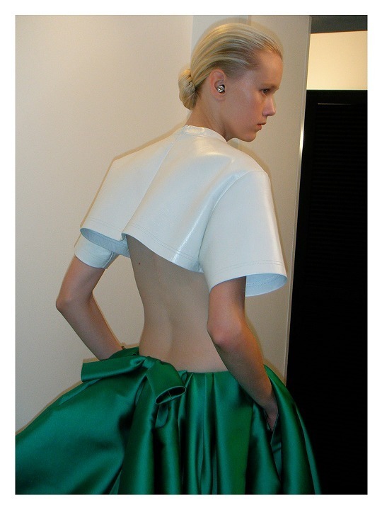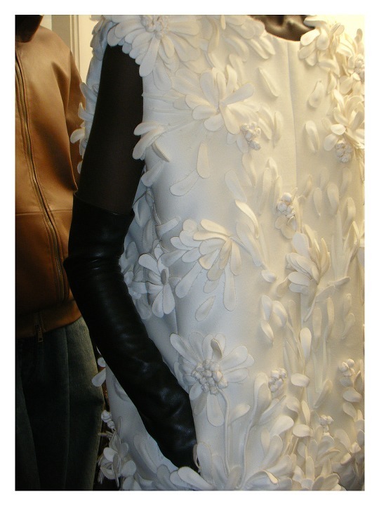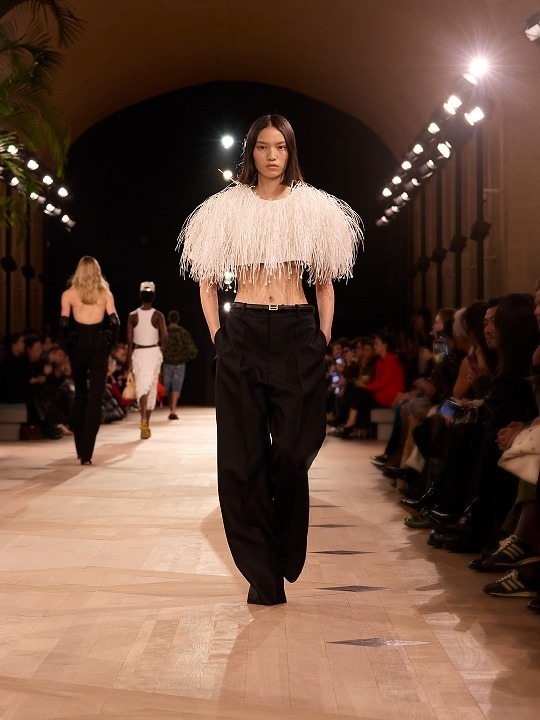 「GAZAR」面料被赋予新生,以本布制成的花卉与羽毛刺绣,不再仅仅是装饰元素,而成为一种建筑般的建构手法,构筑起身体与面料之间充满张力的对话。
