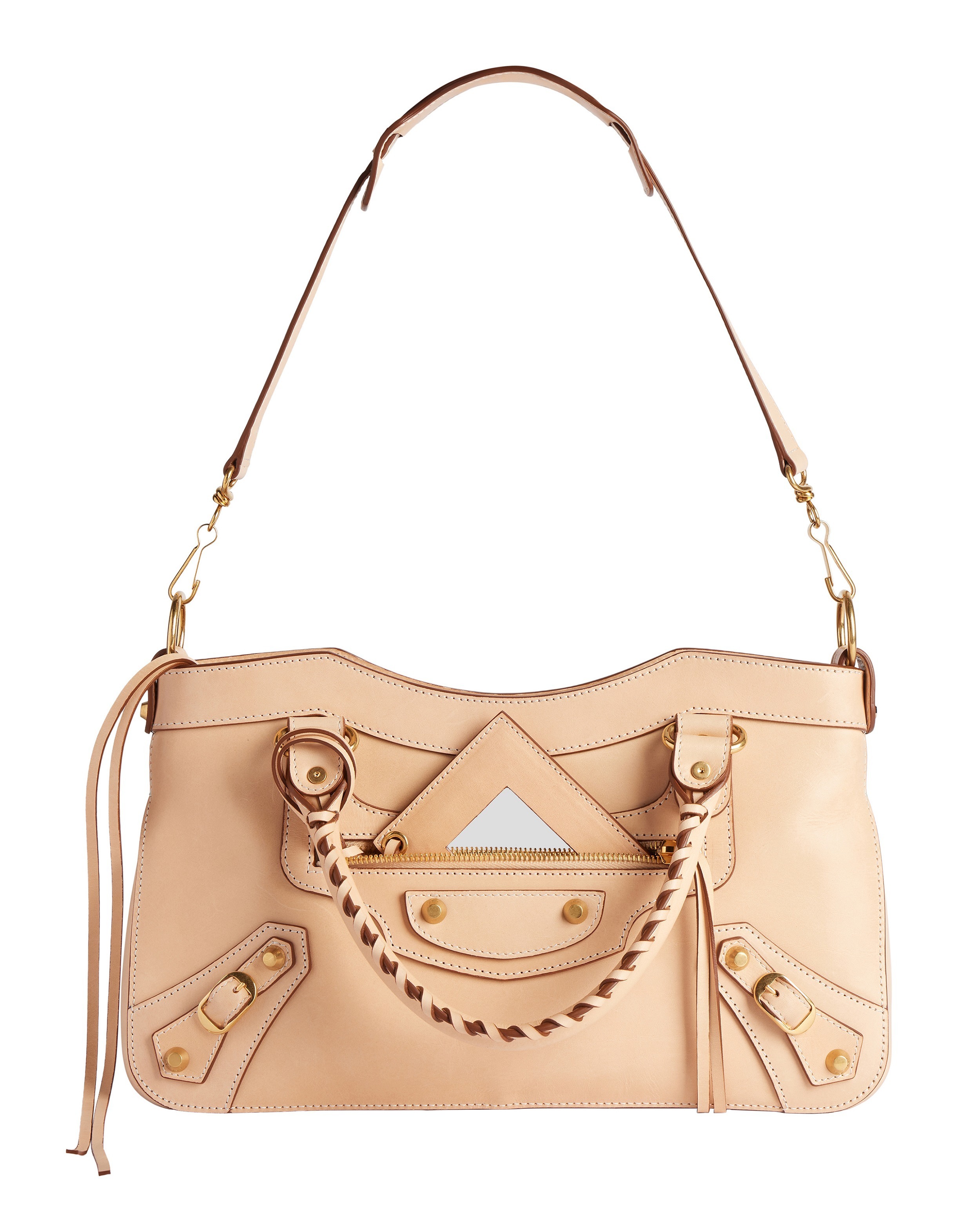 Le City 机车包依然是主要看点,新作延续标志性金属铆钉、皮绳拉链头、编织手柄设计,推出廓形更为硬挺的光面皮革和麂皮拼接款式。
