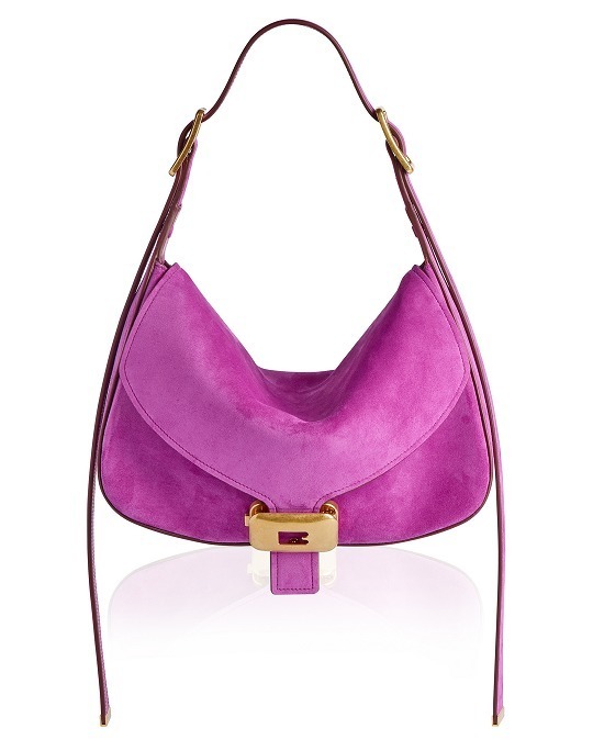Clicca 手袋采用绒面牛皮革或细纹羊皮革塑造柔软廓形,肩带可自由调节实现肩背或斜挎背法,方形金属锁扣中央饰以镂空B字母造型,低调呼应品牌符号。