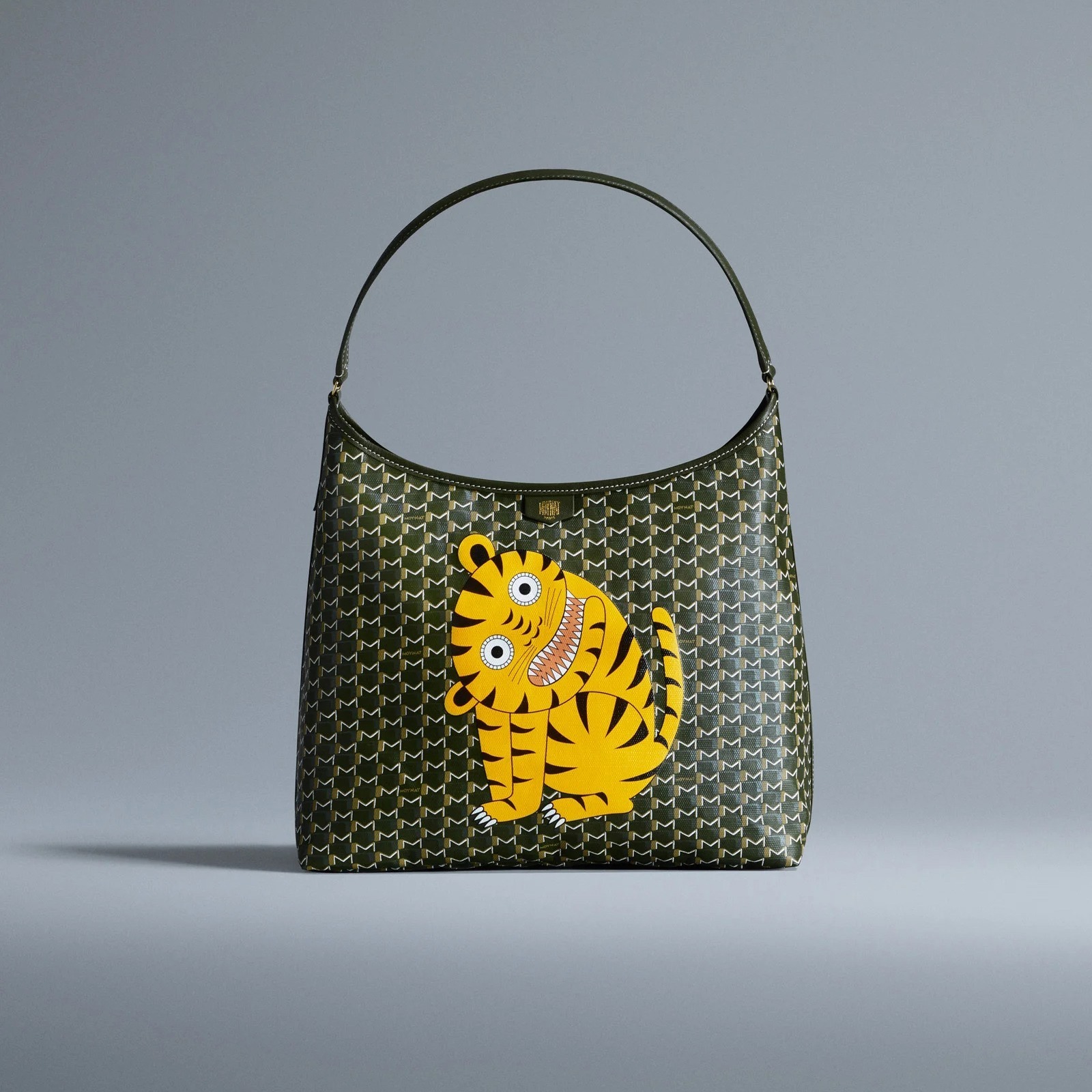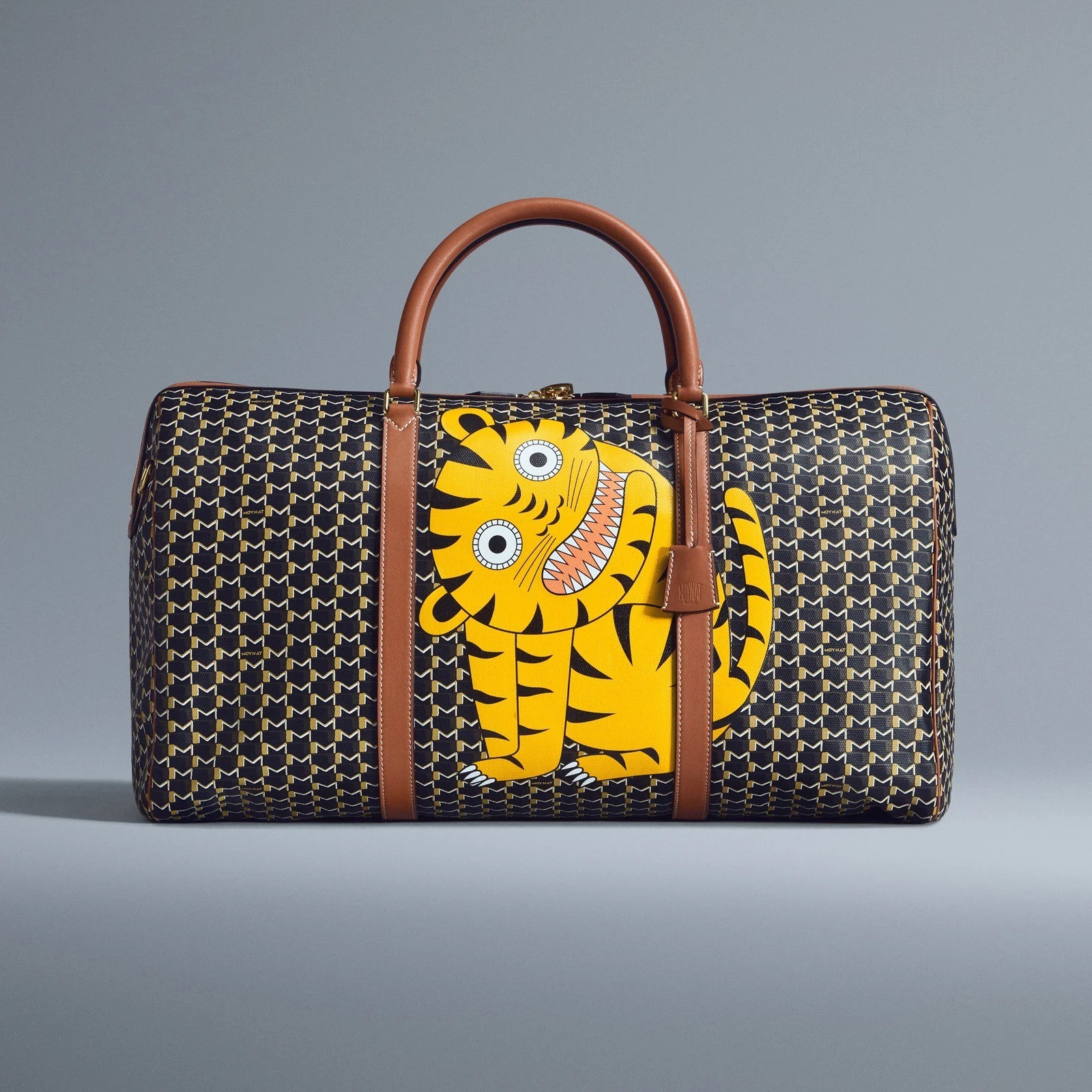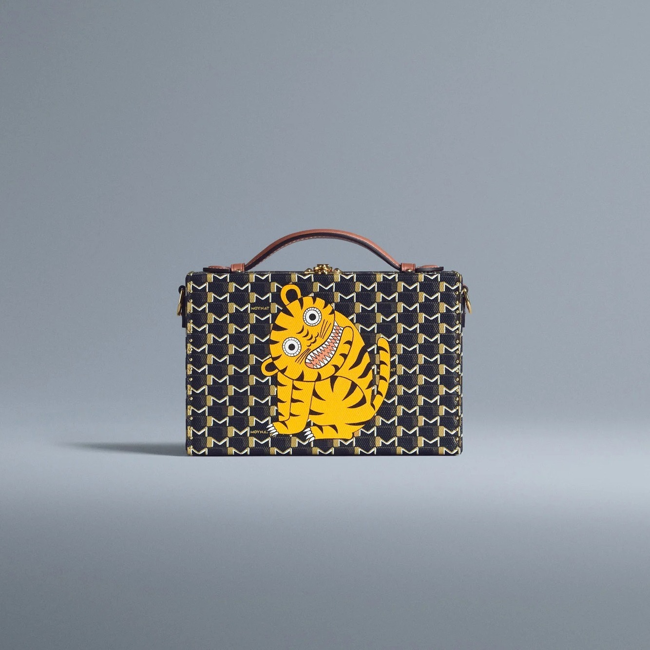 Vanity Box 化妆盒、Suitcase 手提箱、Hobo 手袋等包款以深色 M Canvas 帆布为背景,烘托老虎、小鹿、猫头鹰和鳄鱼等色彩鲜明的动物印花图案,呆萌有神的大眼睛格外生动传神,为假日季增添盎然意趣。Moynat 经典 M Monogram 由法国艺术家 Henri Rapin 于1905年设计,至此成为品牌永恒优雅的标志。