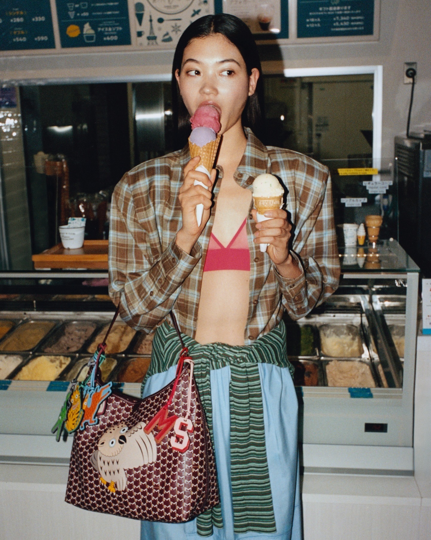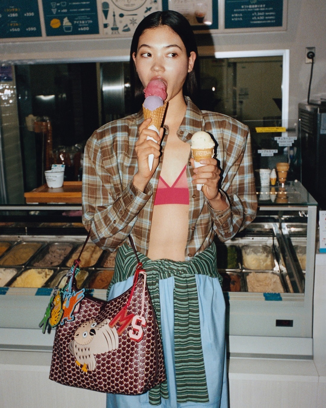 这是 Moynat 连续第二年与永井一正合作带来假日限定系列,双方还共同为京都南座剧院岁末歌舞伎公演舞台创作新的幕布,以经典歌舞伎场景「双狮共舞」搭配 Moynat 标志性 M Monogram 图案呈现的富士山背景。
