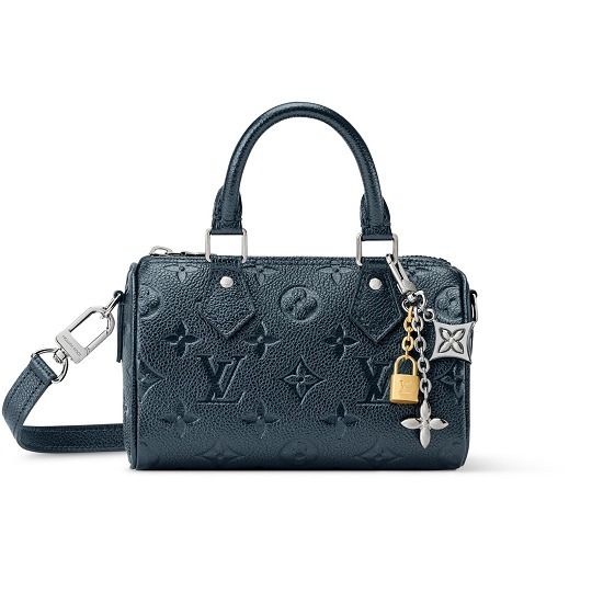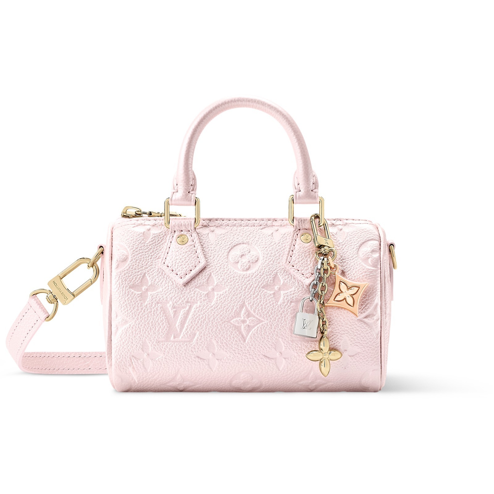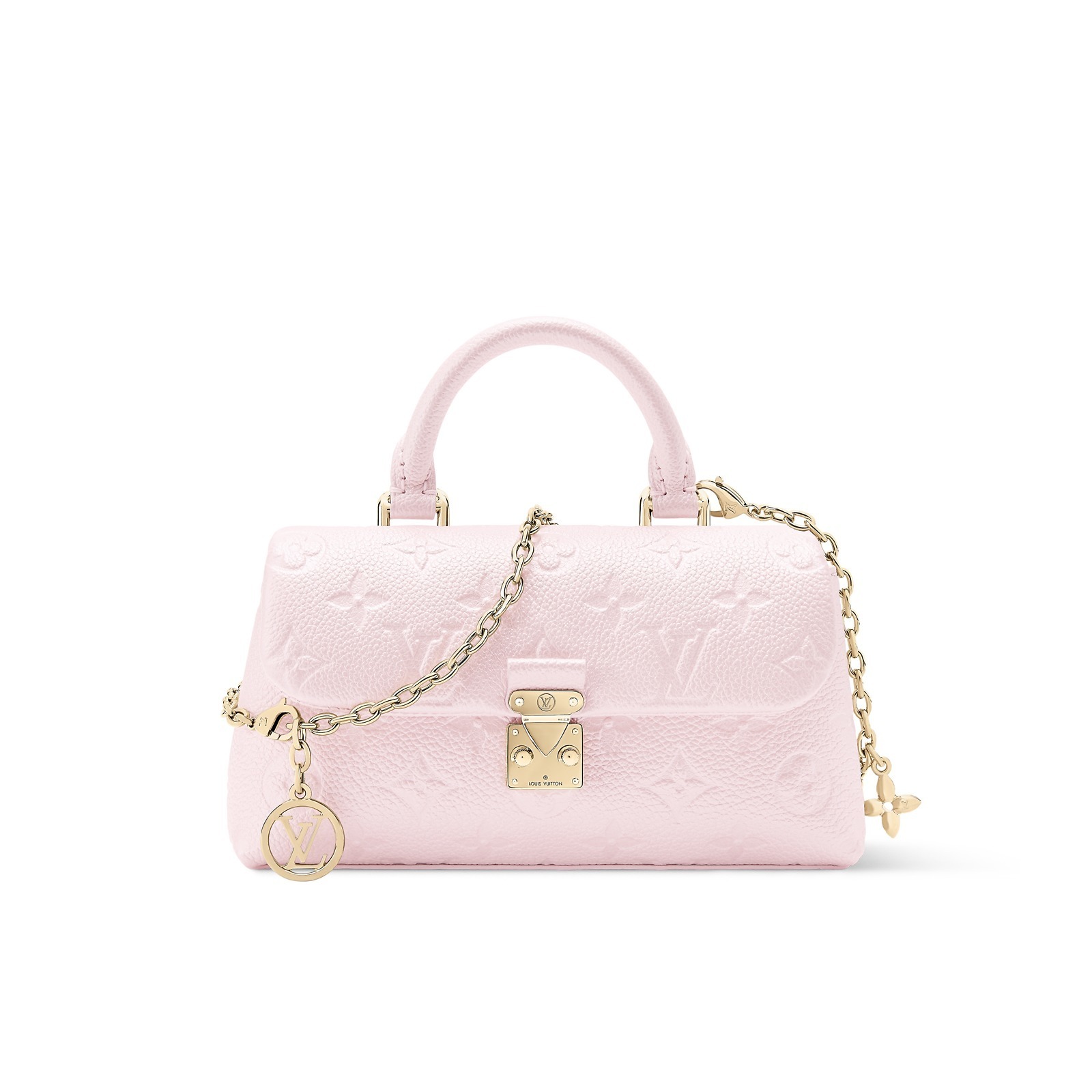 Monogram Empreinte Shimmery 系列在压纹皮革上饰以莹泽珠光色调,搭配 Monogram 金属花卉吊坠细节,为包包注入梦幻优雅气息。推出 Nano Speedy、Madeleine、Alma、OnTheGo 等多种包型,「Snowy Pearl 白雪」和「Night 夜色」两种配色分别诠释雪山之巅的日与夜。Off Duty BB 和 Carry All Cargo 小号手袋选用柔软细腻的珠光色小羊皮制作而成,枪灰色调呼应高山雪景的熠熠光泽,前卫而酷飒。