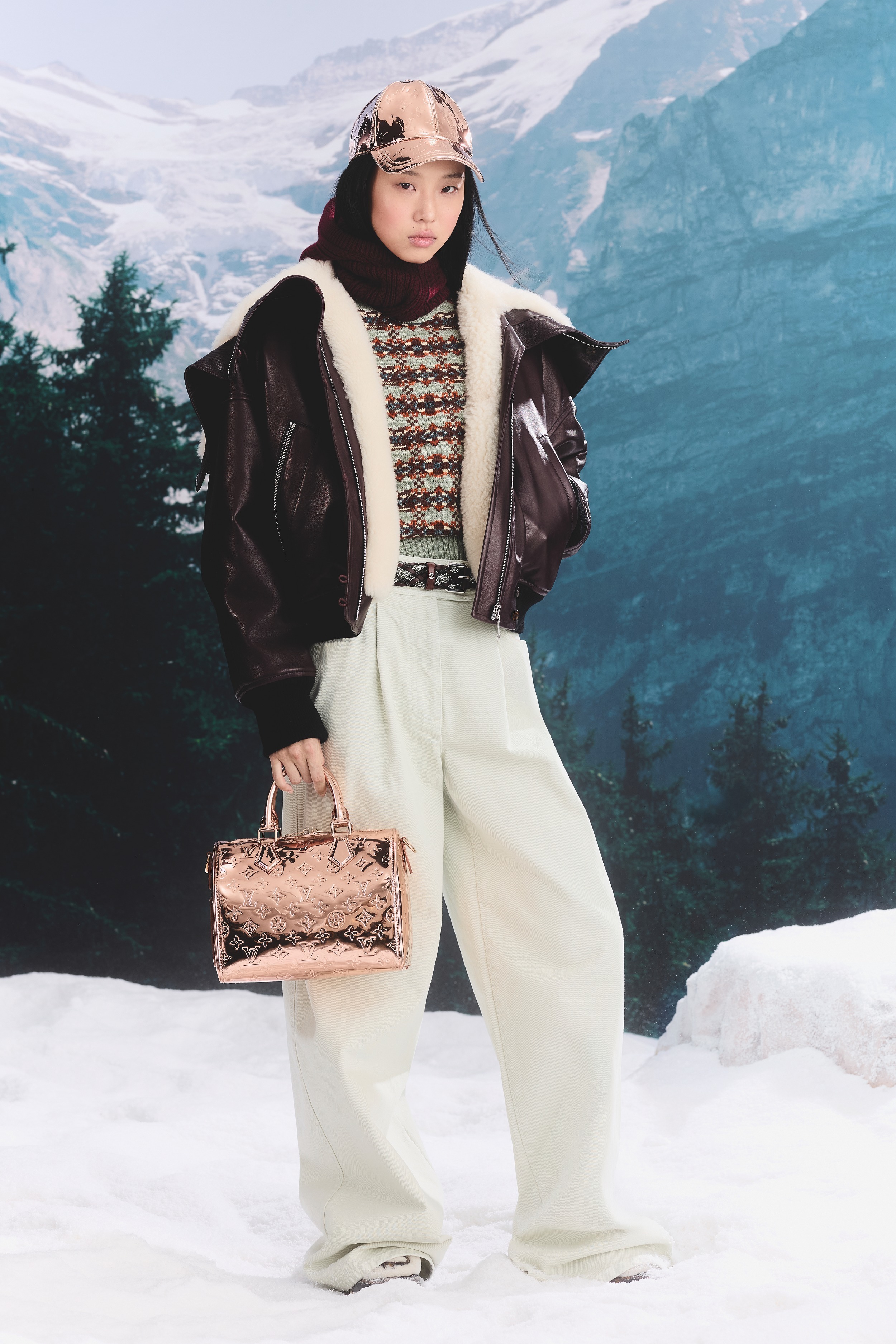 新款 Pochette Mia 肩背包采用美利奴羊毛皮构筑小巧月牙廓形,点缀 Monogram 帆布饰带和 S-lock 锁扣细节。Neverfull Inside Out BB、Carryall、Speedy Soft 等包款采用经典老花帆布或 巧克力色 Cozygram 镂孔皮革制作包身,毛绒绒的羊毛滚边为包包注入软萌气息。本系列还特别推出一款 Teddy Mitt 手袋,兼具手袖与手袋的双重功能,让冬日滑雪之旅时刻都有温暖相伴。