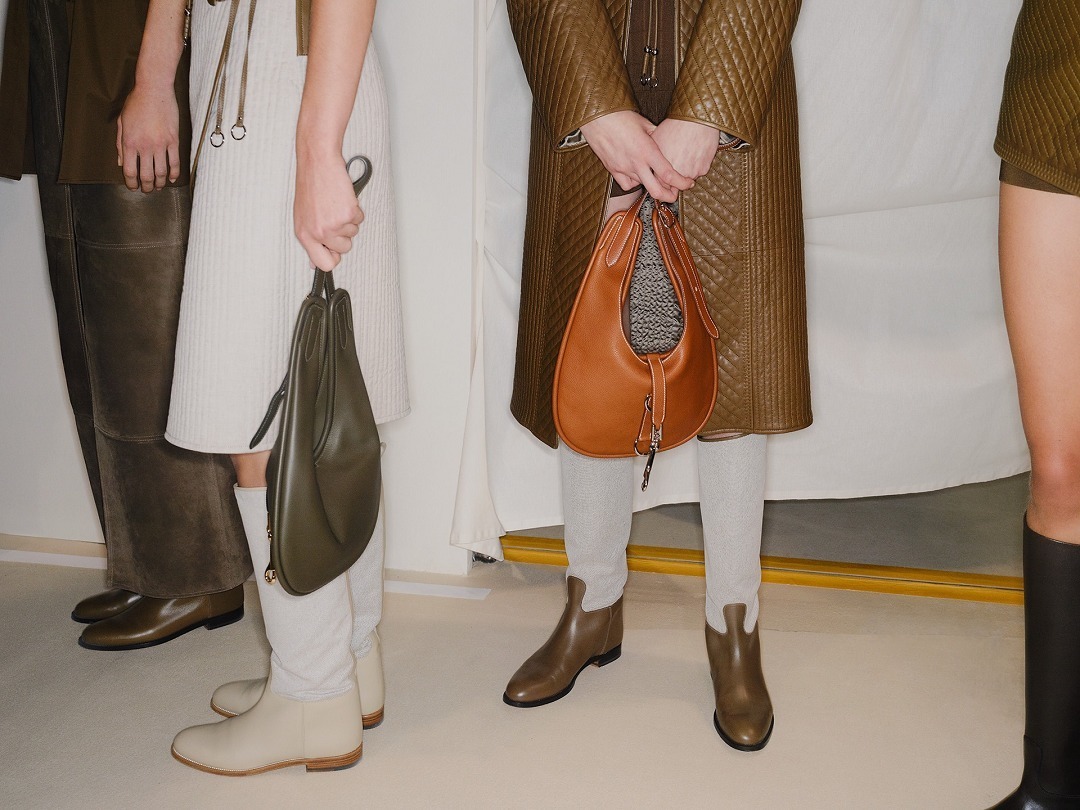 马术元素依然随处可见,新款 Hobo 手袋采用马蹄形包身搭配金属马衔扣开合,经典大地色系流露自在随性魅力。