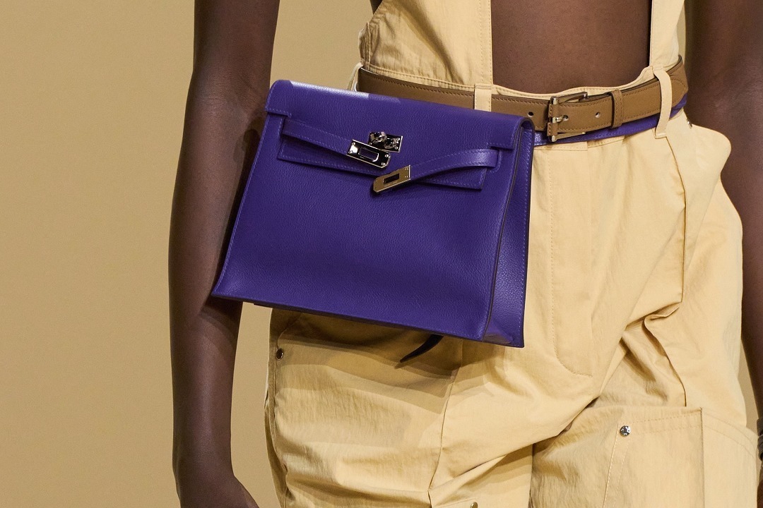 Kelly Danse 手袋化作模特腰际的一抹紫罗兰色点缀;诞生于2008年的 So Kelly 水桶包以全新面貌回归,包身与肩带采用流畅的一体成型结构,风格随性而干练。提供紫罗兰色、罂粟红色、黑色等多种配色和尺寸选择,标志性 Touret 轴扣依然是视觉焦点。