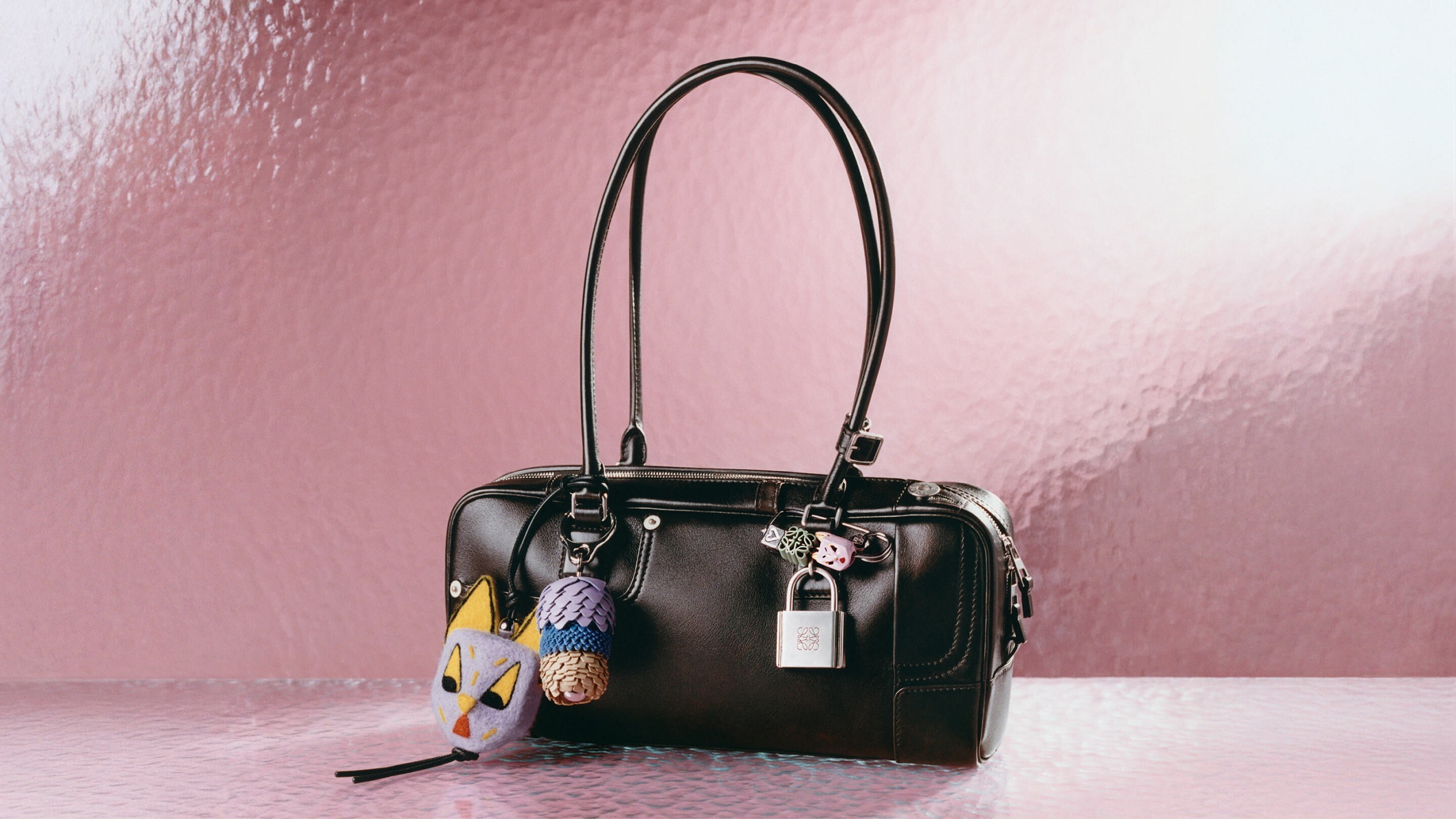 同系列还推出钱夹、卡包和 Puzz 小精灵等小配件,将牛仔裤的剪裁线条和金属饰件巧妙融入设计,搭配品牌标志性 Anaram 徽标压纹细节,经典黑棕色系帅气且百搭。