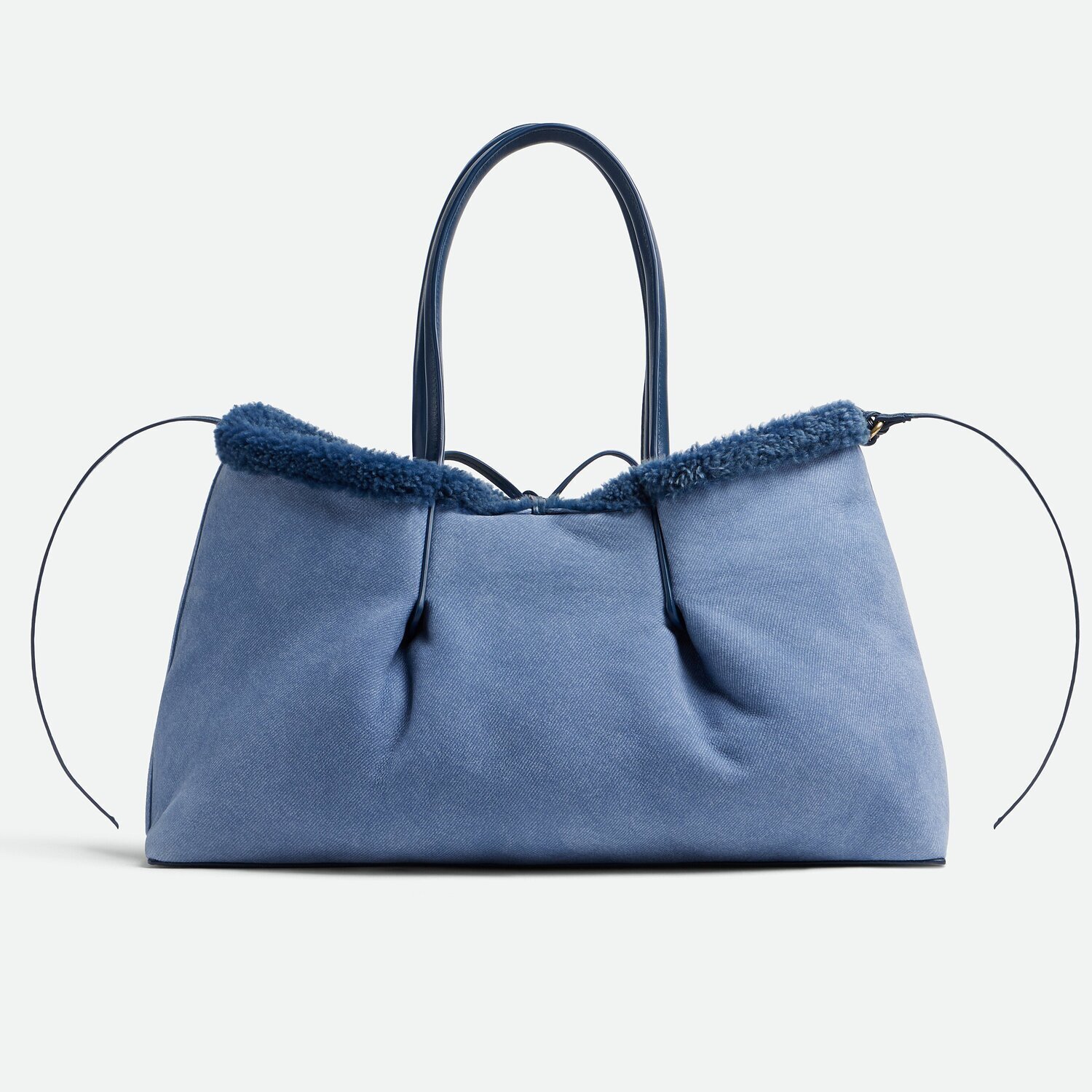 Pinacoteca 托特包通体包裹美利奴剪羊毛(Merino shearling),触感柔软又温暖,渲染深邃的海洋蓝色调,如抱枕般给人感觉充满疗愈感。这只包包最具匠心的是采用「双面背法」——可将包包里外翻转,幻化成一只牛仔风格包包,露出包口一圈暖暖的剪羊毛。