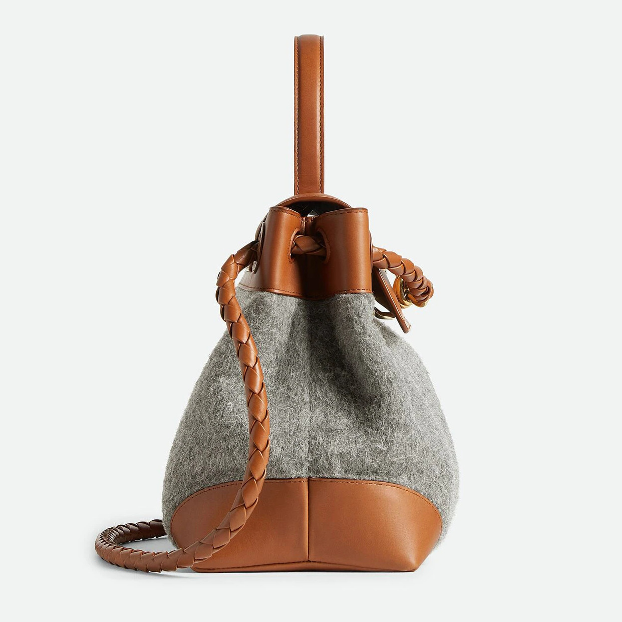 Ciao Ciao 手袋是前任创意总监 Matthieu Blazy 的告别之作,包名在意大利语中既是「你好」也是「再见」。新作采用灰色毛毡打造袋身,流露出自然质朴气息,搭配细腻柔滑的浅原木色小牛皮,营造出反差质感。