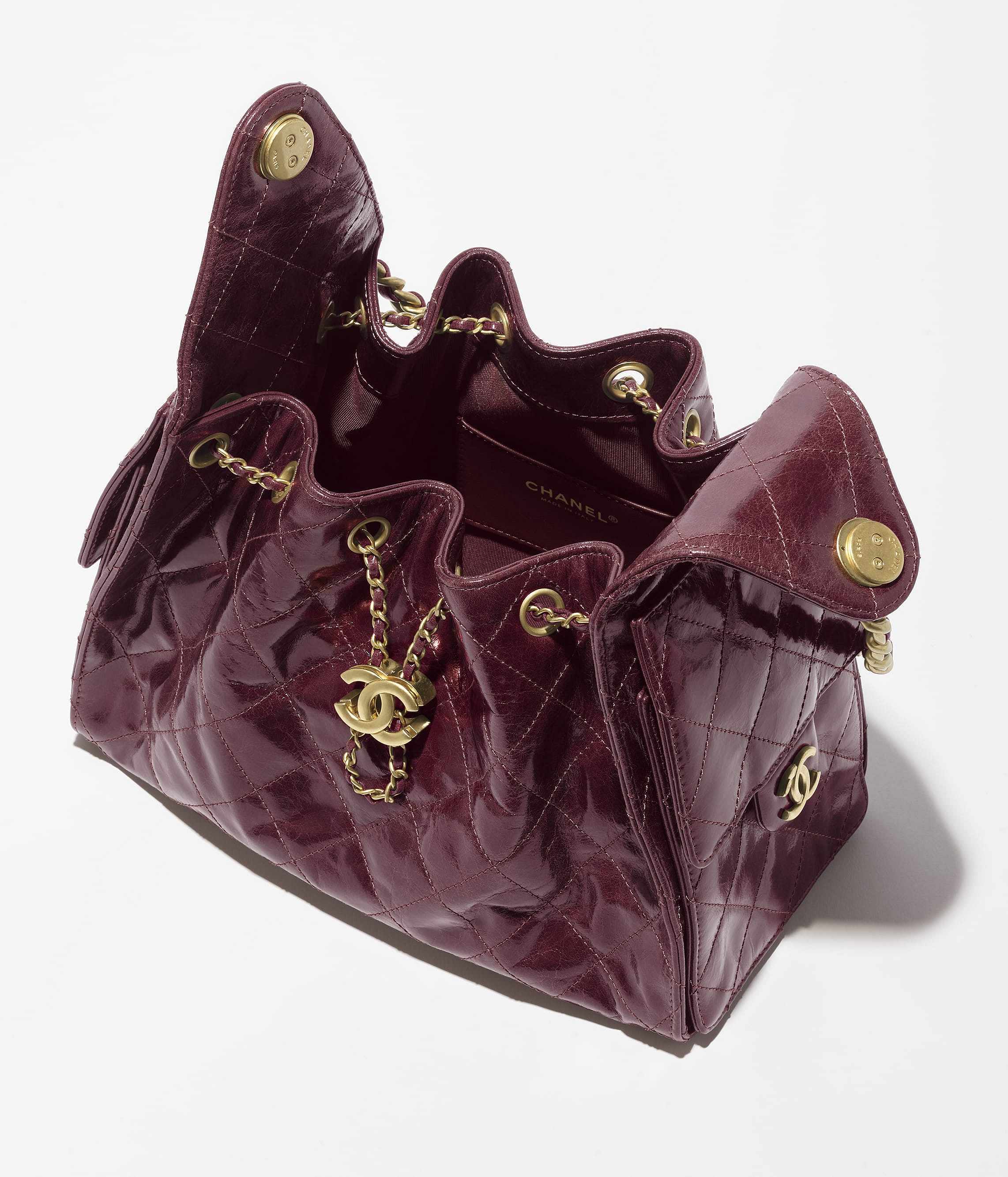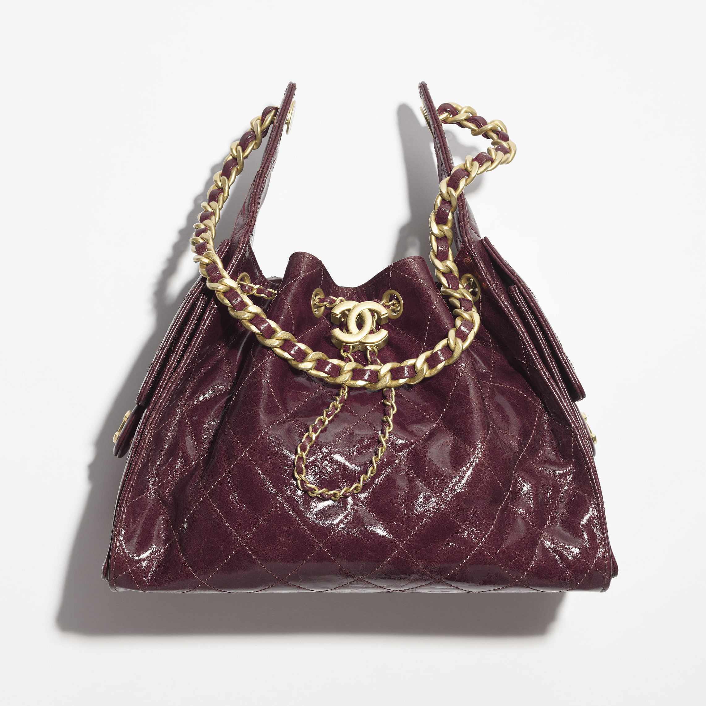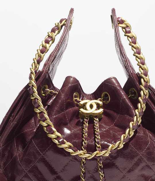 本季还推出全新亮面皱纹小牛皮款式,富有光泽感的油蜡皮质在酒红色烘托下显得深邃迷人,迷你尺寸搭配帅气银色五金,小号搭配金色五金细节。