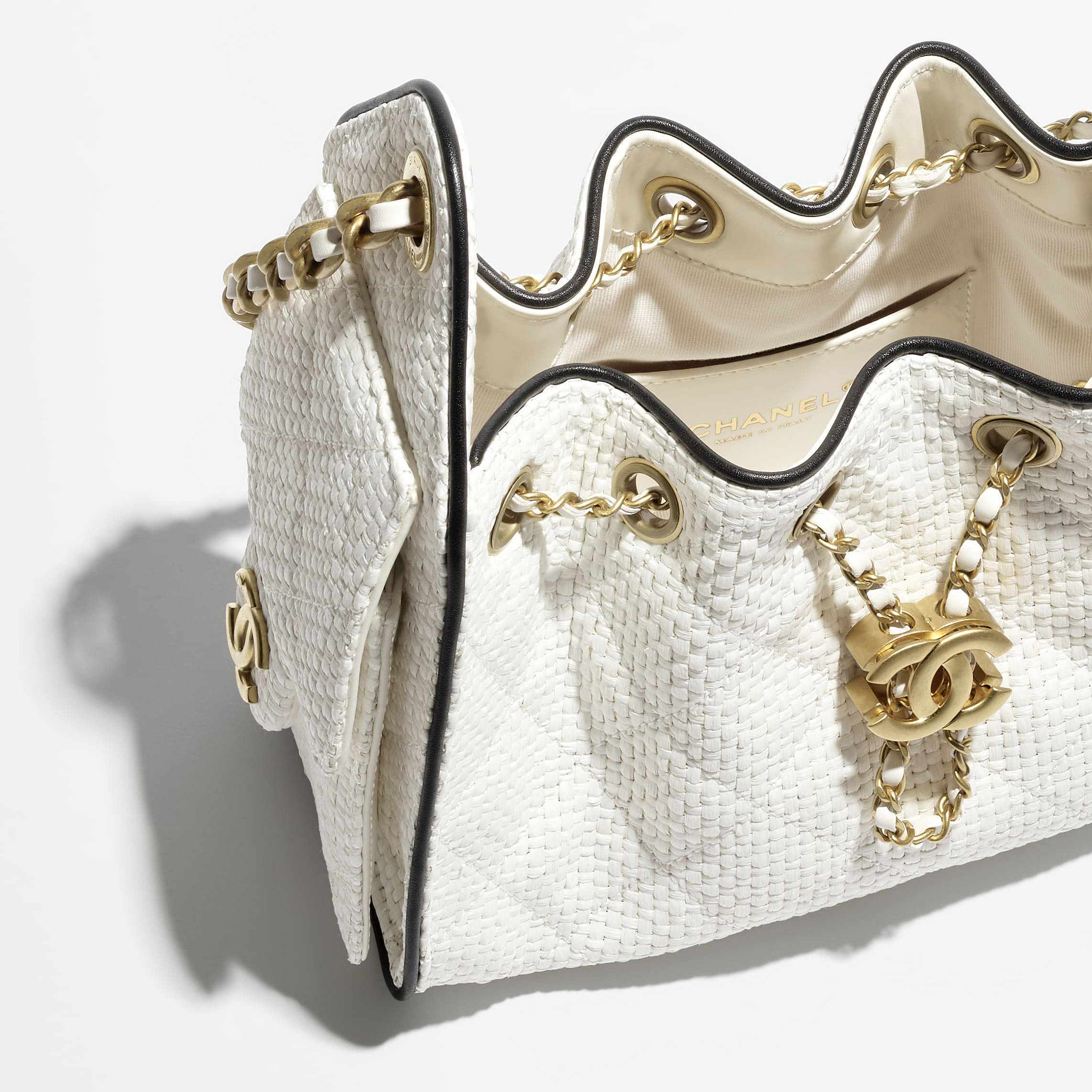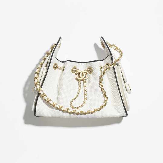 还有一组采用帆布和酒椰纤维制作的 Chanel 25 手袋,采用纯白、乳白、米色等浅色为基调,搭配富有视觉张力的撞色皮革绲边,呈现轻松和精致并存的度假气息。